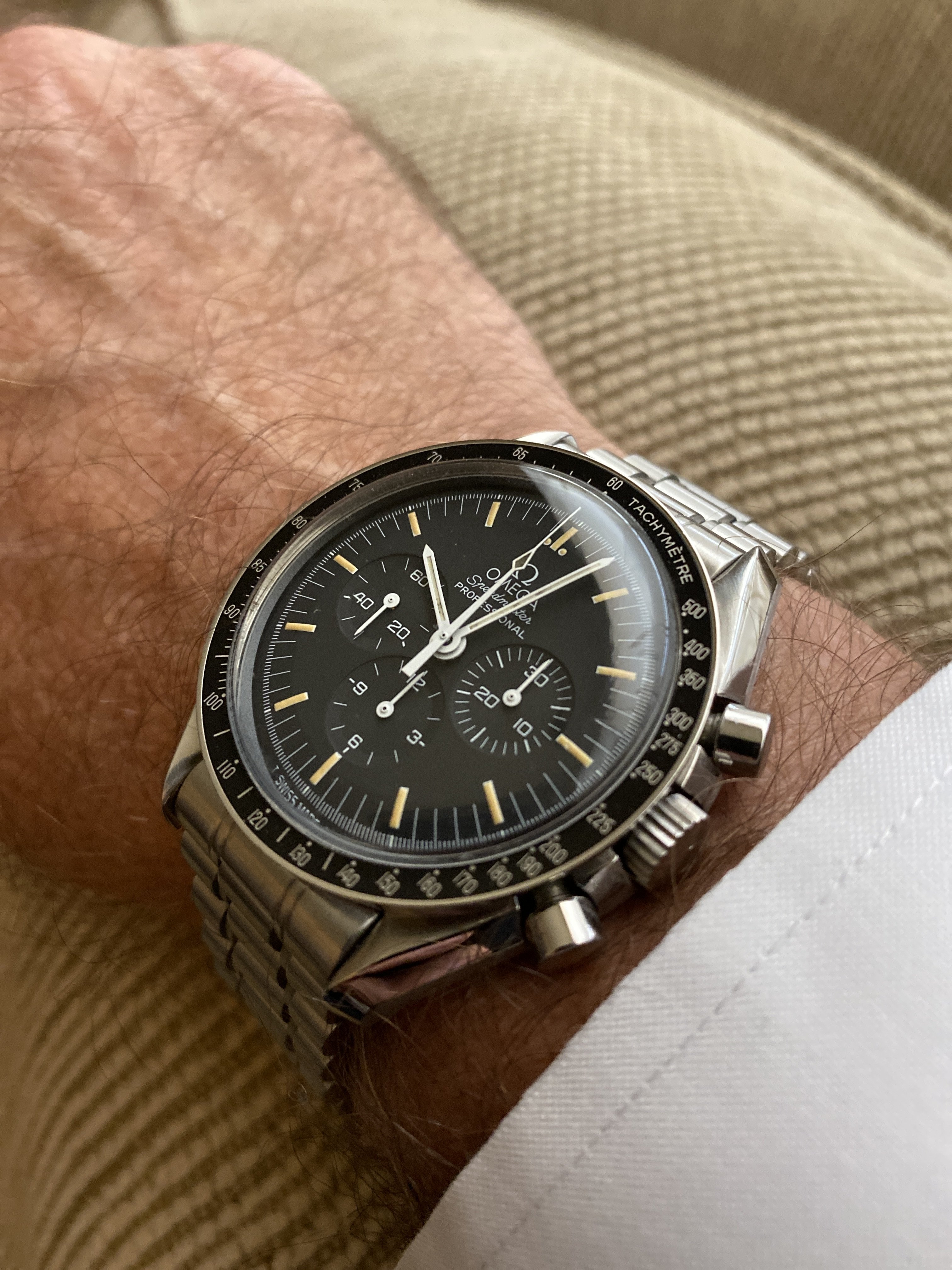 I can't help but wonder how much nicer the FOIS would look with tritium lume plots and hands that would patinate over time. That’s one of the reasons that I own vintage Speedy Pros.
