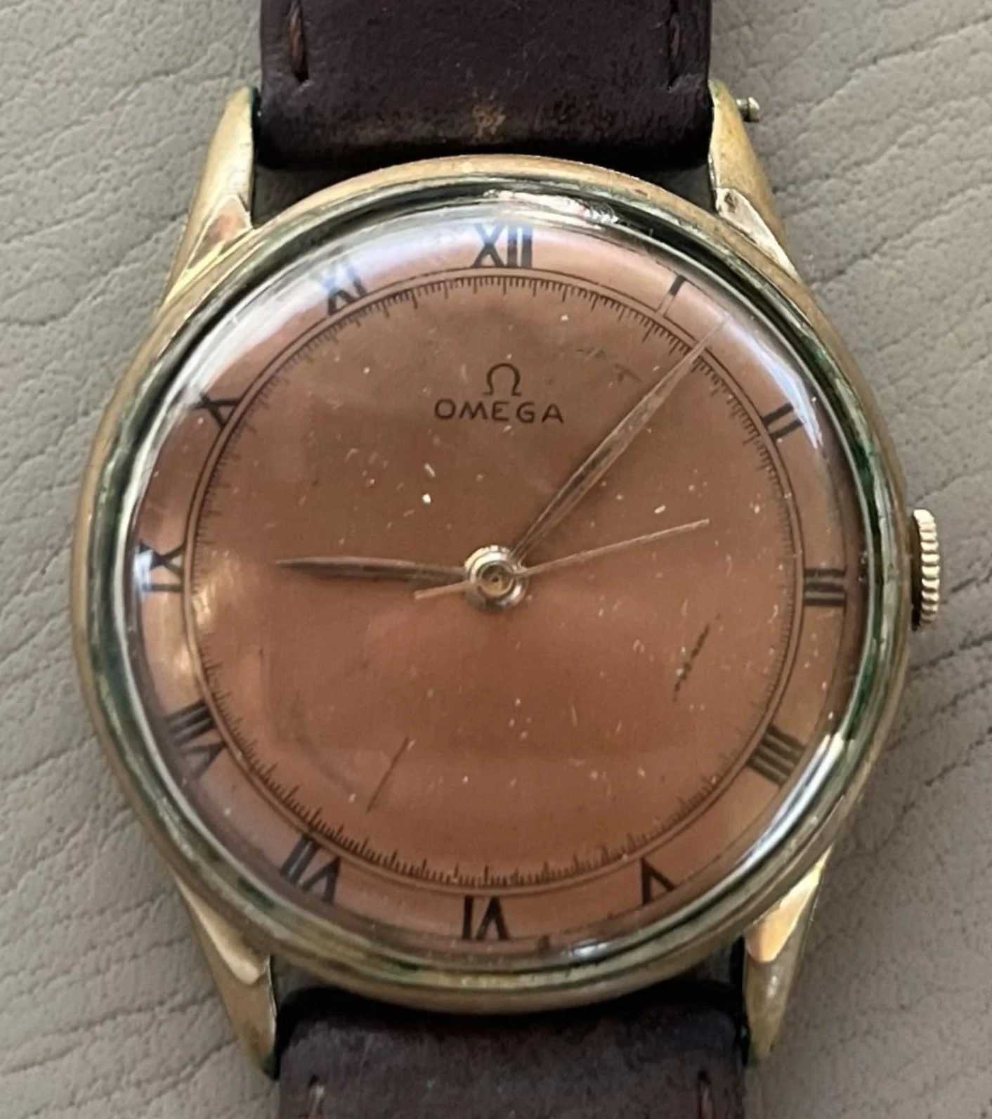 ·I am being offered this vintage omega, I can tell it must be a mid/late 40's/ early 50s because of the aguille hands+centre seconds. There is some obvious corrosion, and rust. The seconds hand is unlike anything I have ever seen in an omega, maybe it broke, maybe it's a replacement. The dial is good looking though, but the logo and omega font look funny. I mainly have 60s/70s omegas so not too sure about these more vintage ones. I haven't discussed price yet but I think I could get it for no more than $150. I have asked for better pictures in the meantime. Thoughts?