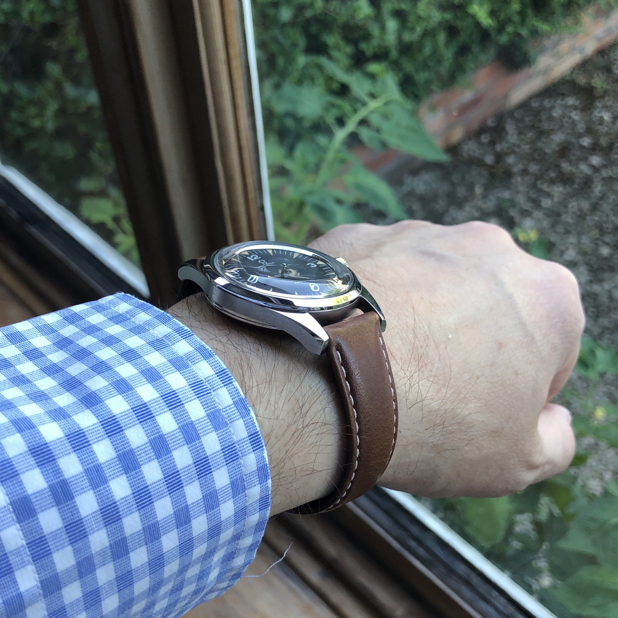 Here are a couple of pics of the RM on leather. In this case the FOIS 19mm Barena. Regarding the RM lug length, it is more noticeable on the leather strap but still not an issue on my 71/4” wrist. It’s nothing like the LLD, that was uncomfortable overhang city. That said, the lugs are considerably longer than some other designs. I did a comparison pic below against sparkle dial 36mm 166.032 and you can see the RM is way longer so it will feel much bigger on the wrist than some other 36-38mm designs. If you struggle with a short lug 38mm then you may struggle with this but that said, I would surmise that unless you are ultra petite it shouldn’t be too tricky to get a nice fit. These comments will likely apply to the SM and Speed too as they seems similar length but I haven’t confirmed it with callipers as yet.