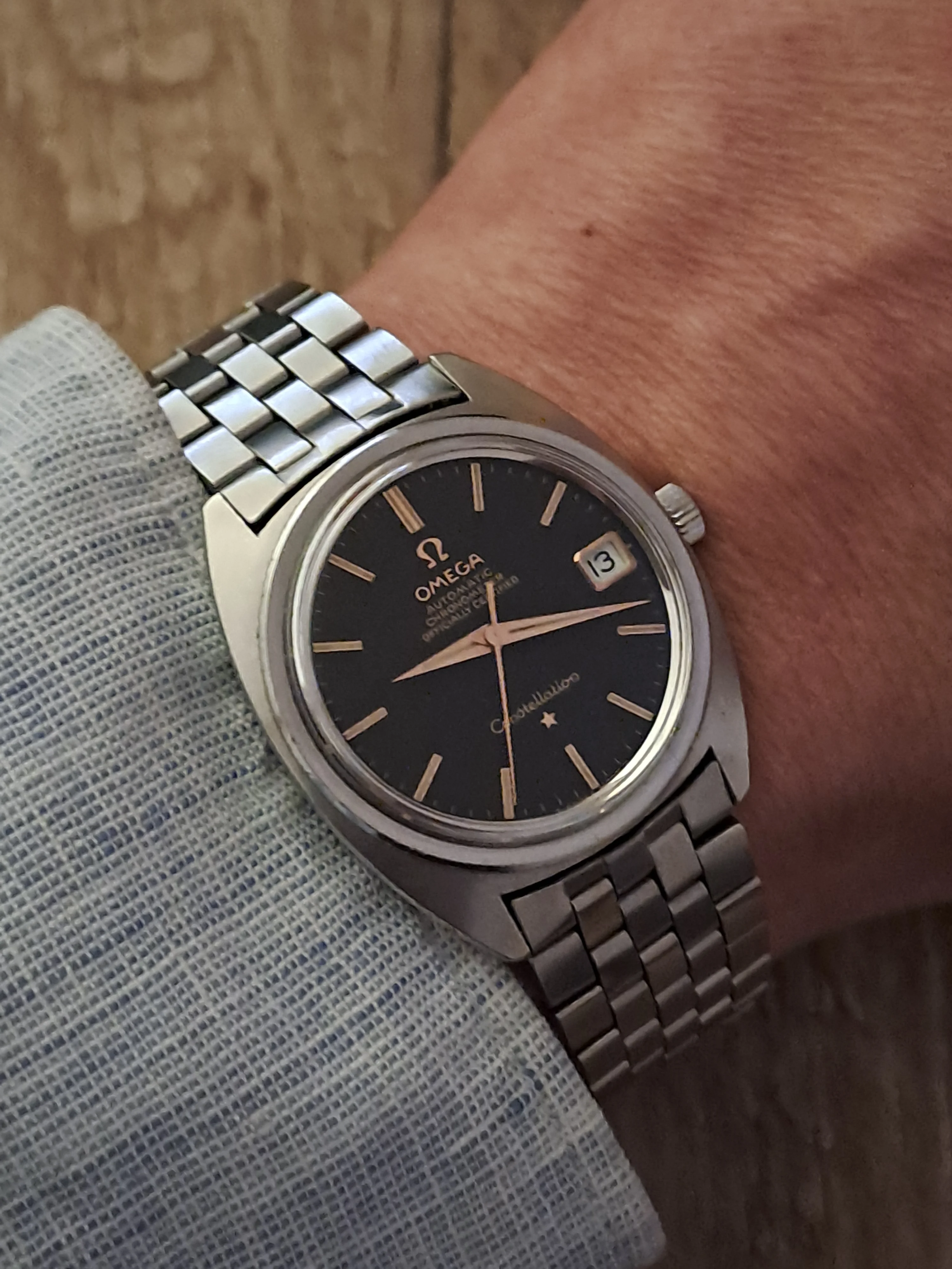 There's really no easy way to quantify rarity, and value is best determined using research on recent auction sales. Personally, I'm not a big fan of the c-case Constellation style, but if you like it, it looks like a nice watch, and black dials are certainly less common than silver.