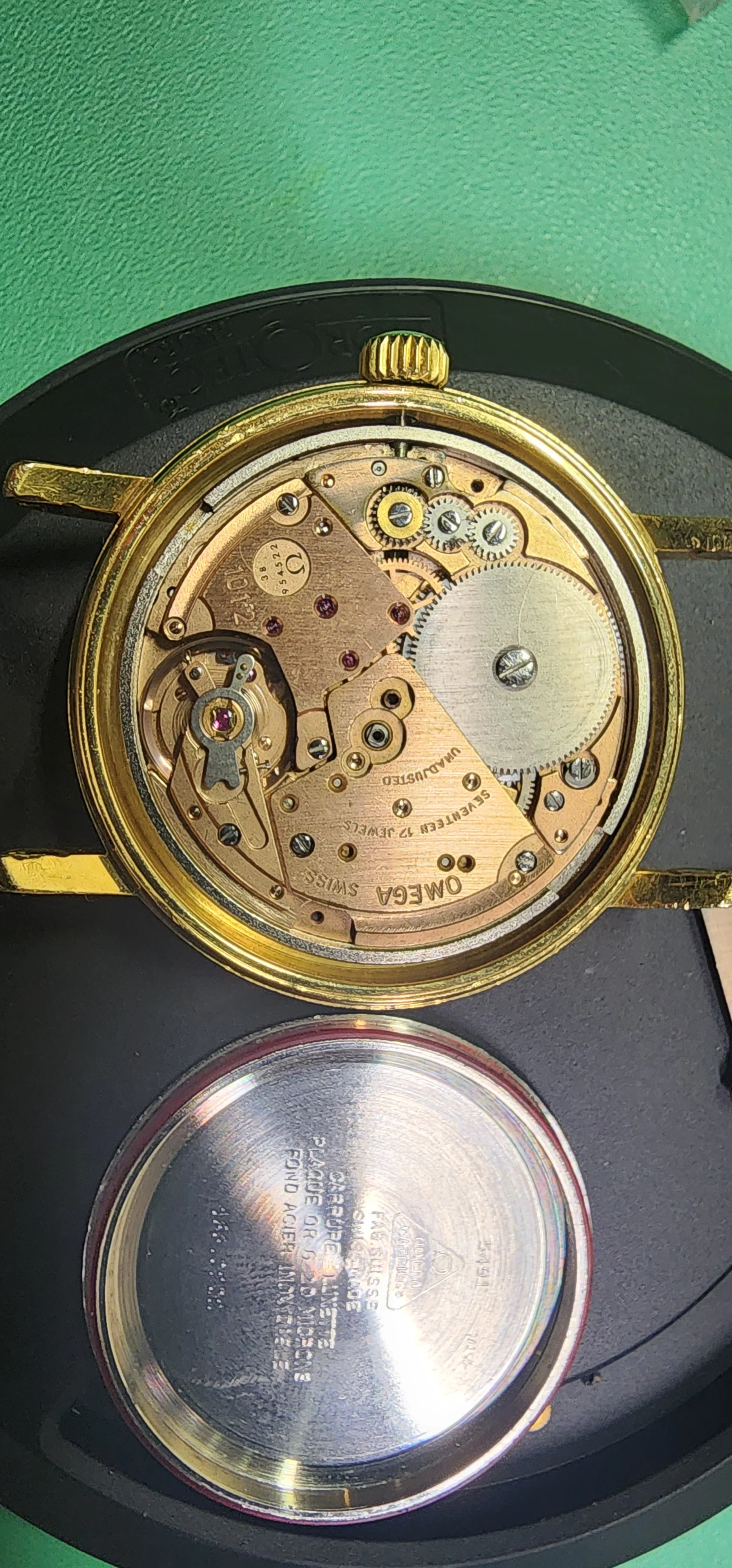 My friend wants me to service his omega, but I am questioning if the movement is married including dial and does it go with the case number. The movement states 1012 which is 23j but the automatic section states 17j. See photos. Can someone help me to be pointed in the direction of finding out which movement belongs to this case 166.0202, I took off the rotor for better understanding of the problem. The case is also marked 20micron Omega between the lugs.