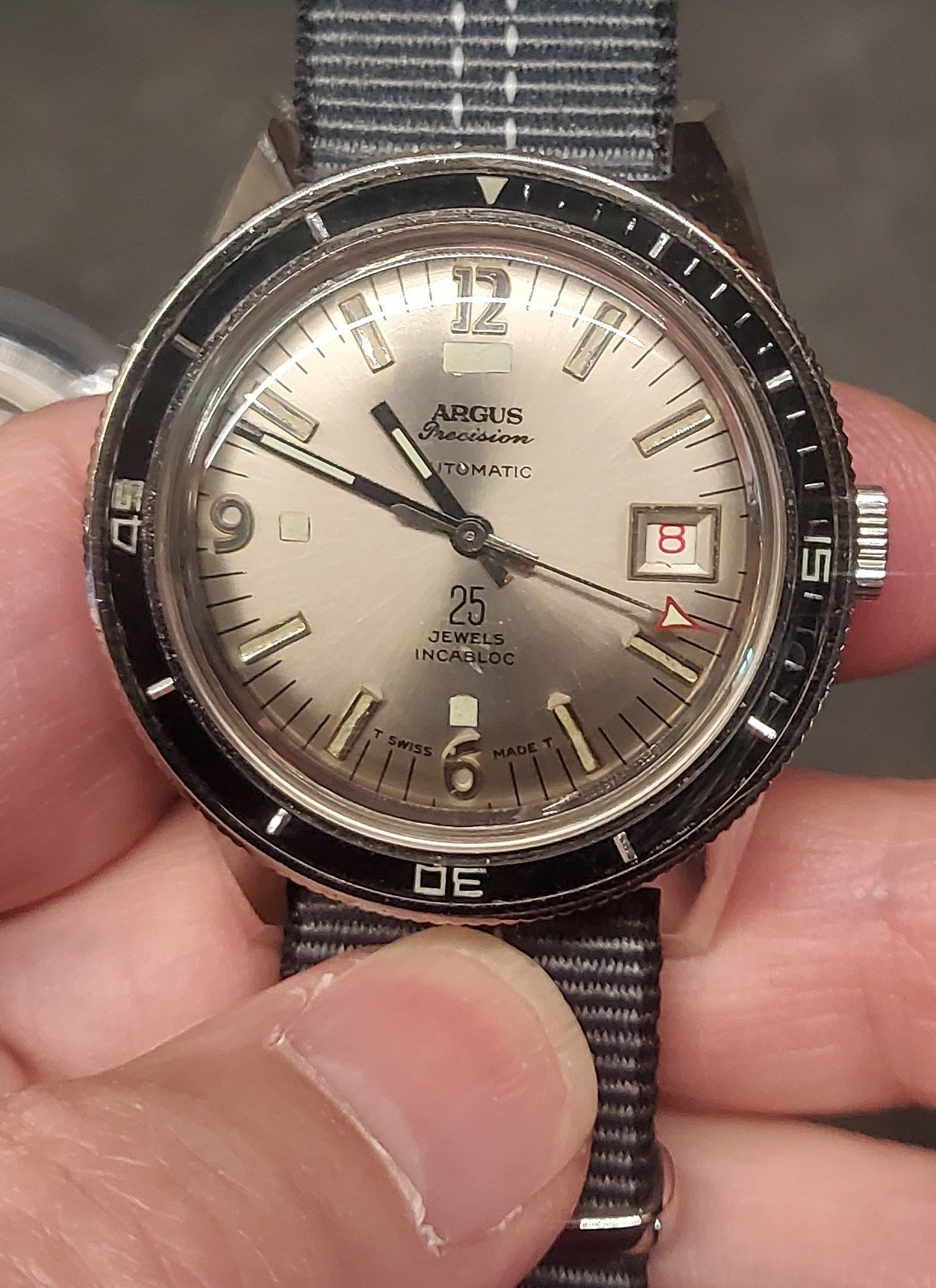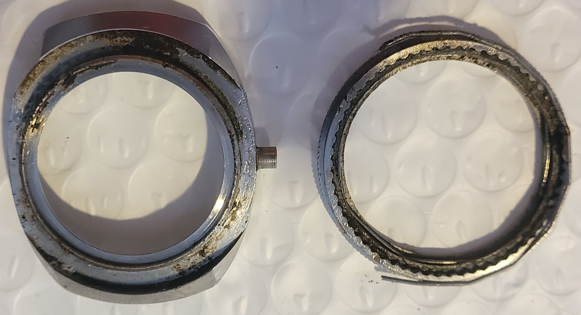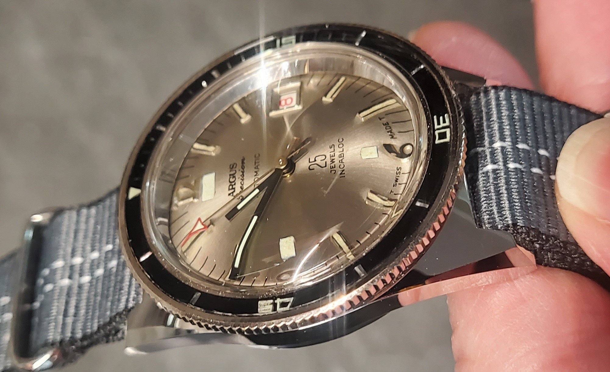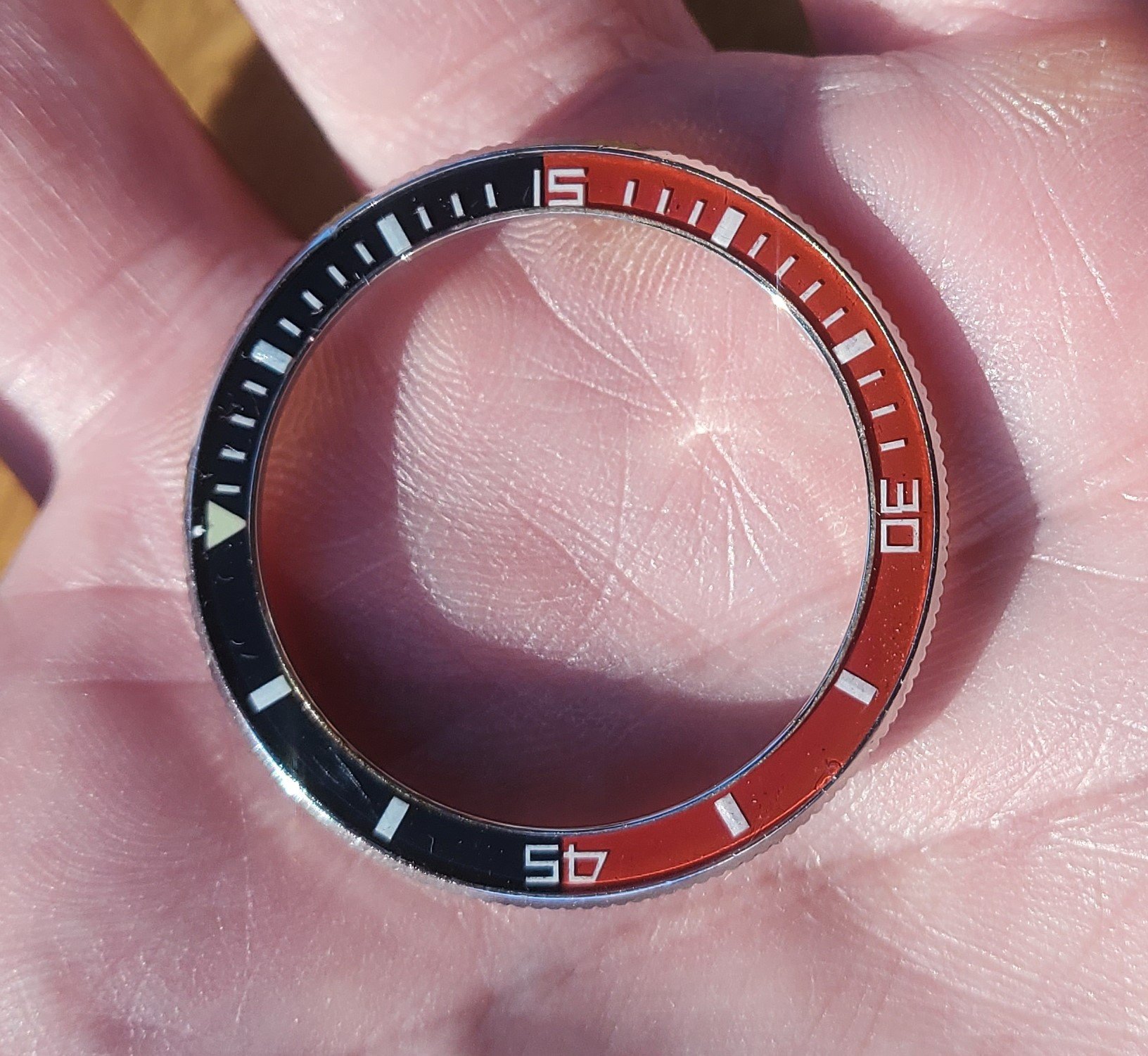 . Then I remembered that some time ago I added a cheap case back removal tool to my arsenal. Having a fine edged wedge blade it looked like it could work. To help avoid marring the case I wedged a couple strands of floss under the bezel to lift it a bit, and the tool fit in without issue. It did raise the bezel but the blade eventually came in contact with the inner case and the bezel still hadn't popped off. At least at this point I was able to remove the jammed bits of floss but I could see that it was very dirty in there and that the bezel really needed to come off for a thorough cleaning. I have numerous sizes of screwdriver bits and found a couple that fit perfectly into the spaces on either side of the case back removal tools knife, and so inserted them there and removed the case from the tool. Then I was able to gently twist the bits with a screwdriver handle and the bezel popped off with no case or bezel damage.OK well then hit the gap with a pressure washer鈥orks on seized up fishing reels.