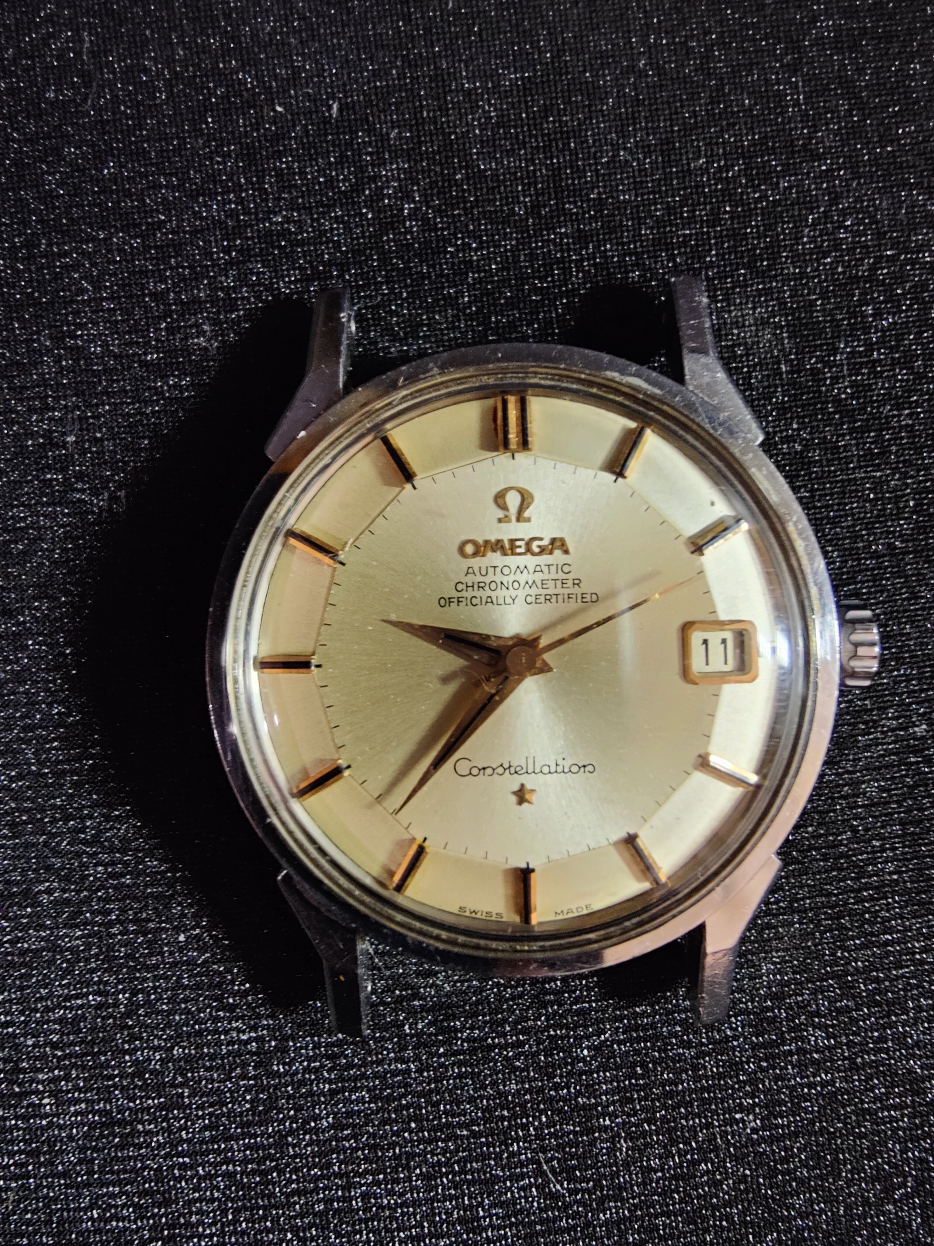 My Constellation 168.005 was just delivered today. However, I'm scratching my head on how to remove the bracelet (it looks like a cheap generic bracelet). There's no slot to remove the spring bar. My springbar removal tool also doesn't fit between the lugs and the bracelet.
