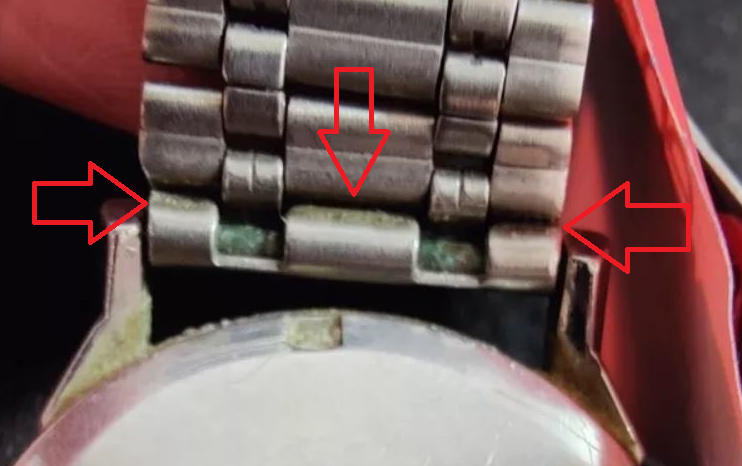 My gut reaction is also that some heathen has use shoulderless spring bars and a bracelet that’s the devils bloody work on a case without lug holes. Cut it off!