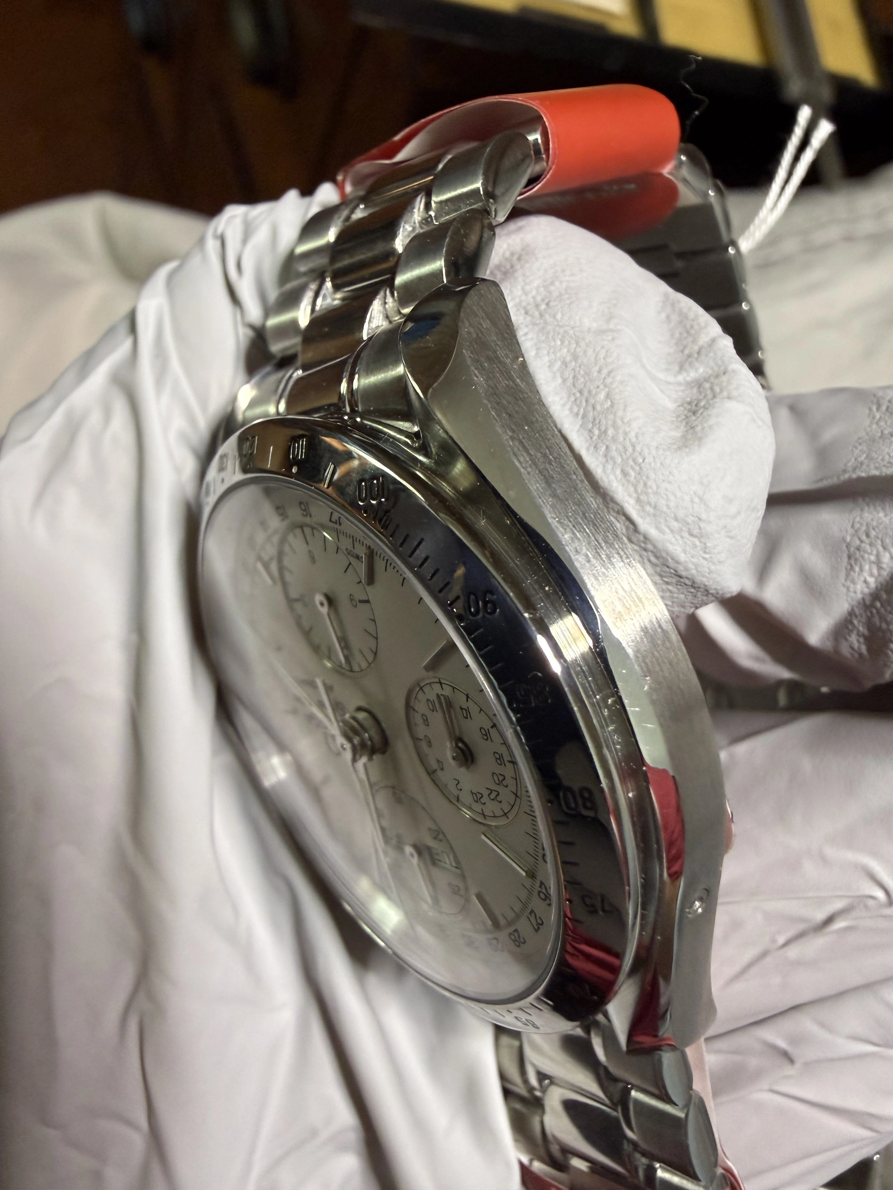 Another is brushed finishes that look semi-polished. On the bracelet of the Speedmaster, in some photos the brushed portions of it look like someone has partially polished them, like when someone uses a Cape Cod cloth on the brushed finishes not really understanding that this will polish the brushed finish.