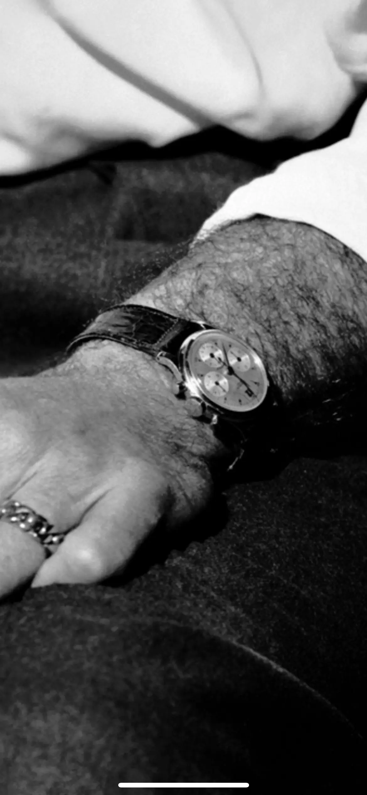 "In the 1950s, Bogart wore a three-register chronograph in films like Deadline - U.S.A. (1952), In a Lonely Place (1950), and Chain Lightning (1950). The brand and model remain unidentified, though some speculate it was his personal watch, possibly a Gruen or another vintage chronograph."