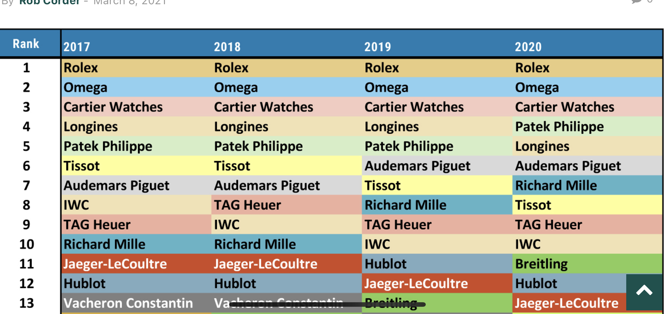 It’s not one year: the same report has Rolex on top by a significant margin going back to at least 2017 (when the current charts stop reporting historical).