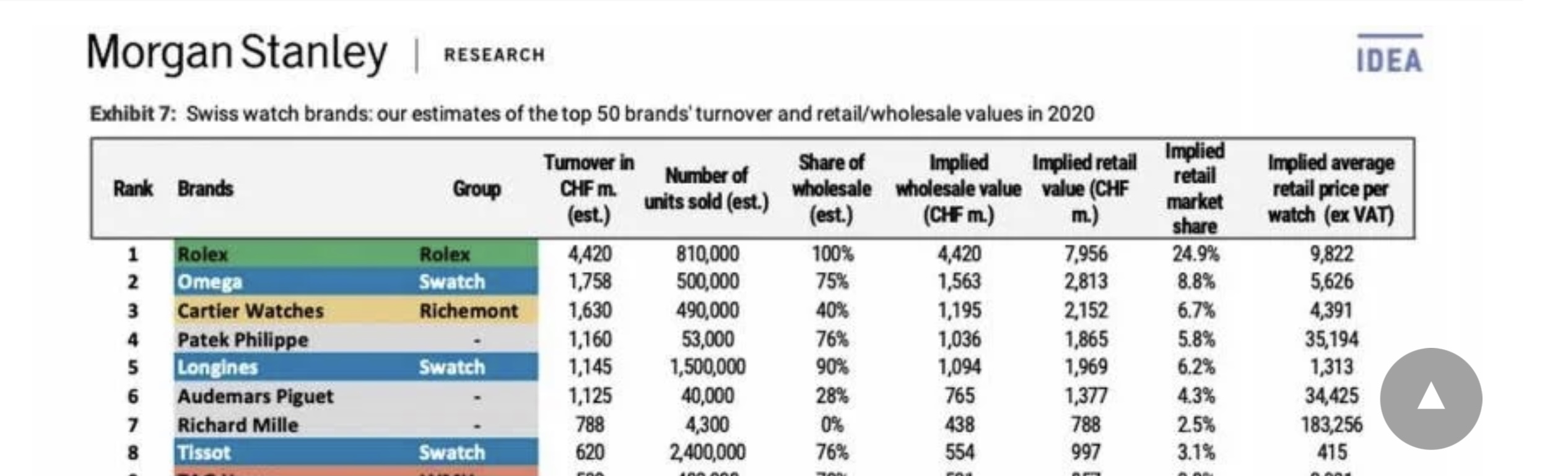 There are different ways to measure market share (eg by units sold, by value of units sold, etc.) - the report addresses these. Right or wrong, the various analysts all suggest Rolex is out front by an order of magnitude on all accounts.