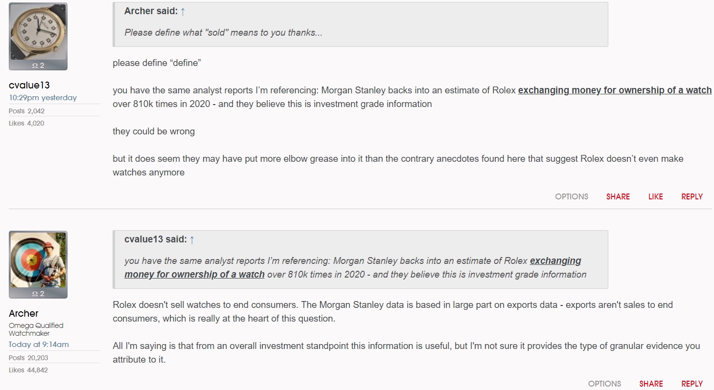 So I’m left feeling like I still might not fully understand the thrust of your point about supply chain in comparing Rolex vs Omega based on AD’s cases. If there’s a surplus of stock somewhere explaining Rolex’s “exports,” and it’s not in ADs cases, and it’s not been “sold” - where is it?