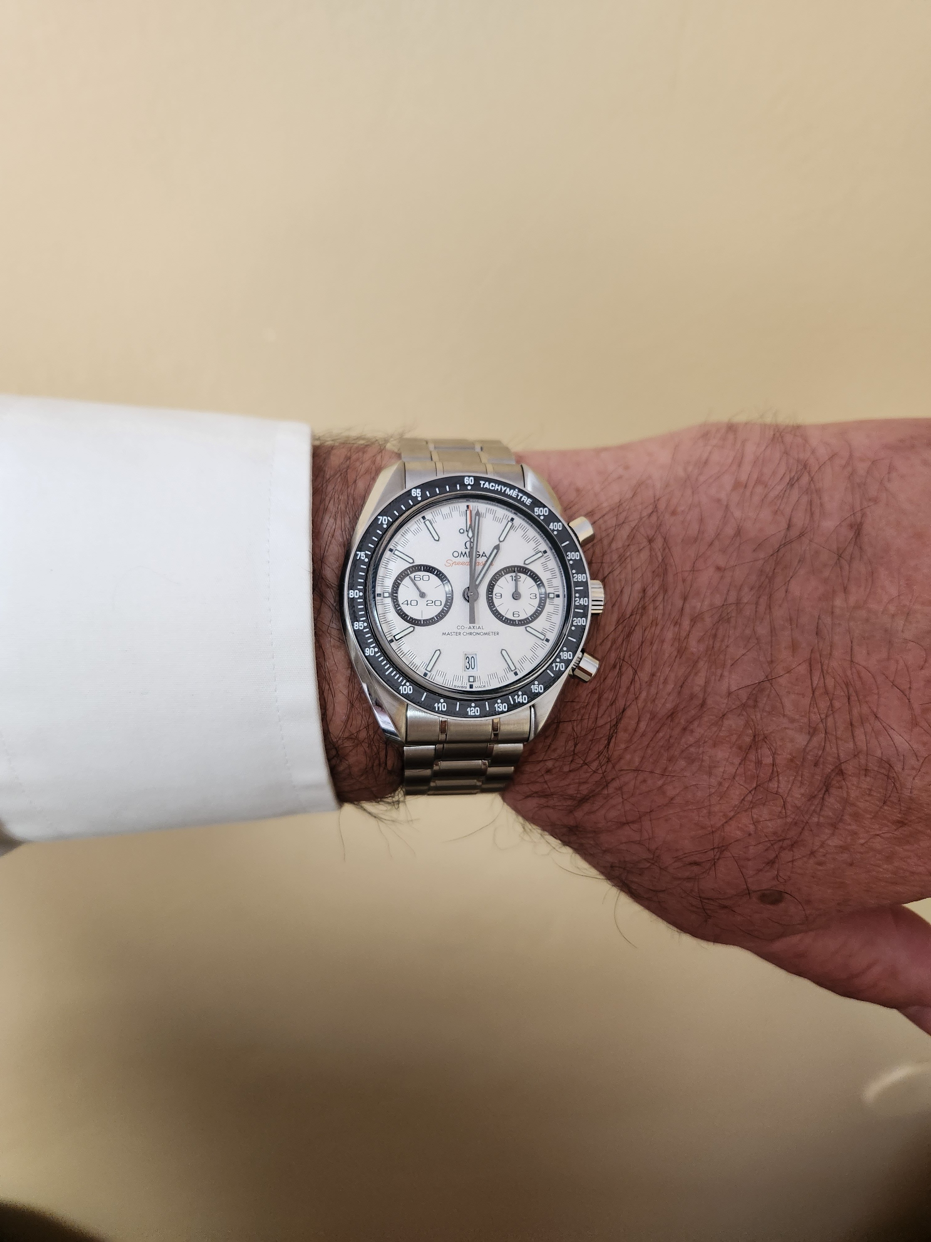 The Speedmaster Super Racing has the Spirate System, which increases the potential accuracy of the watch as it allows the adjustment to be much finer. It's specified to be within 0 to 2 seconds fast per day, and typically is accurate to within one second per day.