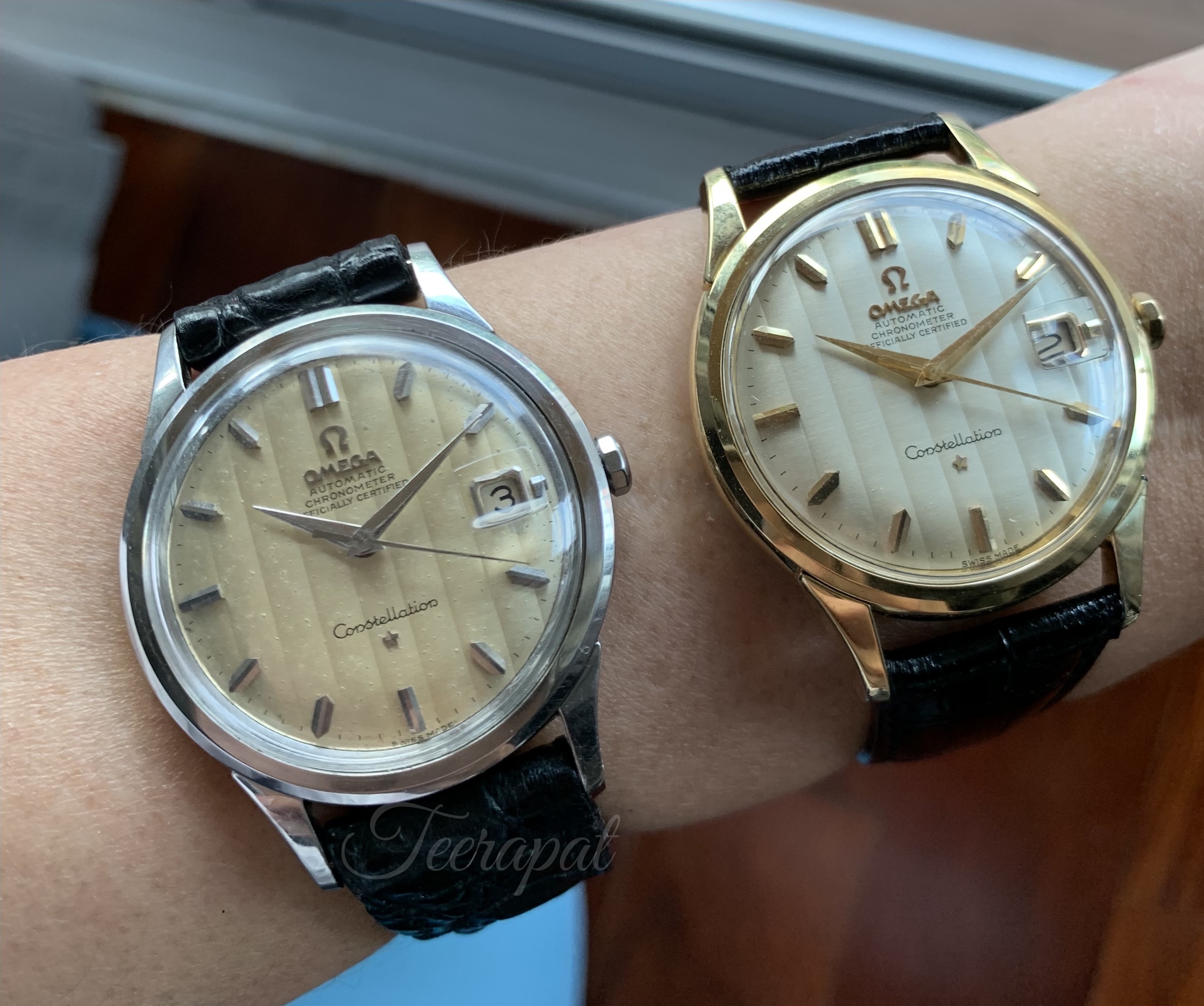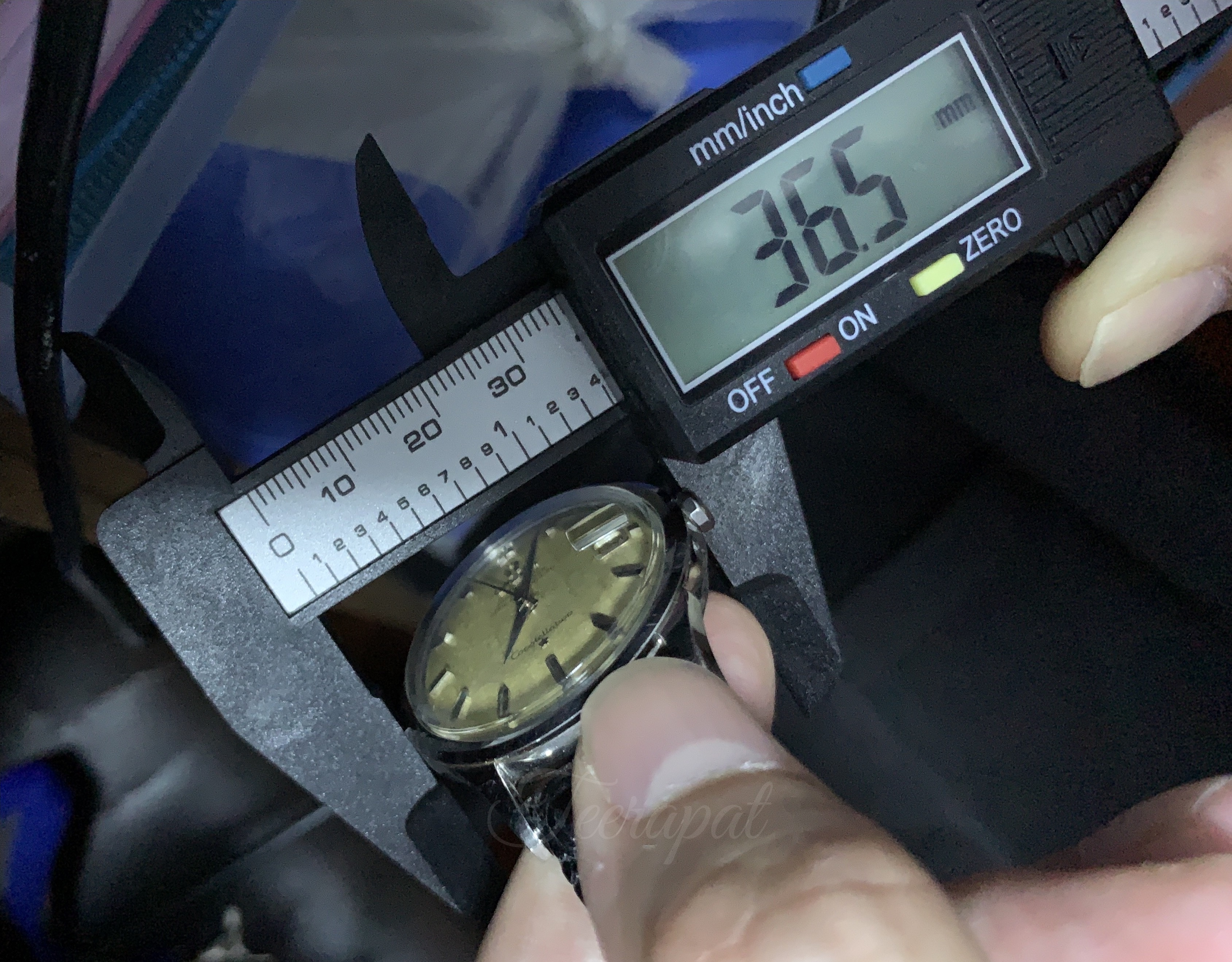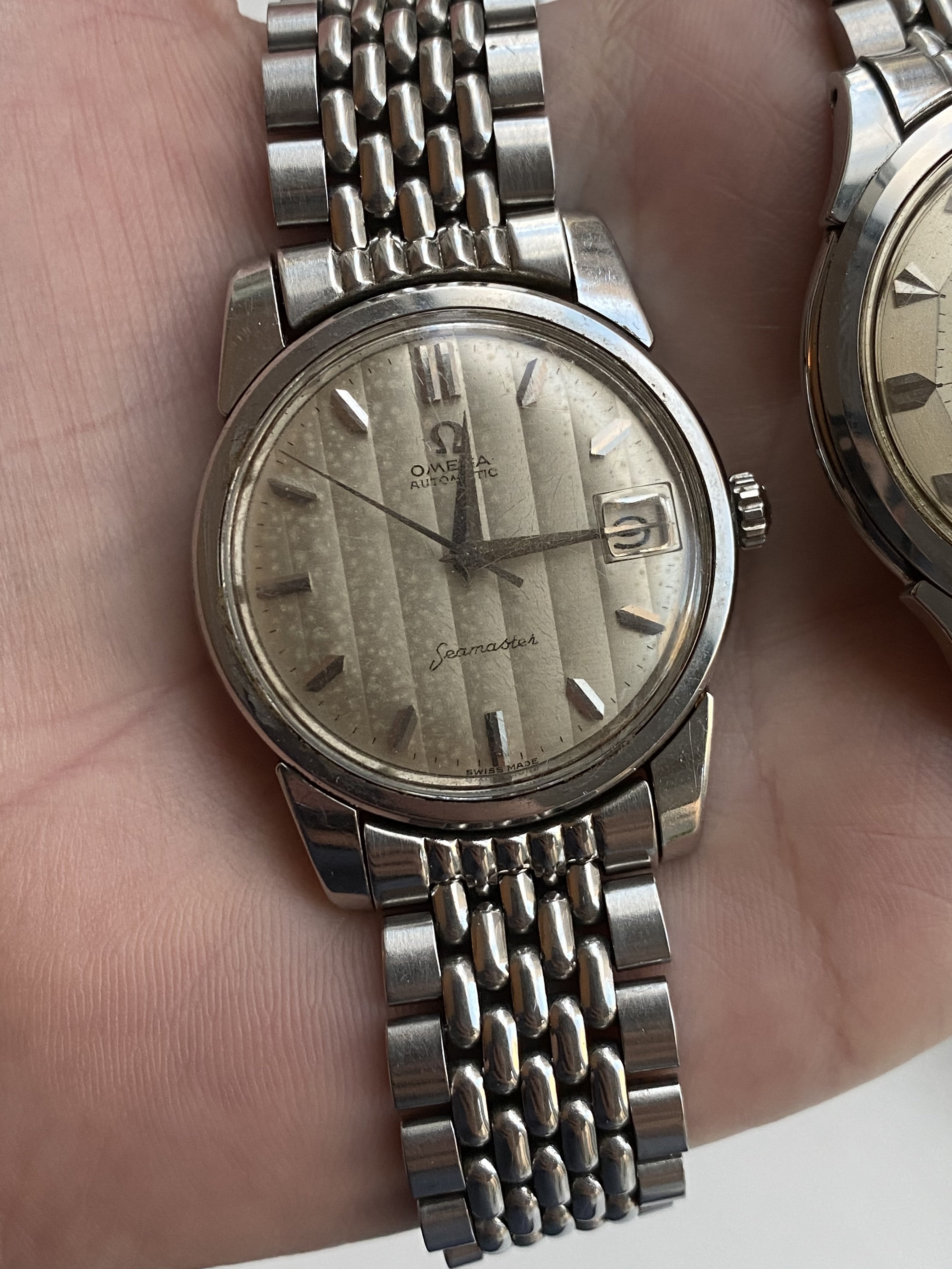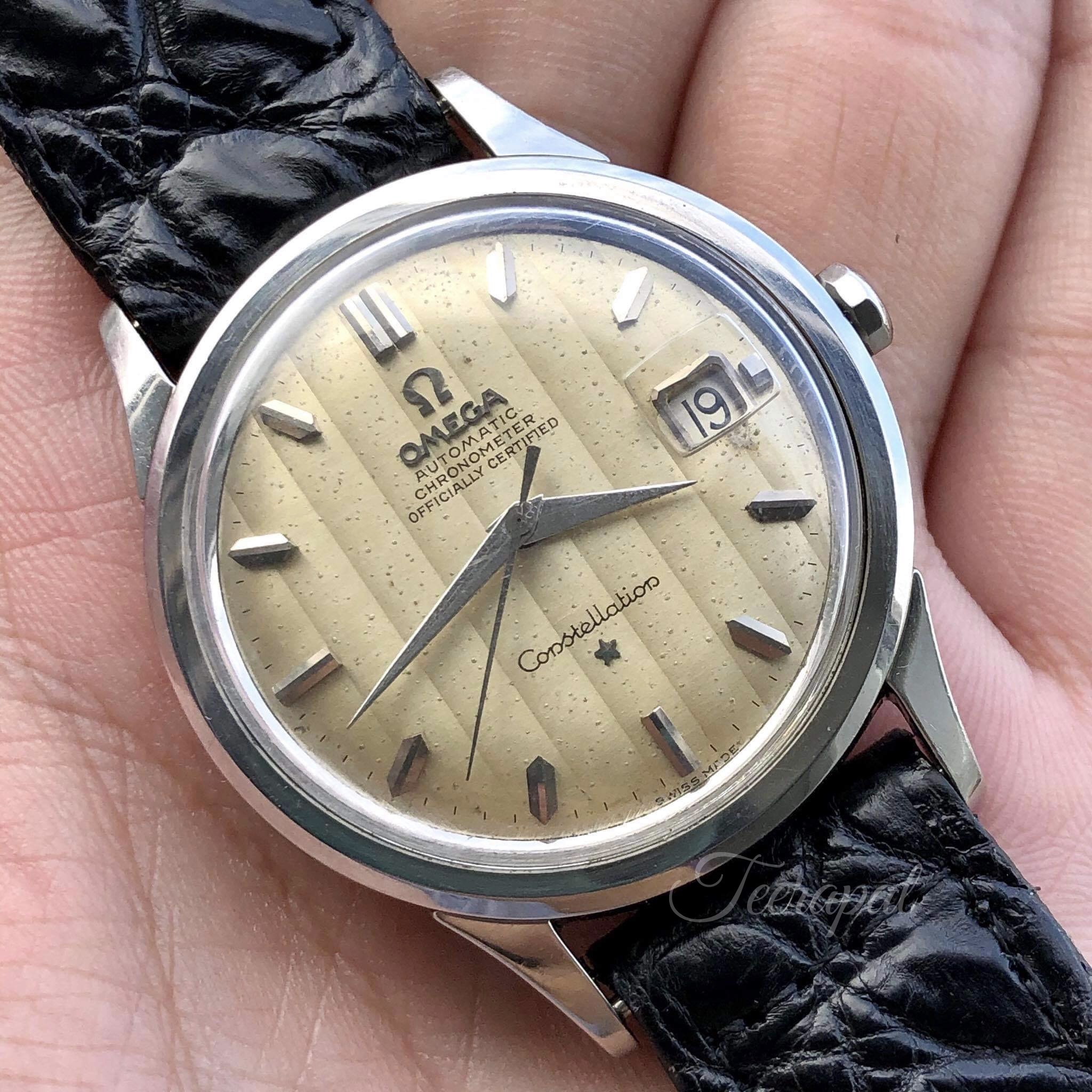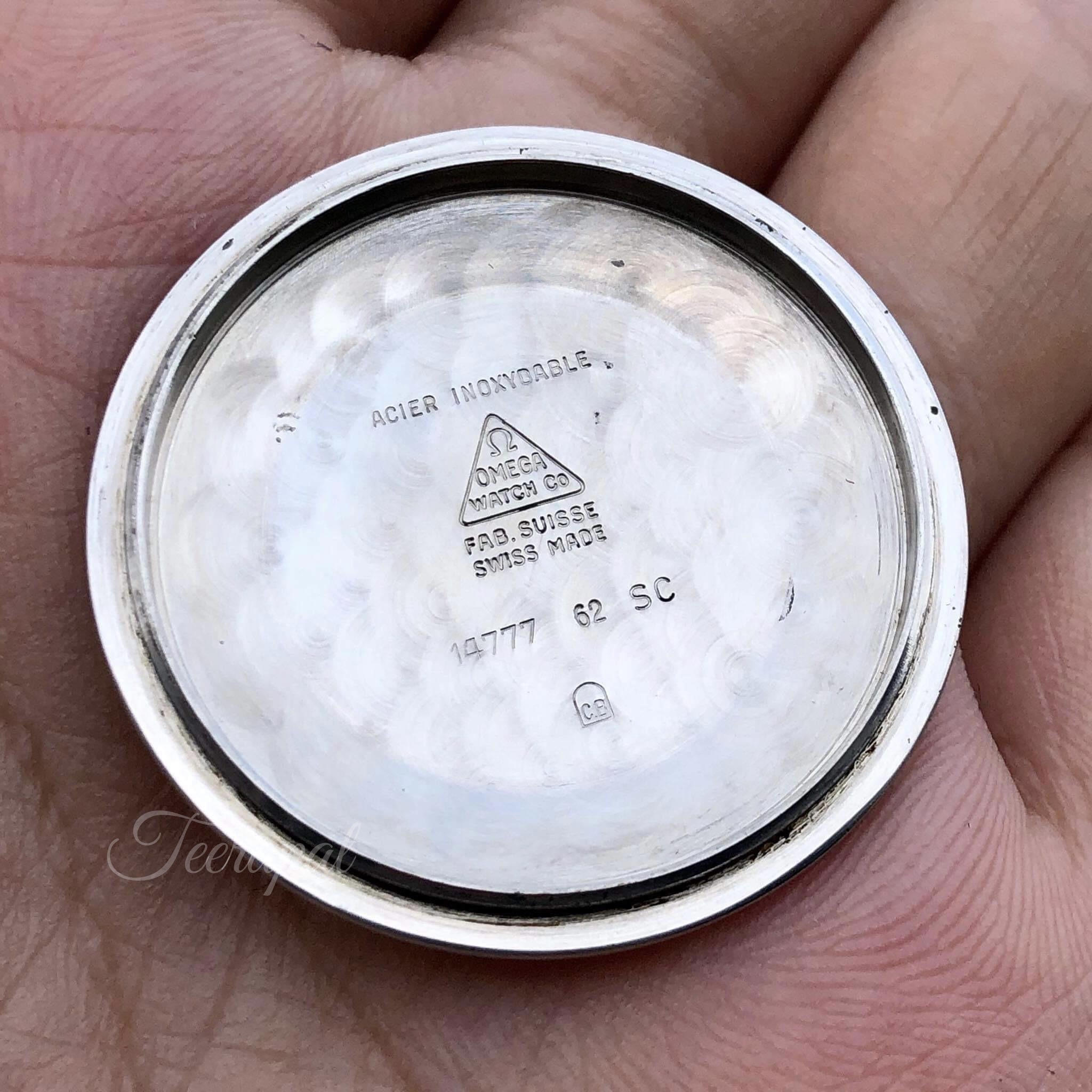 I also found and add another omega 14777 in my collection. It was stainless steel version. The diameter was measured as 36.5 mm excluding crown, uncommon “curtain” dial with some patina.