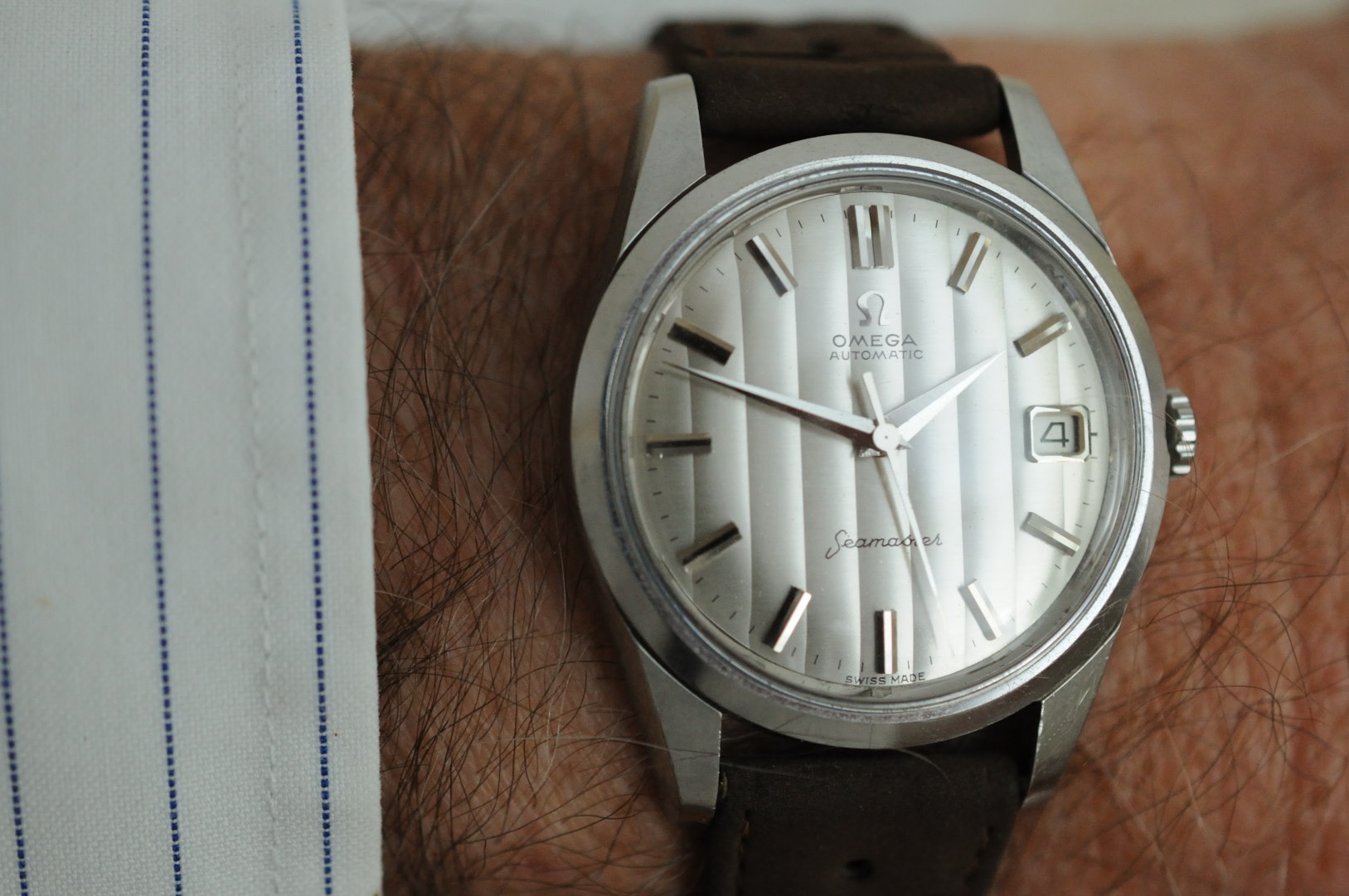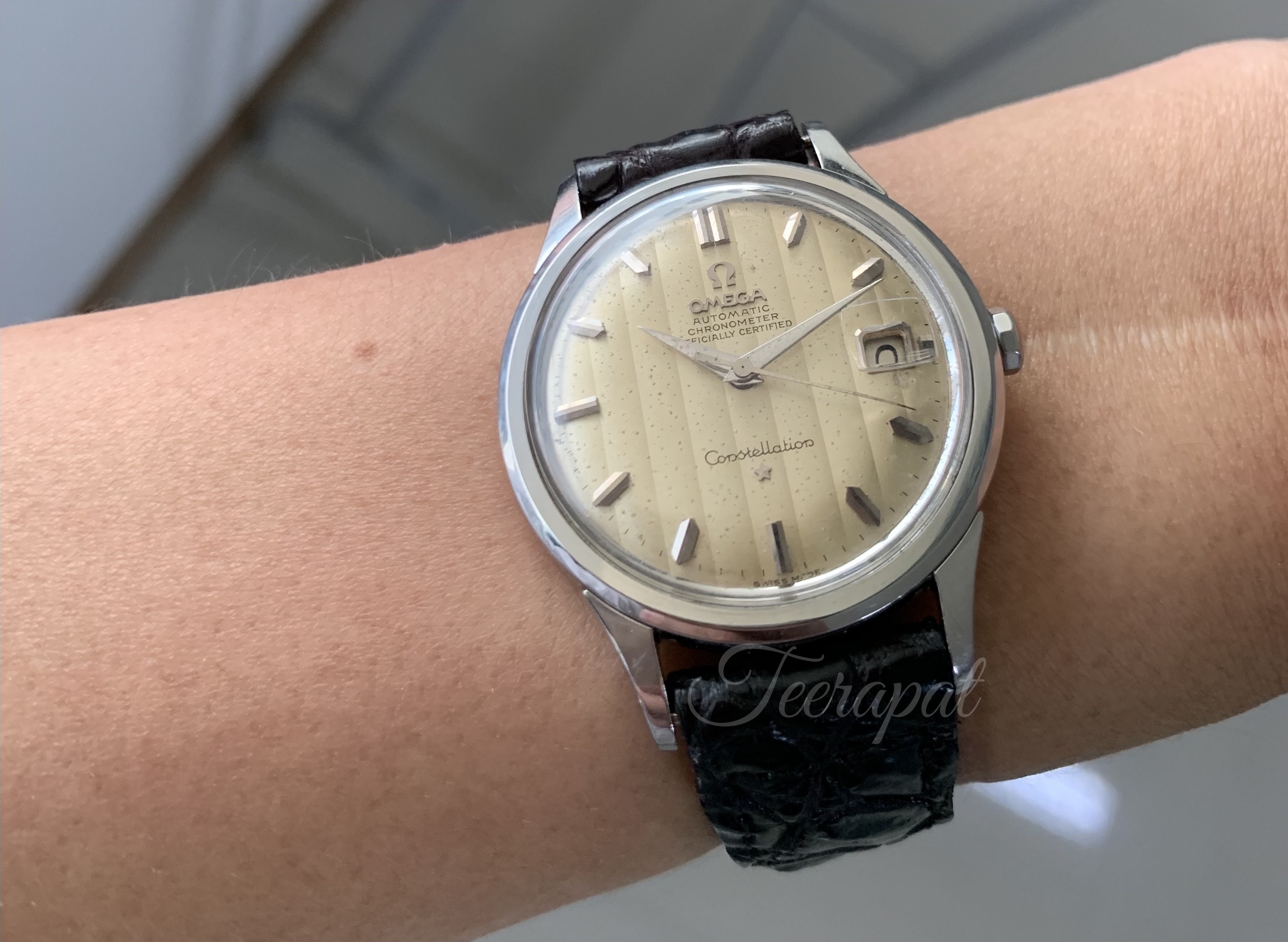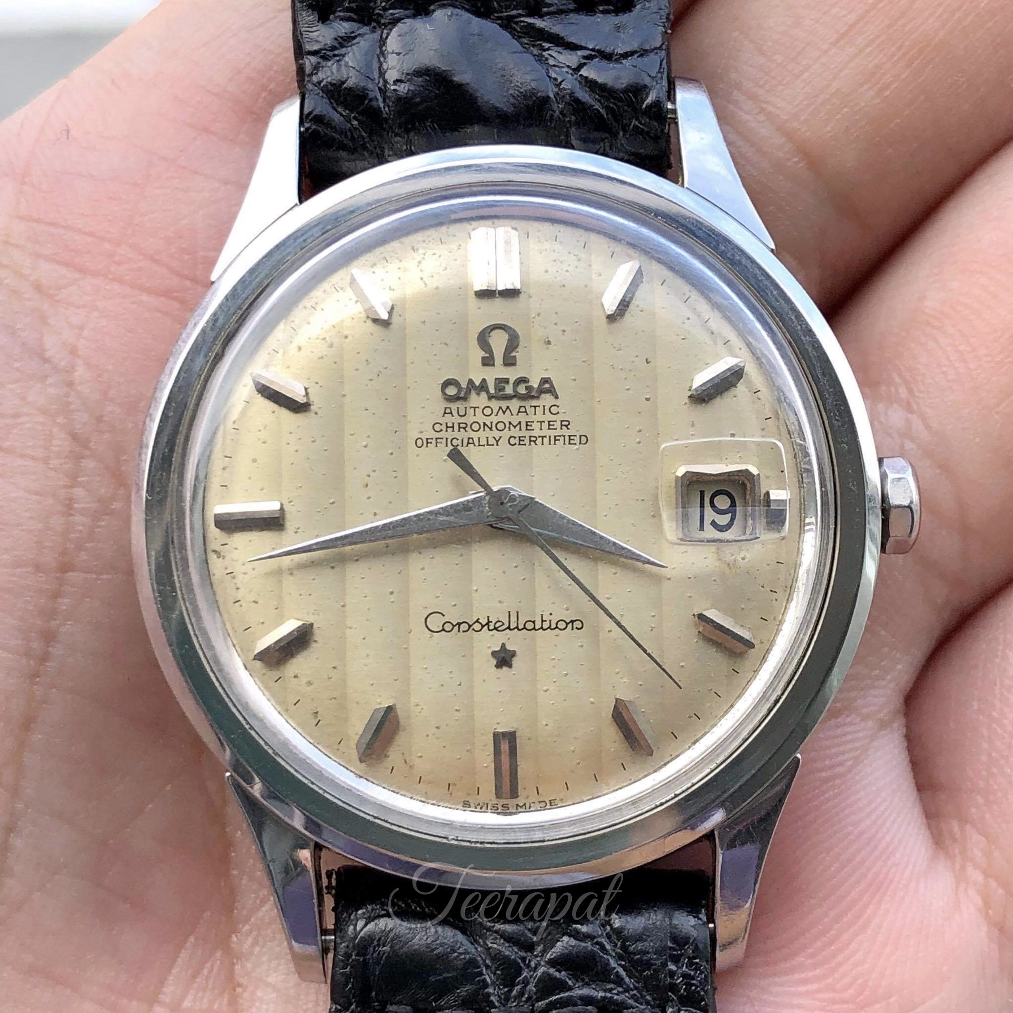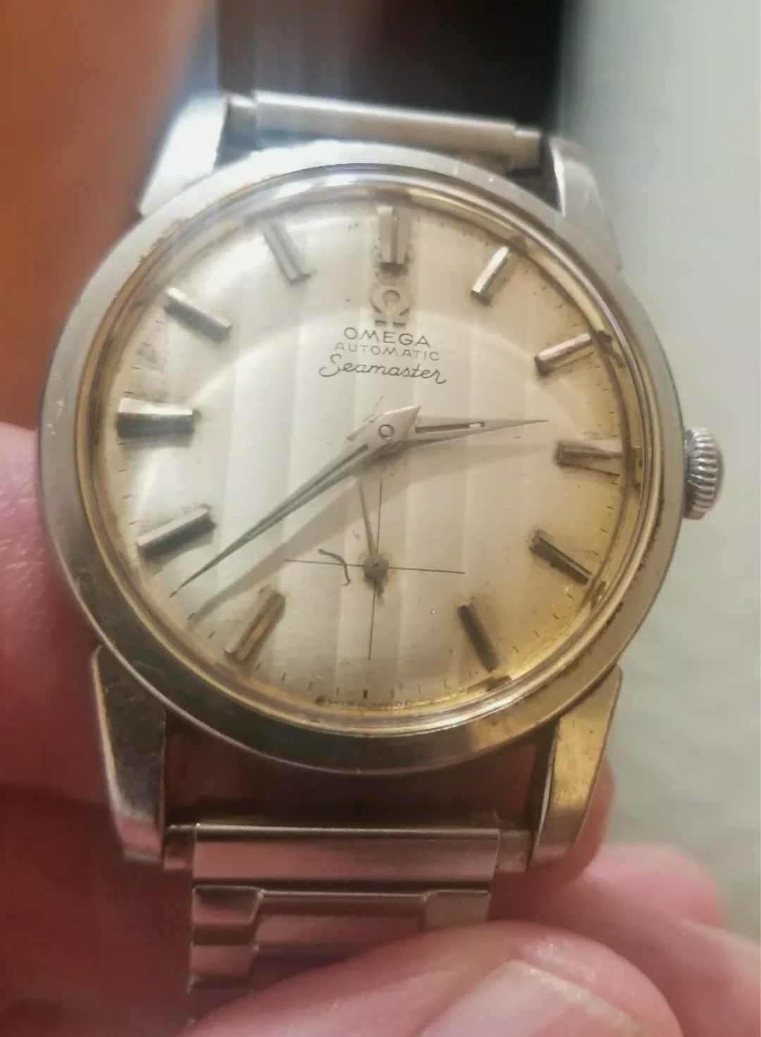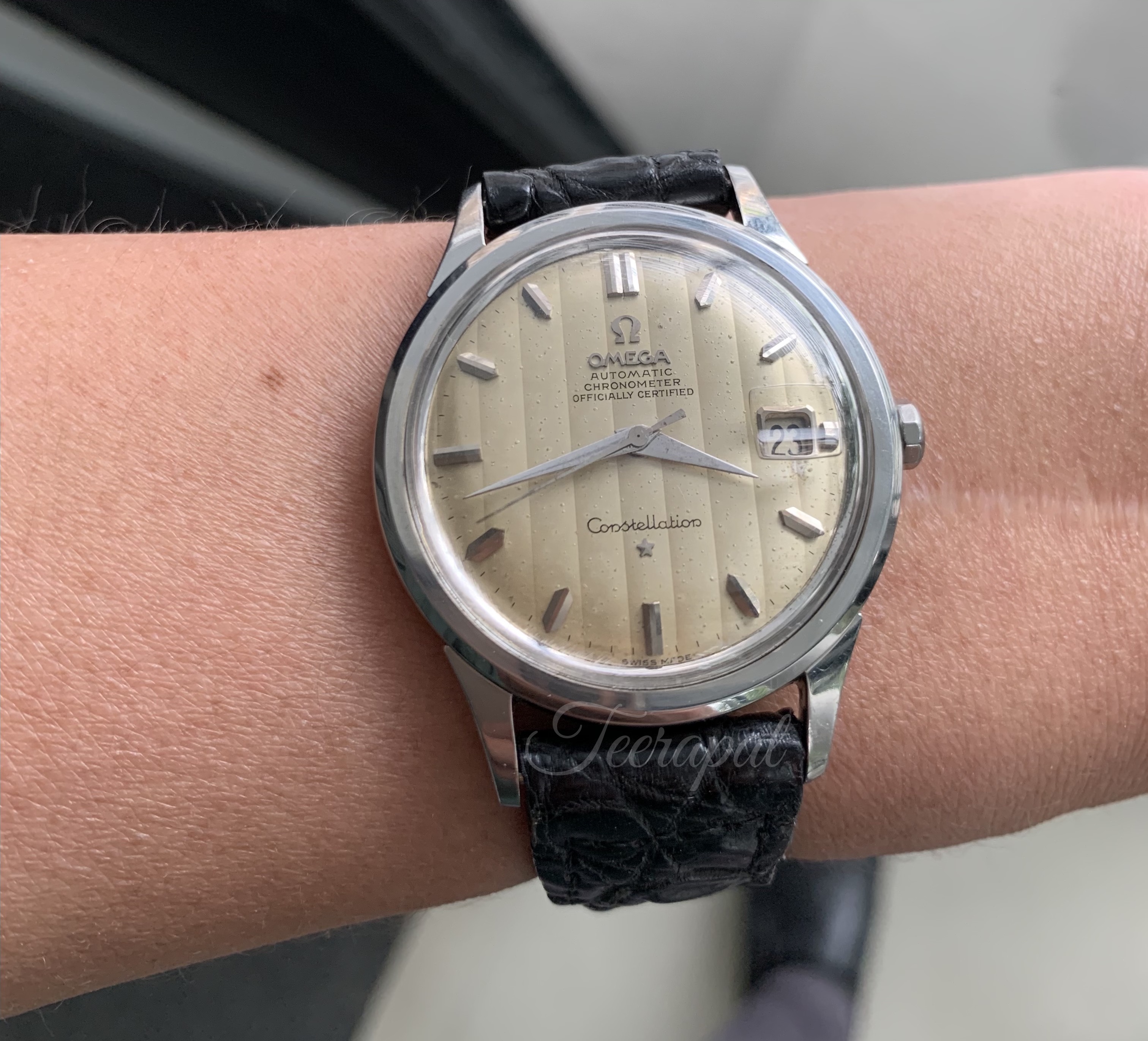 I also found and add another omega 14777 in my collection. It was stainless steel version. The diameter was measured as 36.5 mm excluding crown, uncommon “curtain” dial with some patina.