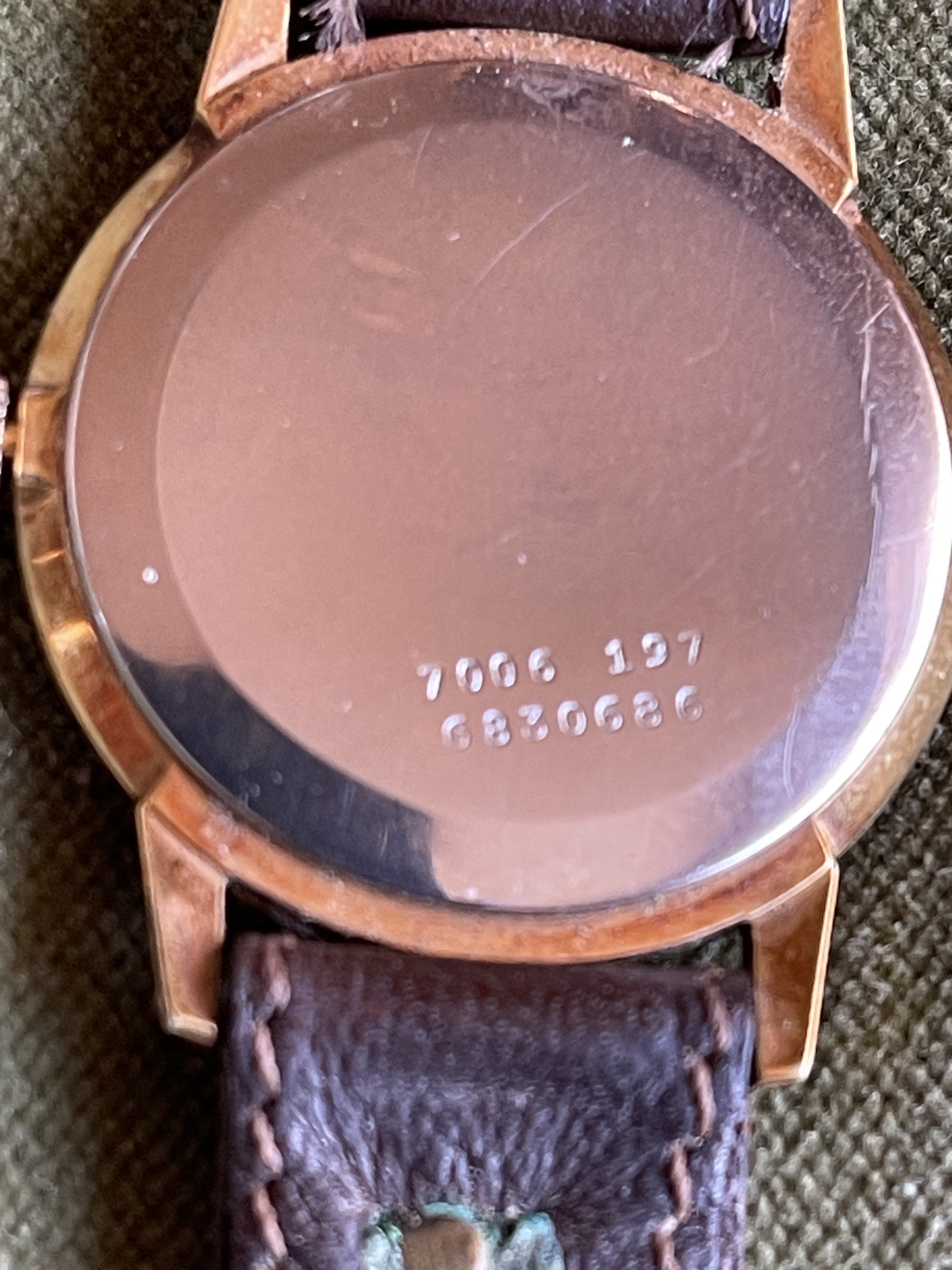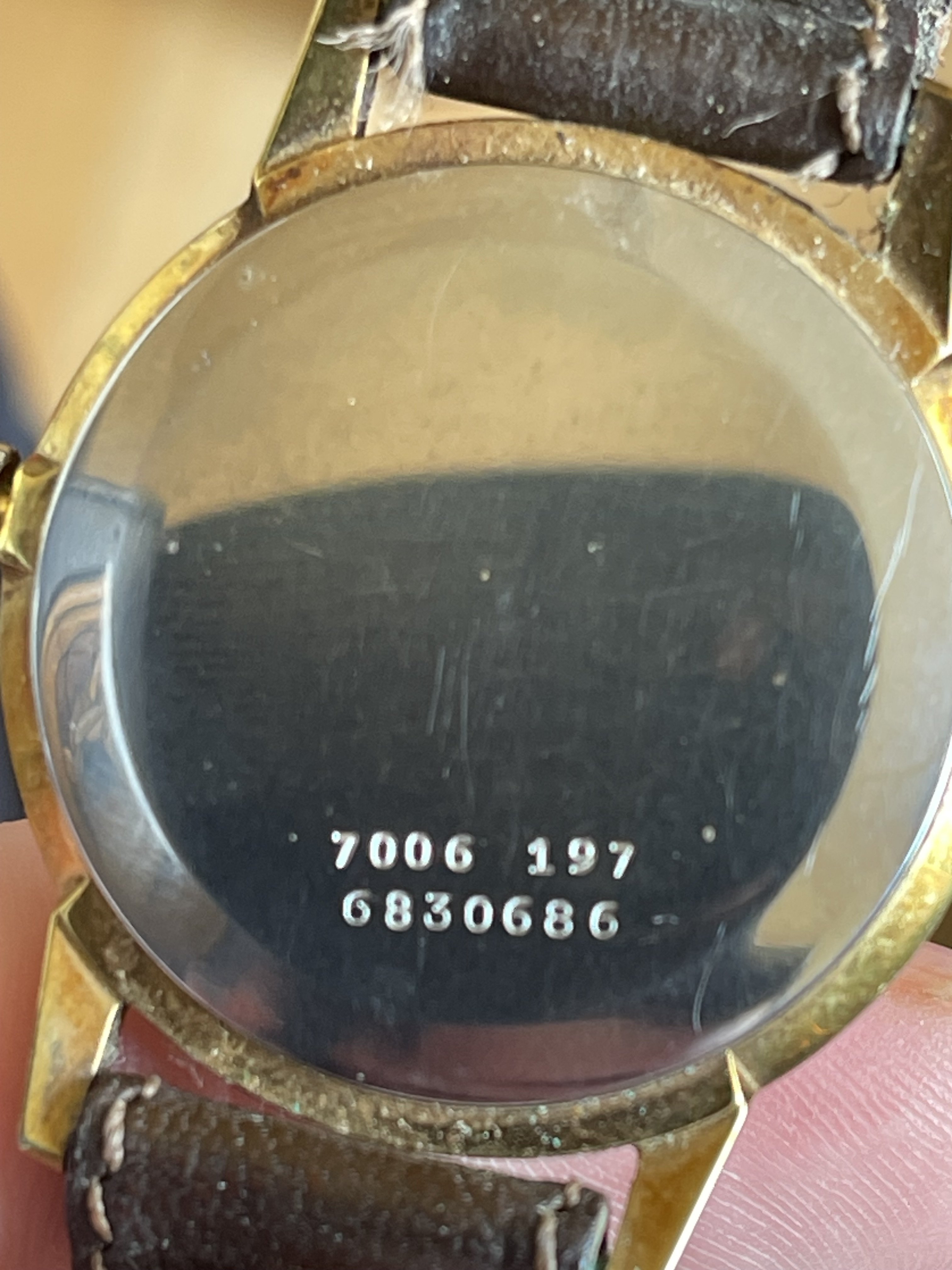 1/ it’s gold plated -as evidenced by the steel back, and the lugs are scratched even though the dial is very clean.