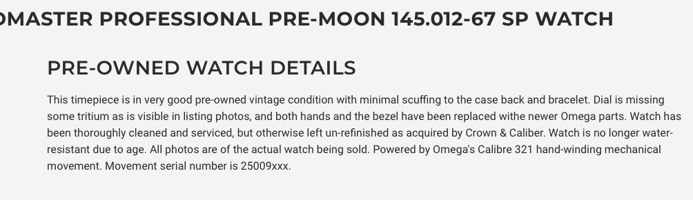 I have purchased twice from them and have found out through their own representative that no, the watches are not serviced unless stated so in the description. The first watch I purchased was returned for a refund and the second watch was returned for warranty/servicing two days after I received it for corrosion and other issues. It took over a month for them to receive the parts as they came direct from Omega.