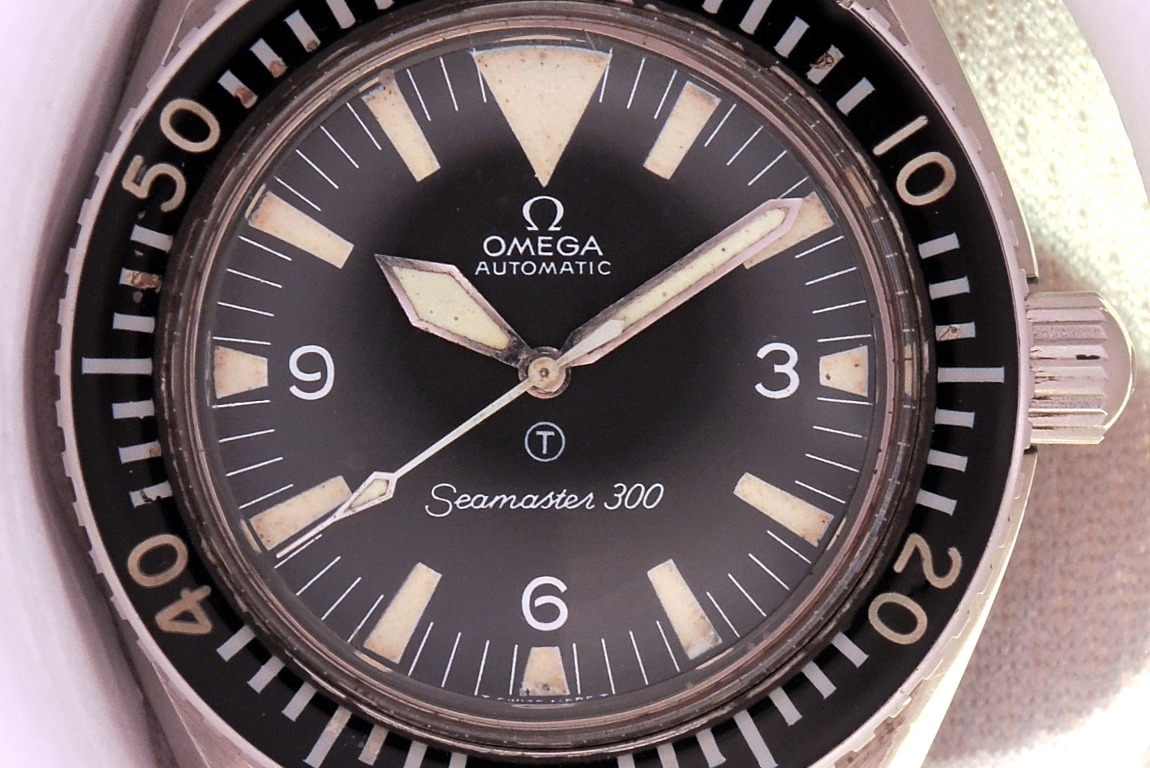 Early in it's life it had an accident and was returned to Omega for a new bezel and dial to be fitted.