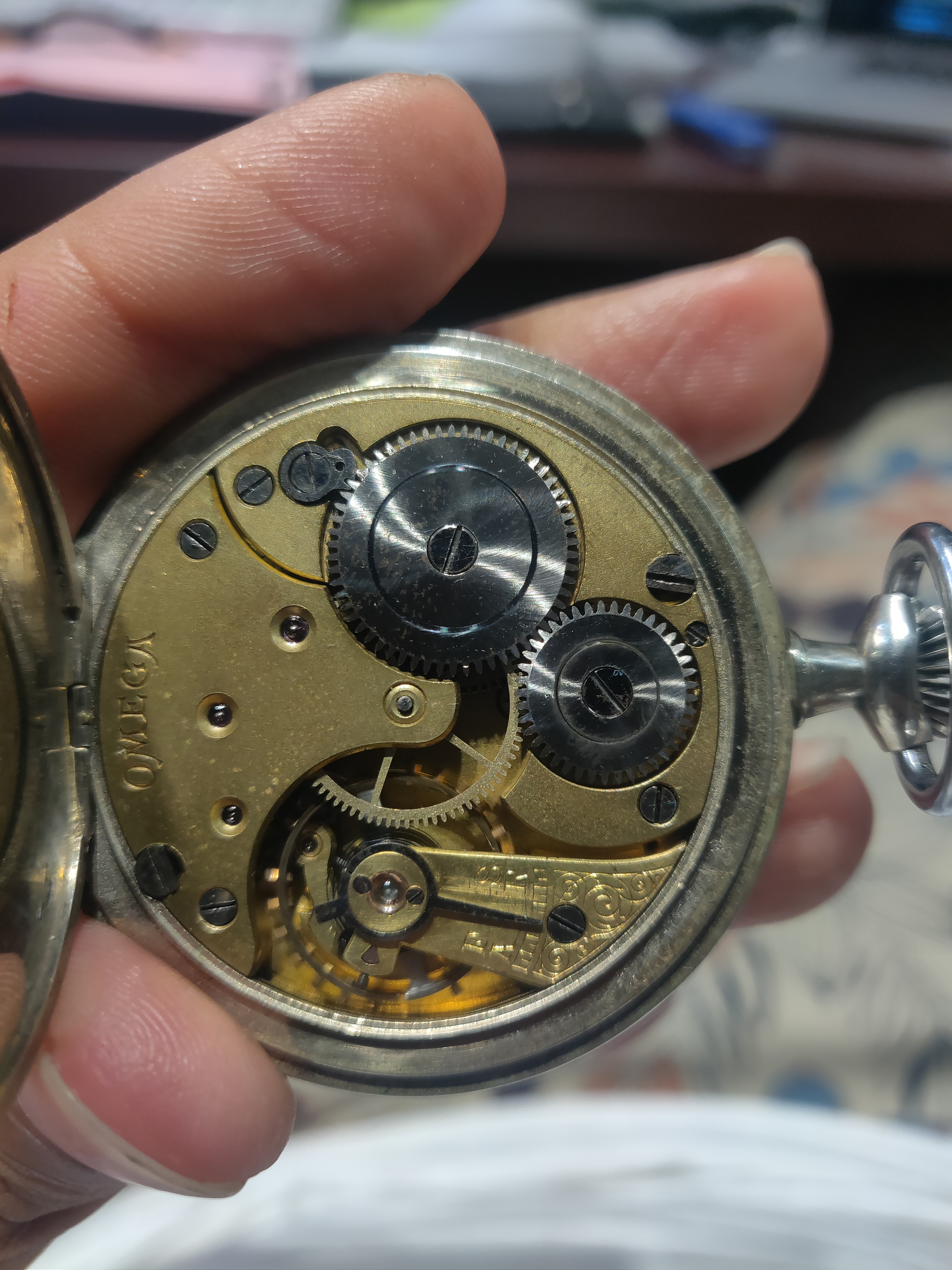 Your case is dated to around 1910 (give or take a year or two). The movement looks to me like a variant of a caliber 19''' LOB (for L茅pine, Omega, B grade) which was the origin of the name of the brand (Omega) and was introduced in 1894.