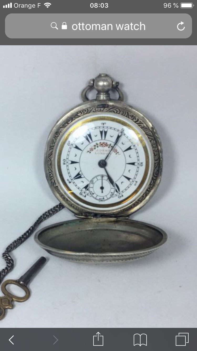 @Syrte is spot on. The dial is referred to as "Ottoman" style and was produced by a number of makers for the Ottoman Empire market and may have been contemporary up to the end of the empire in 1922.