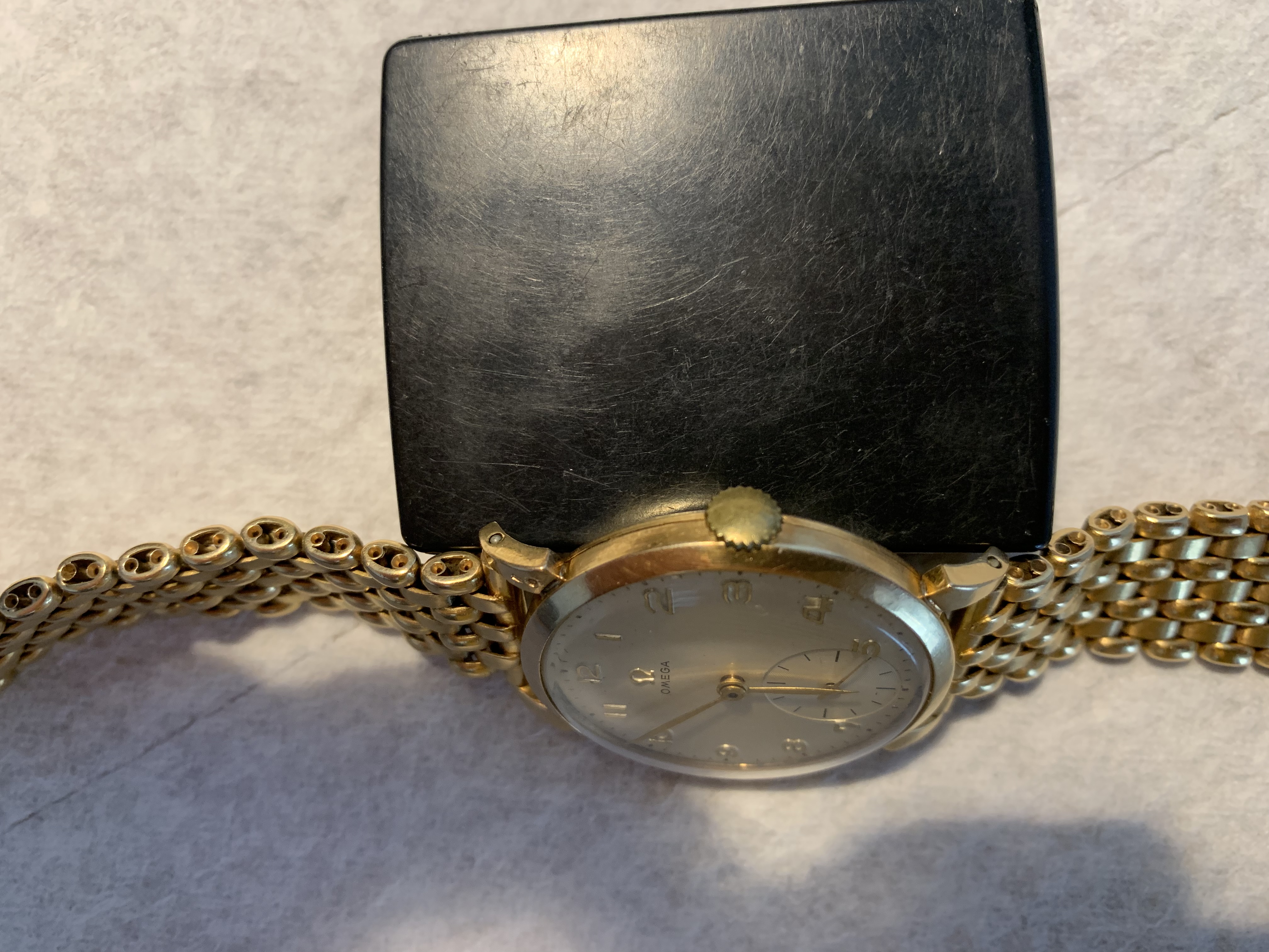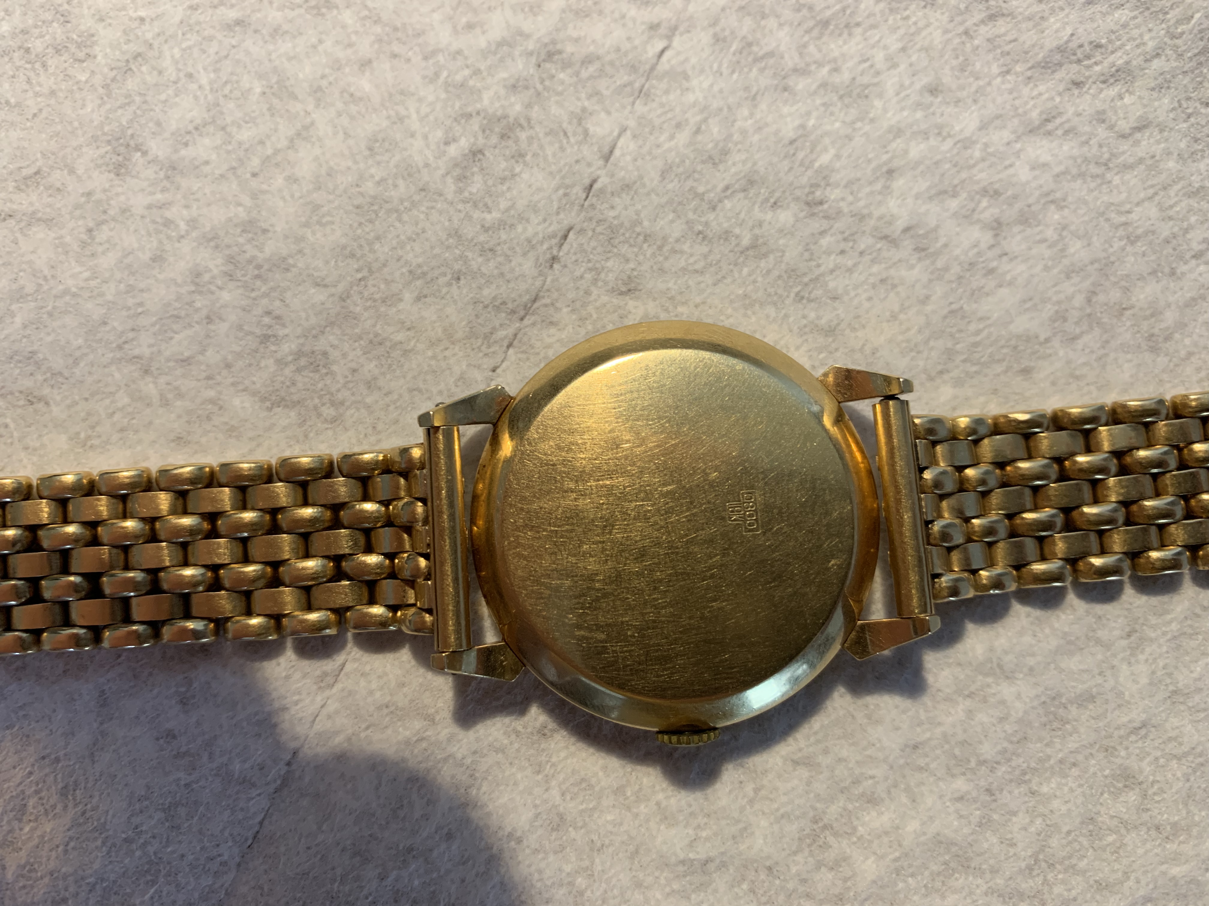 The watch is a 19k gold watch, the crown does not seam to be gold. I am not sure if the bracelet is the original and everyone I can ask is long gone.
