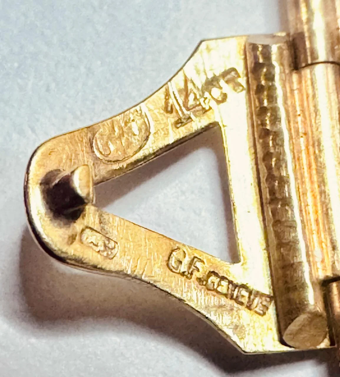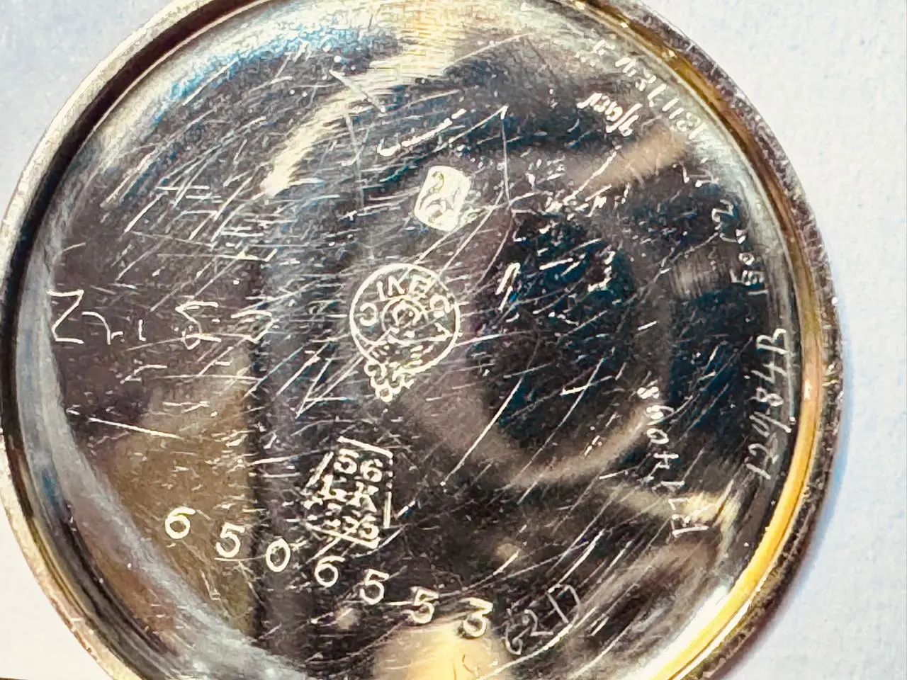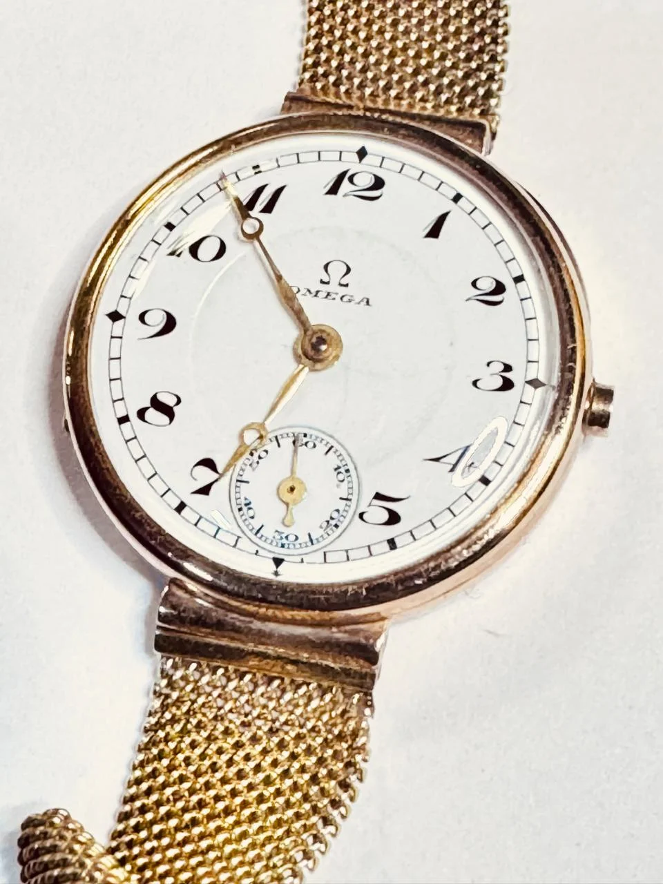 Aproximadamente 1925. Y vale su peso en oro, dependiendo de cuánto pese. Creo que la caja y la correa son de oro macizo de 14 quilates, así que bastante. El movimiento también. Alguien seguramente lo buscaría. ¿Supongo que si se desguaza la caja? ¿800-1000 libras? ¿Movimiento? ¿250-450 libras? Si quieres venderlo, yo empezaría con 1500 libras y vería qué pasa.