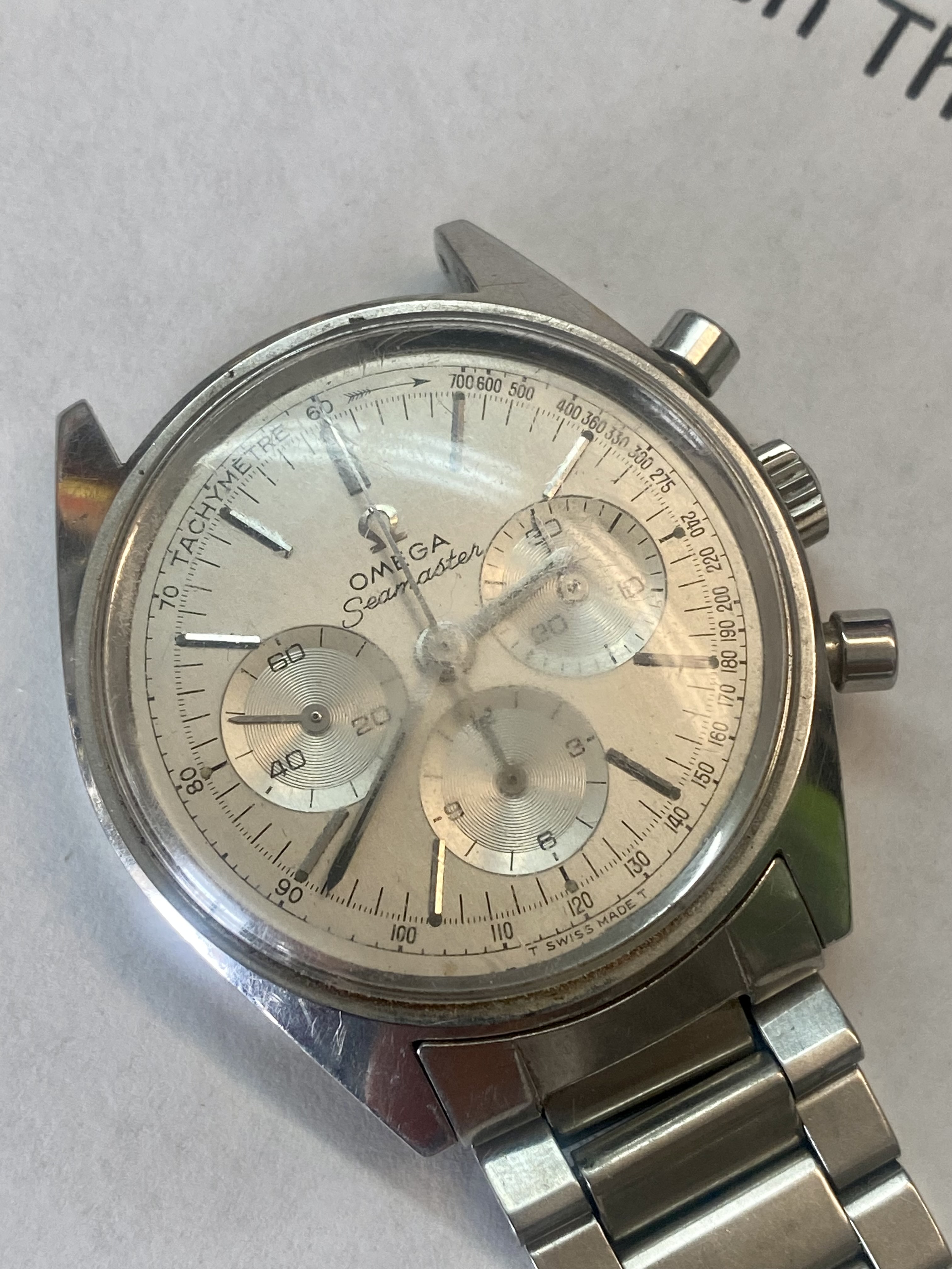 ·Hello! I am still somewhat new to posting here, but as this is THE best place to get info on Omega watches, I had to try. I need help with identification and restoration recommendations. I just picked up this Seamaster chronograph, I believe it is from 1968 and a caliber 861. It looks all original to me- any concerns from the experts? Also, what is the general consensus on restoration? Should I just get it cleaned up as is, or do a complete restore? And from what I understand, restoration means doing everything possible to make it look like it was factory new... even down to specific brushed or polished finishes (any recommendations on who would be a good person to send this to in the USA?). AND it is missing one end link, does anyone have an extra floating around for sale? Any input would be appreciated. THANK YOU!