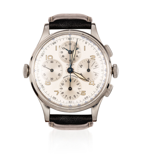 UNIVERSAL AÉRO-COMPAX REF 22414 A STAINLESS STEEL CHRONOGRAPH WRISTWATCH WITH DUAL TIME ZONE, CIRCA 1949