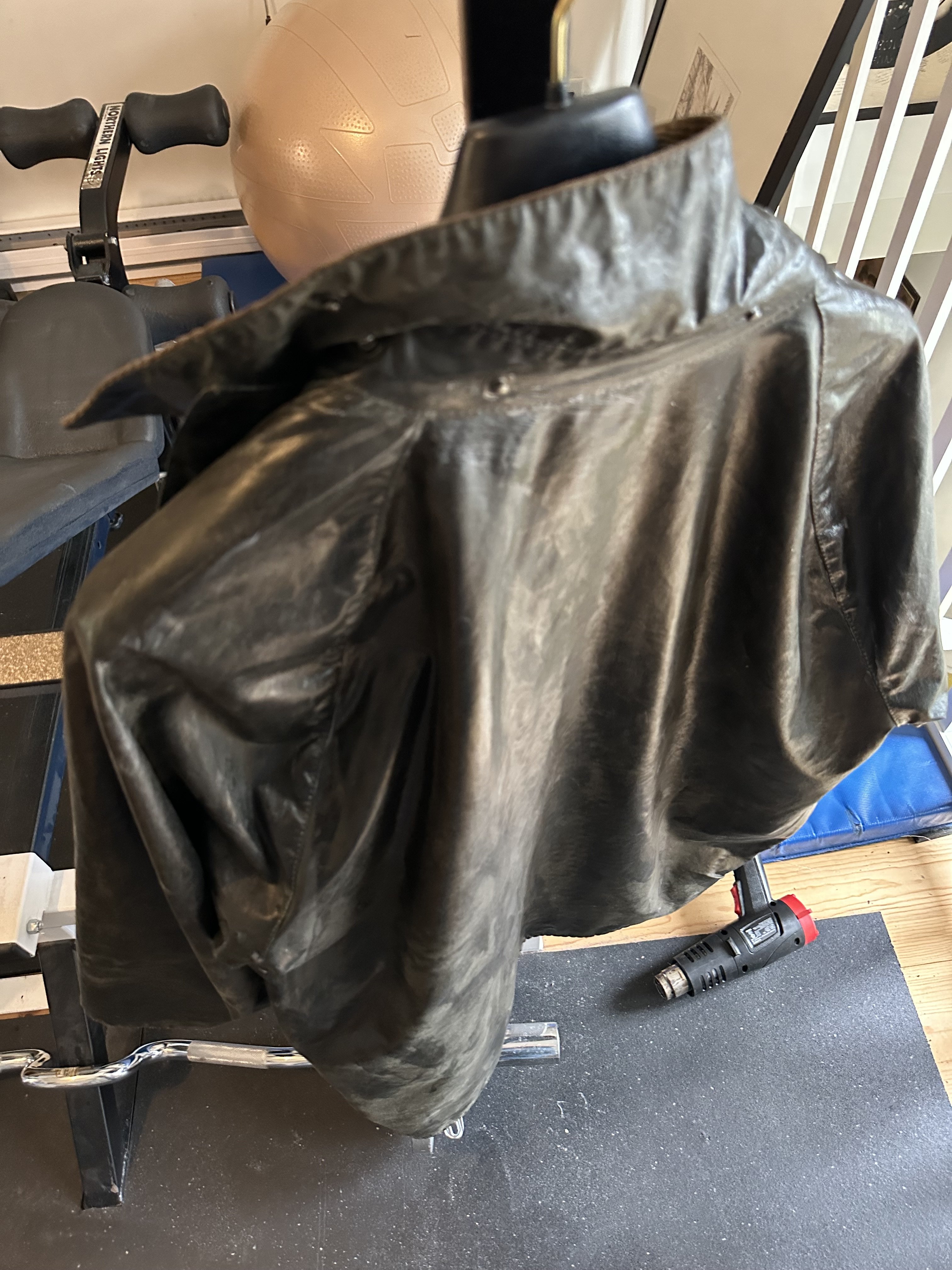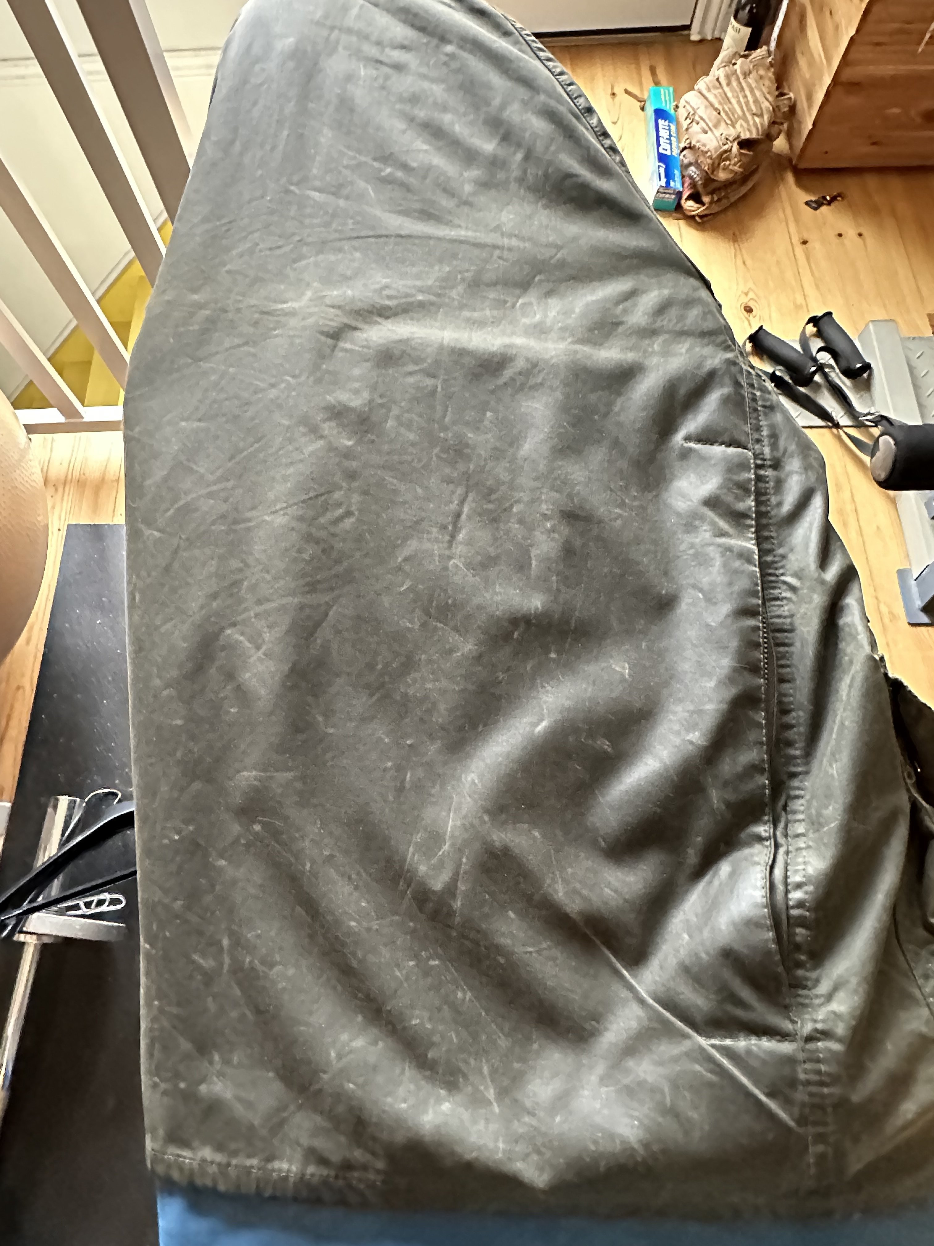 I took the heat gun to it again after a dozen hours to even out the wax. Letting it dry some more and hoping to wear the jacket tomorrow if I need it. This was a fun project and I am pleased with the result. I am sure that a bit of heat gun touch ups will be made once I put it on.