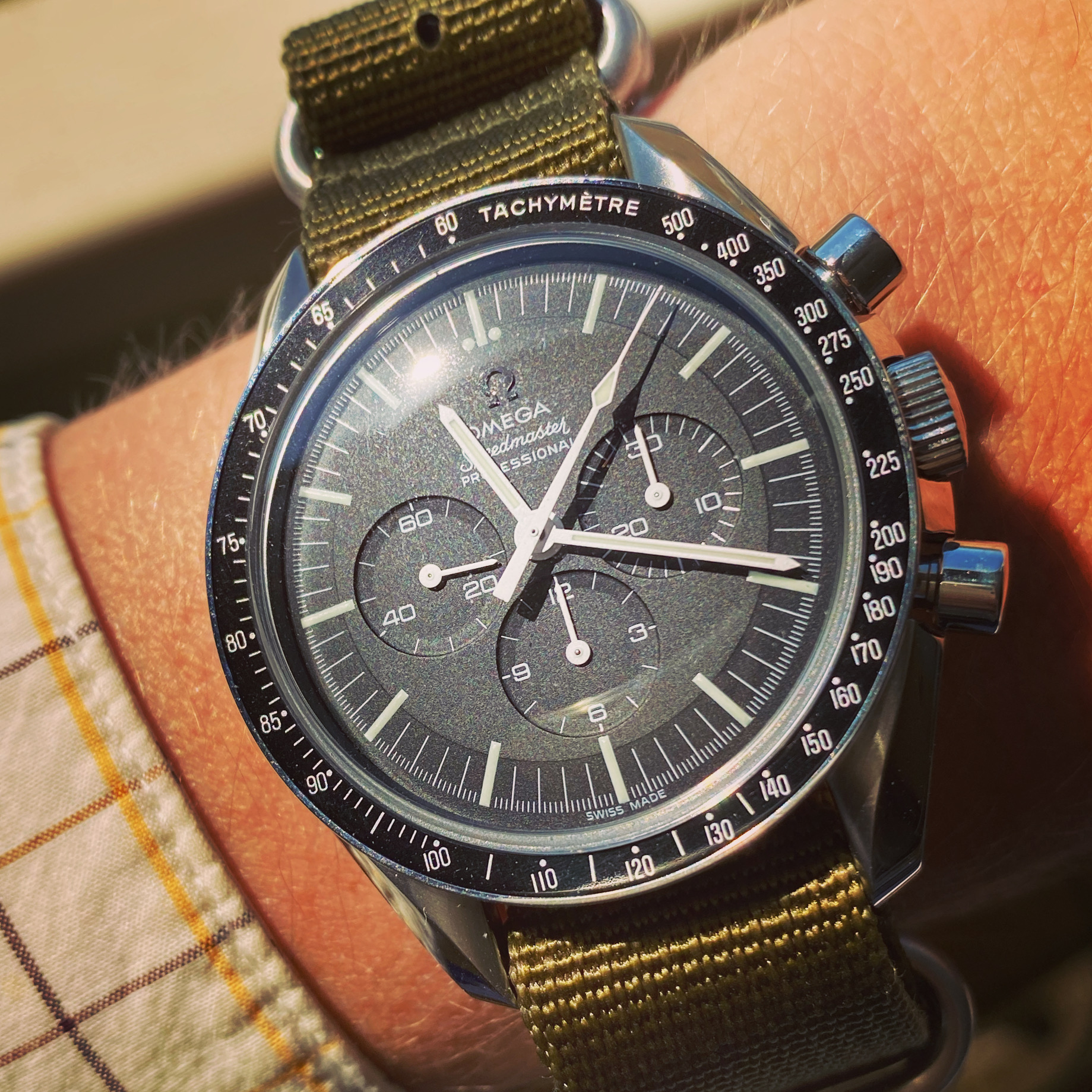 I usually don’t wear natos, but I had to run and the spring bars were already mounted. Even though only my baseplate survived the service, it’s still nice to wear an actual watch