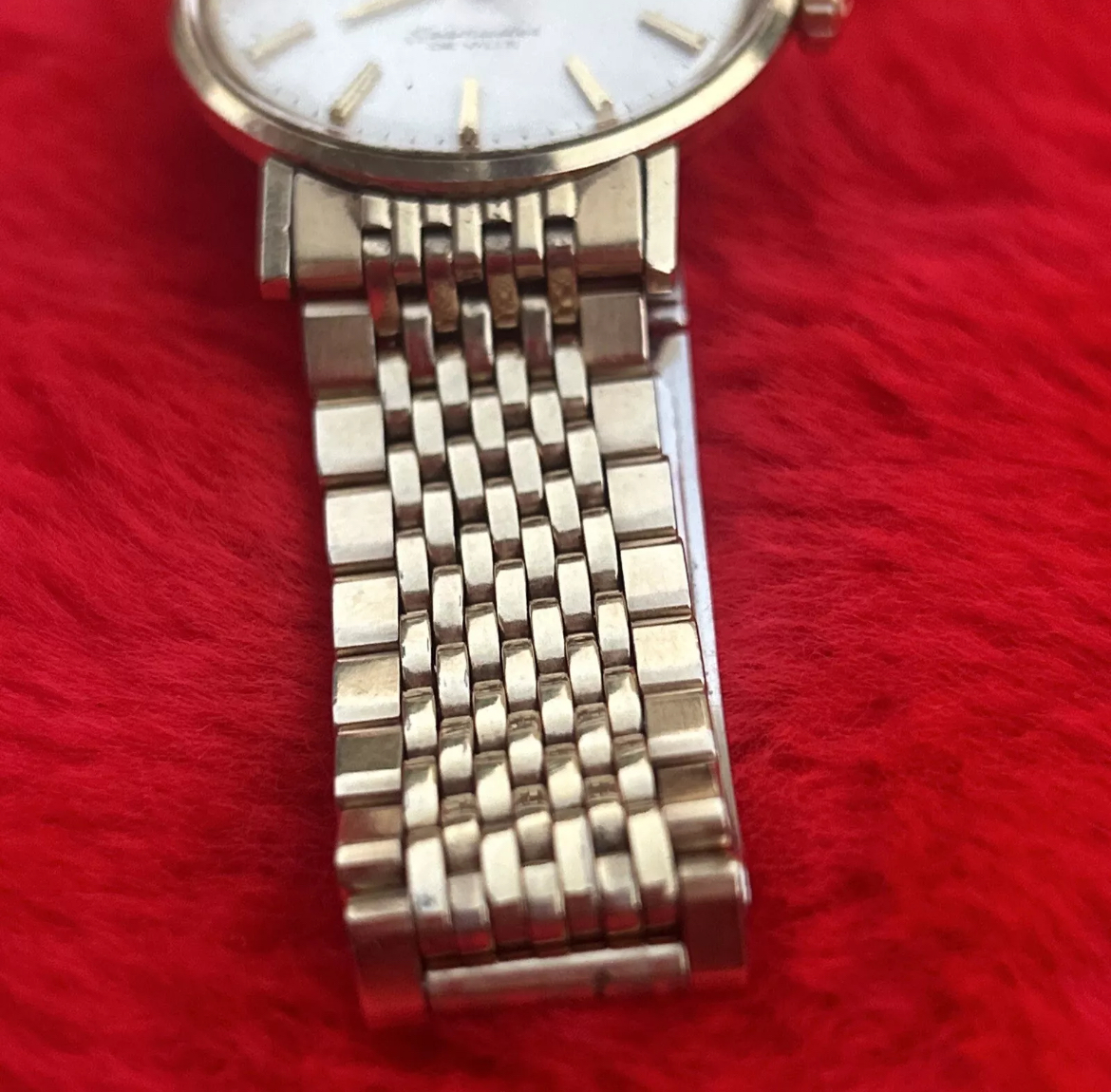 Looks nice. A classic Geneve. It’s not pristine but should clean up well. Indeed you can see the logo on the crystal. Will make a perfect daily wear. Be careful with dings and scratches, gold tends to be more prompt to damages, so wear with good care!