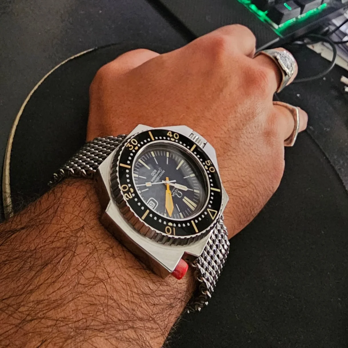 路I fell in love almost immediately. of course that size and that case made it a prologue that could perhaps be worn a few times. I had to understand that. This is a PROFESSIONAL watch. A watch not to go dancing but to be him immersed in the silence of the abyss. The watch was too beautiful. I fell in love with it. I bought it. That day I thought that having it on my wrist was not bad. It felt no heavier than a Submariner. I thought it was enthusiasm that made it pe sare. Today it is four years since I got it and I still think that this model, the legendary PLO-PROF has an absurd wearability for its size that no Panerai, DeepSea or Blancpain has managed. to have at the same size. It is a true professional watch designed to be on the owner's wrist at all times.