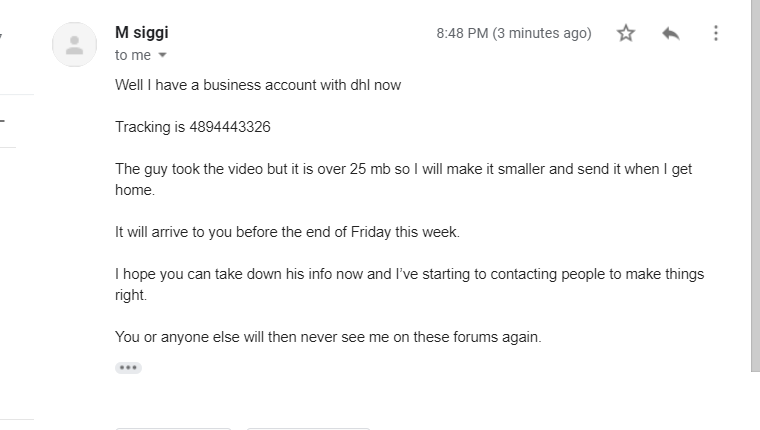 I asked him to take a full video of the watch going into the package and being handed over, which he claims he did.