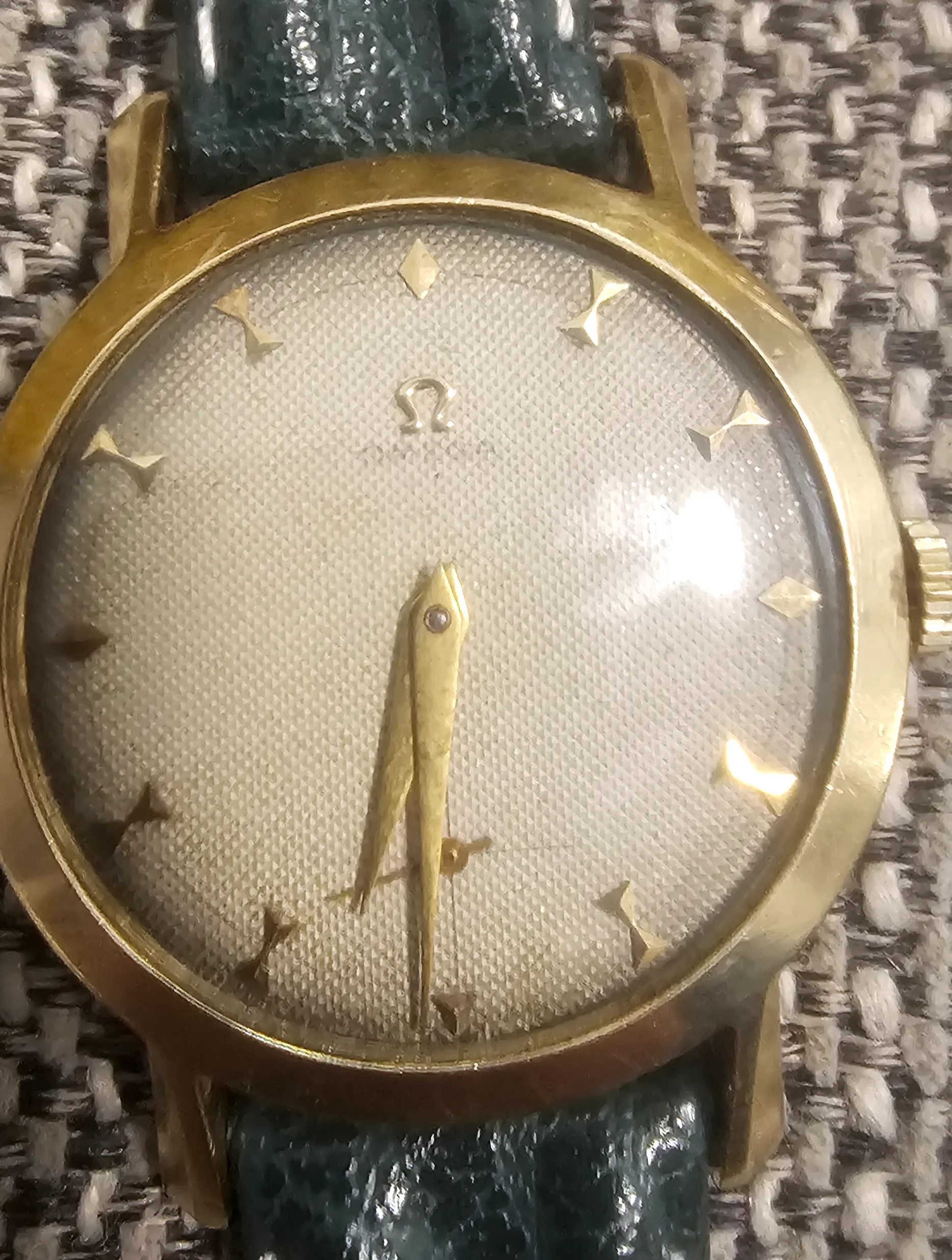 Its an odd little piece with the fancy lugs, honeycomb dial, with 18k indicies and logo.