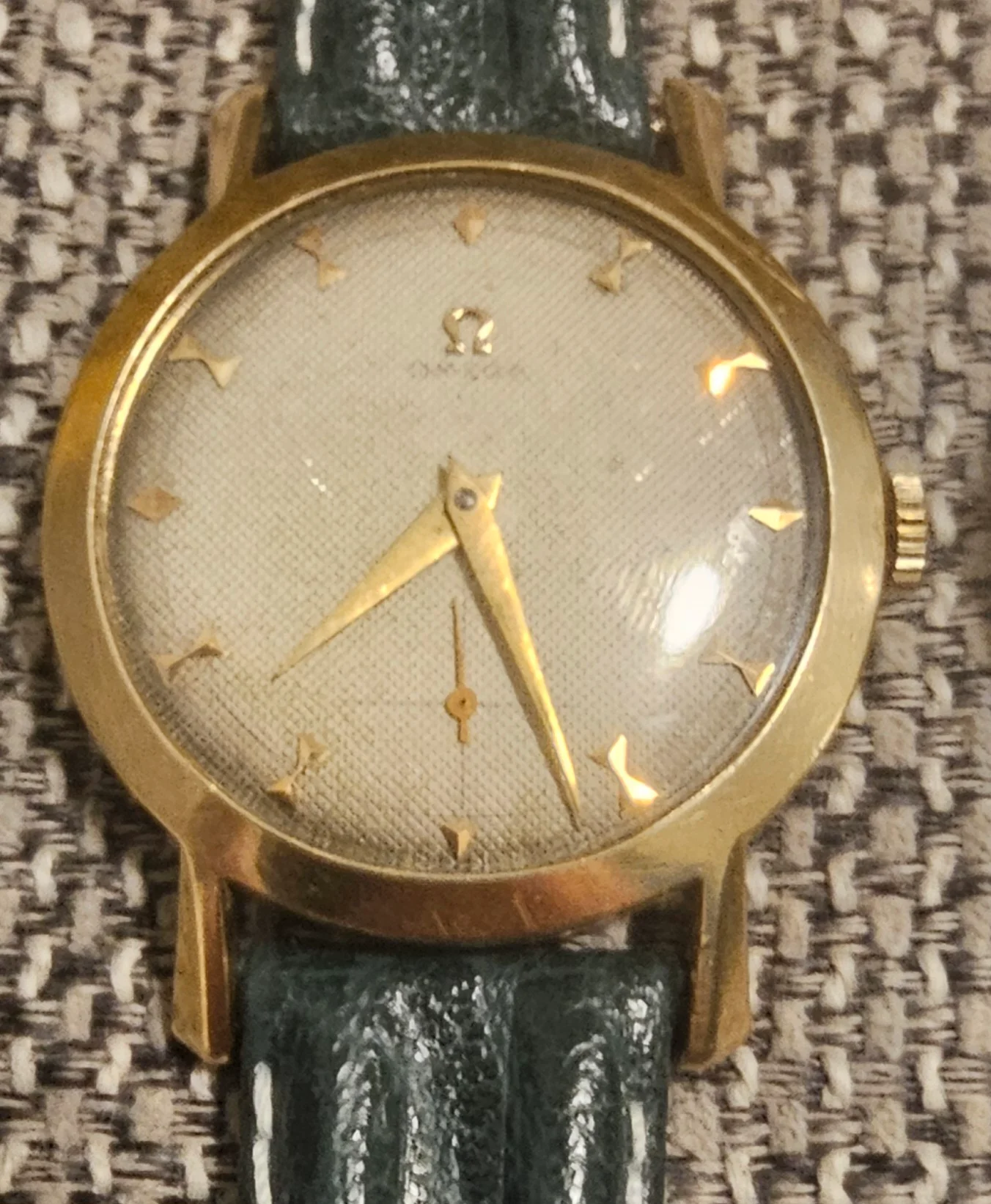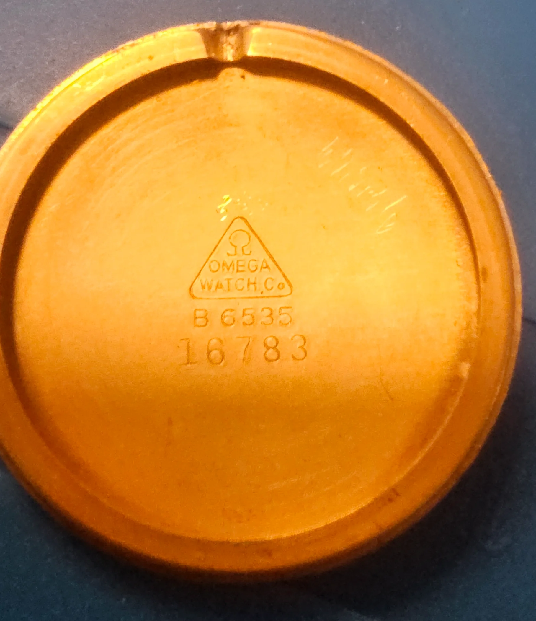 It is a solid gold Omega "something or other" with reference number B6535 and serial number 16783. This 33mm 14k case is housing one of the rarer Omega 361 manual wind movements with serial number 11931304.