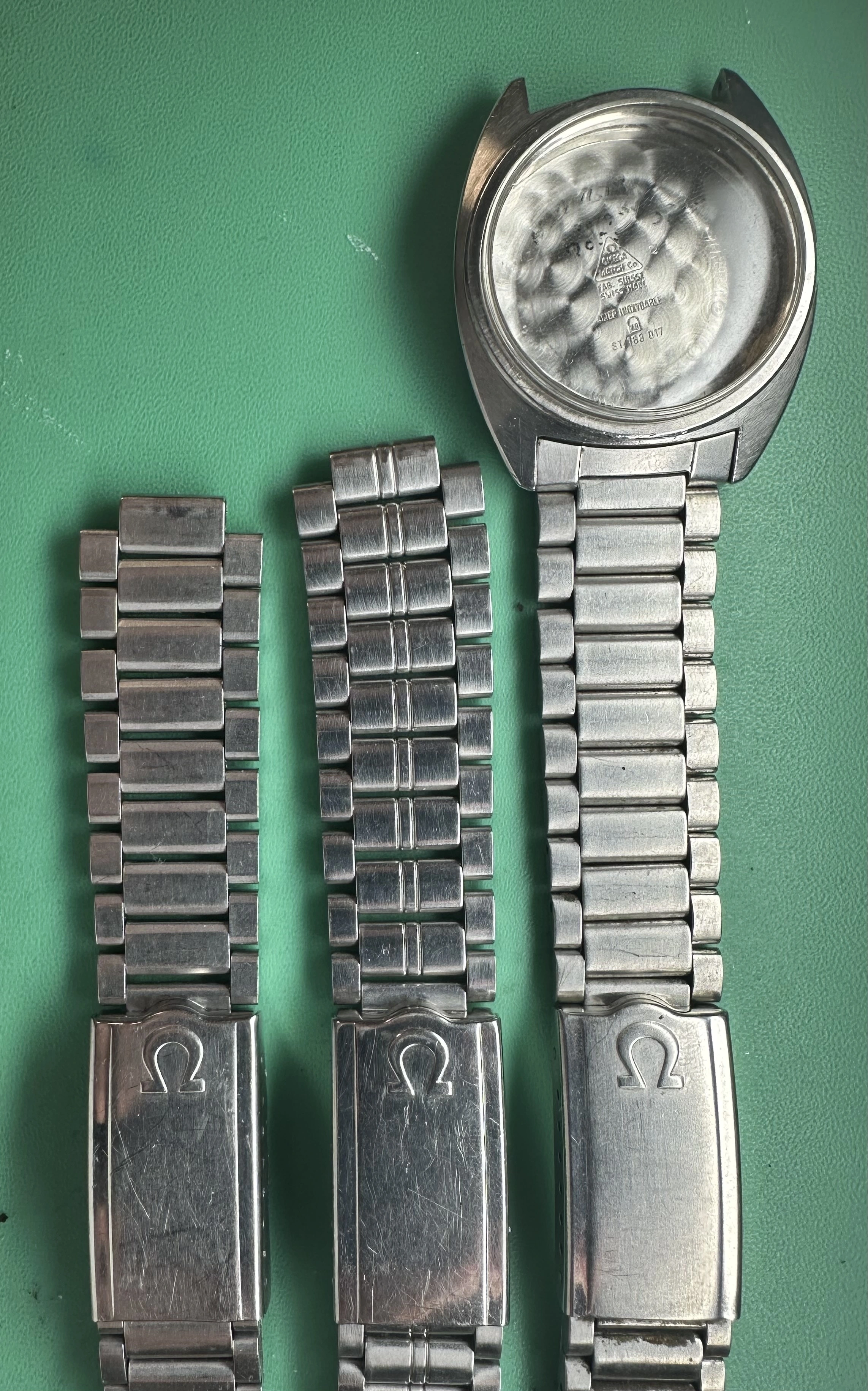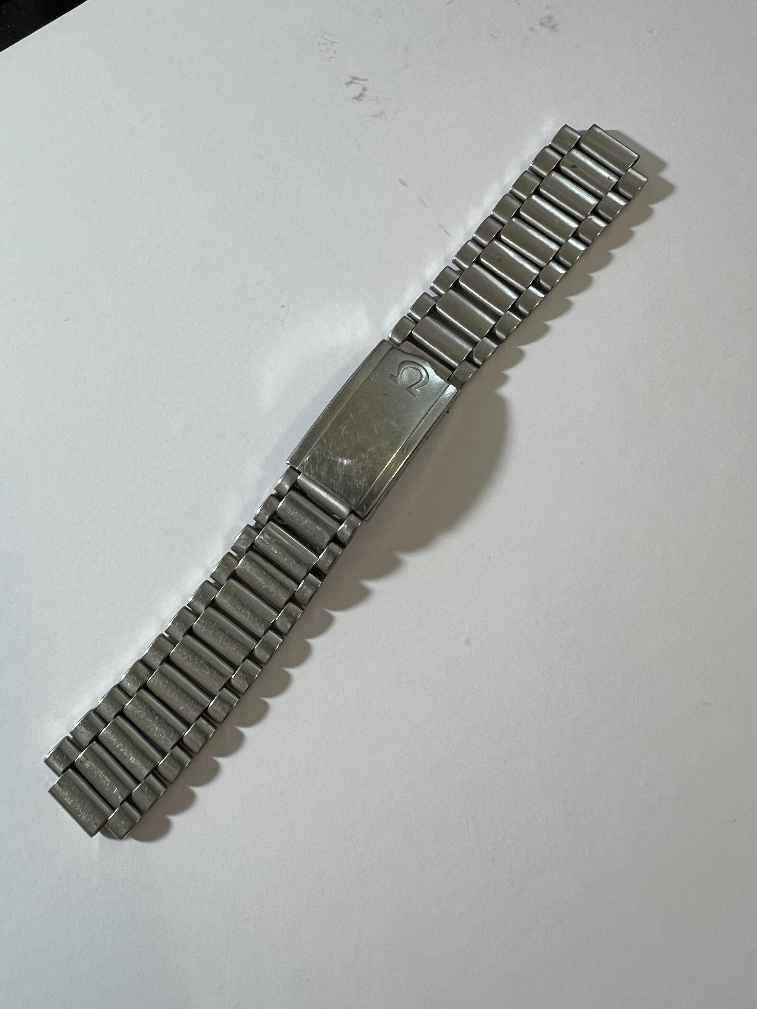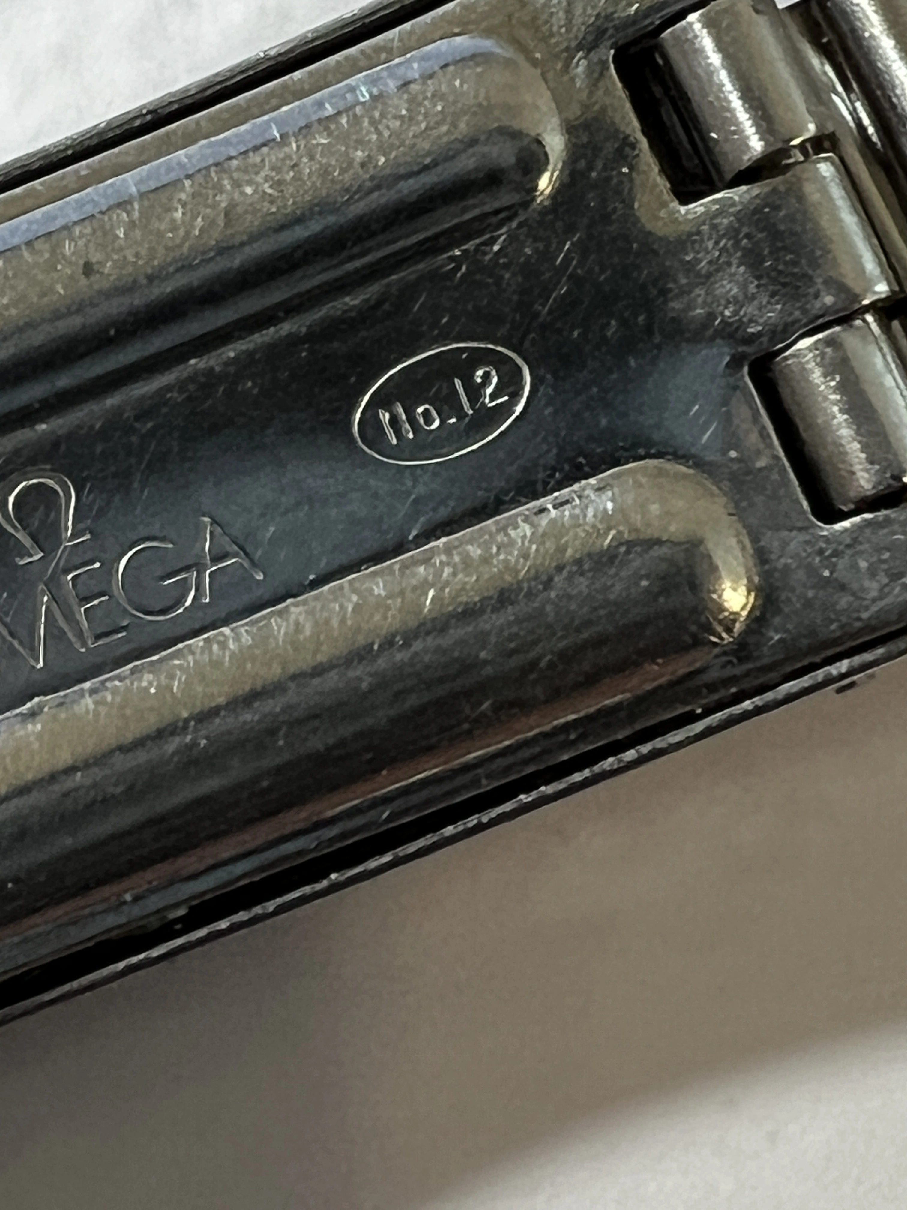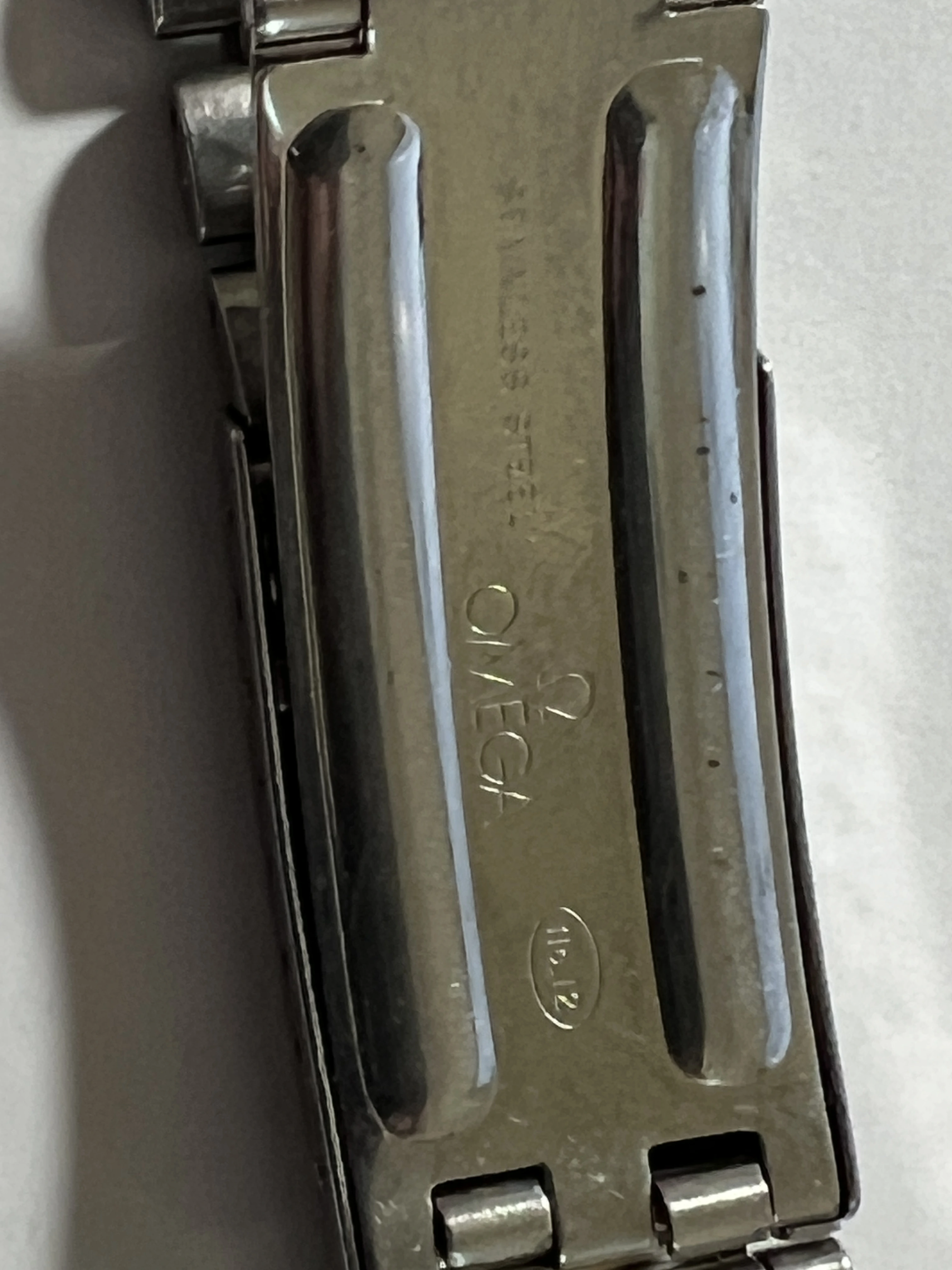 ·I am trying to ID a peedmaster Bracelet I have had for a long time. It is marked on the inside blade of the clasp No. 12 in an oval outline (with the Omega logo and Stainless Steel, and also 2-71 on one end of one of the blades. The Endpieces are 19mm and are only marked 77. Trying to find out what model it is. Looks like it was made in Second quarter 1971, I think. Any help would be appreciated!