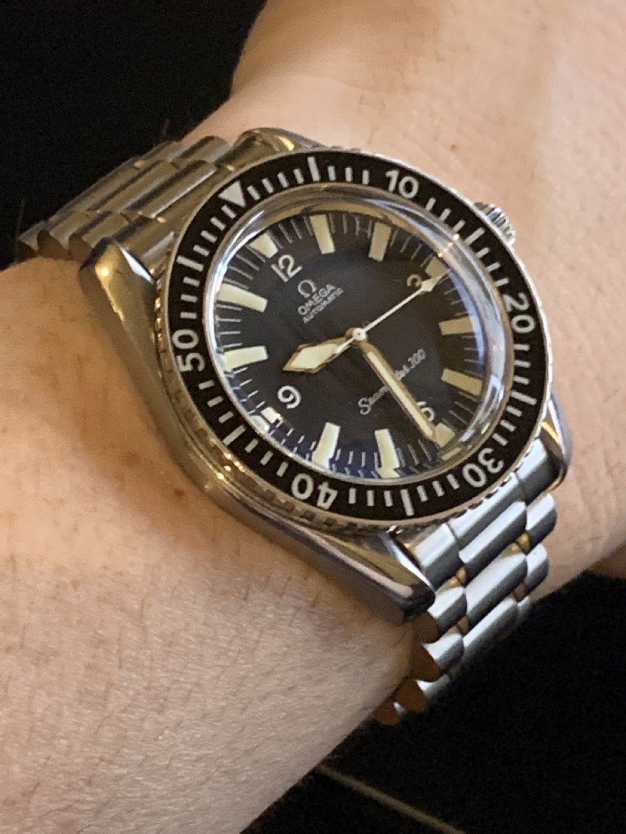 The bracelet is not original to the watch. Forstner sells bracelets that will fit this watch for a reasonable price. You need 20mm. I like the 1450 Speedmaster bracelet on the 300. The original bracelet would have been a 1039 flat link or 1116. You can also buy an 1171 or Apollo 11 50th flat link bracelet from Omega, but the Omega bracelets will be significantly more expensive than Forstner.