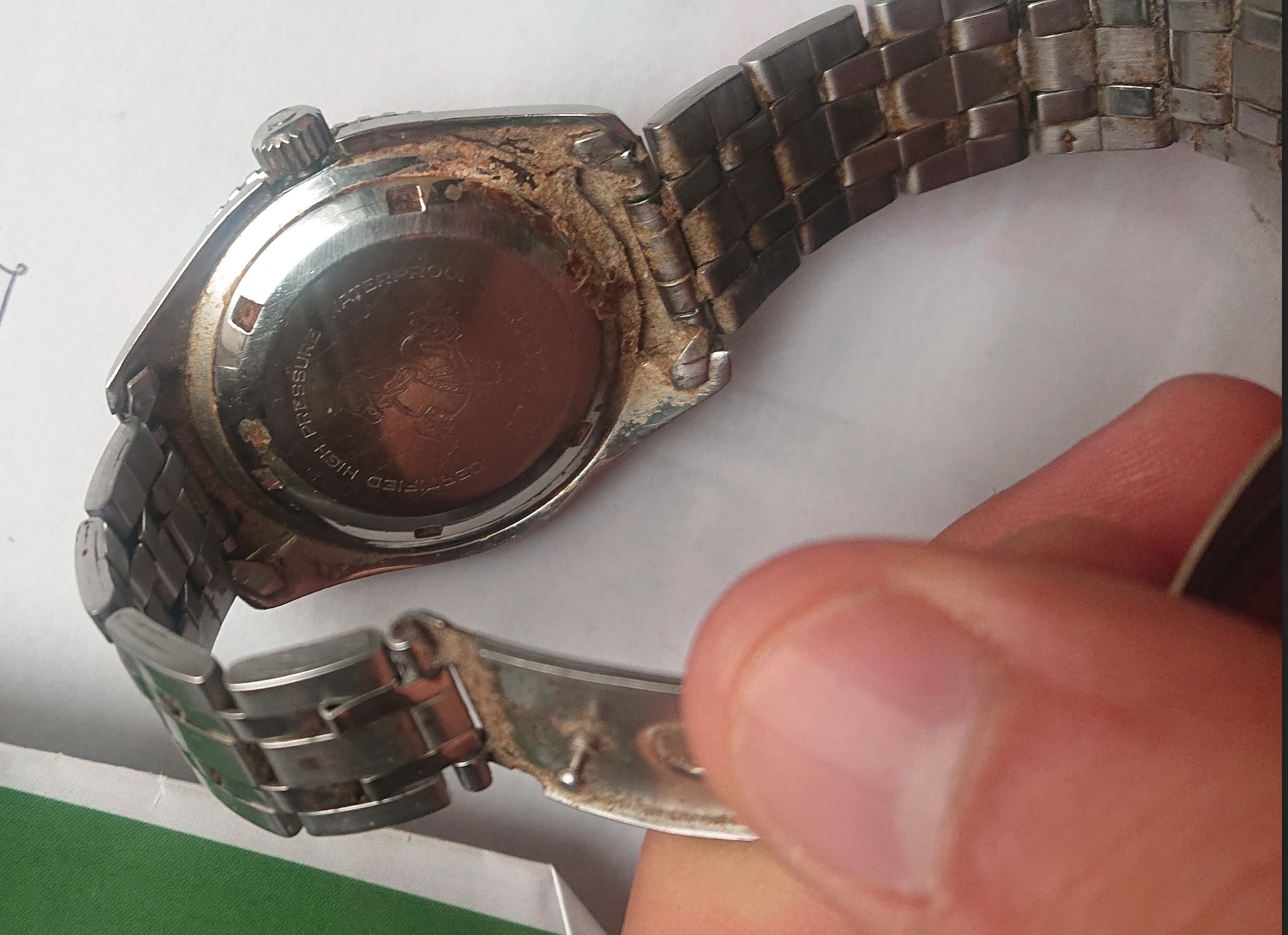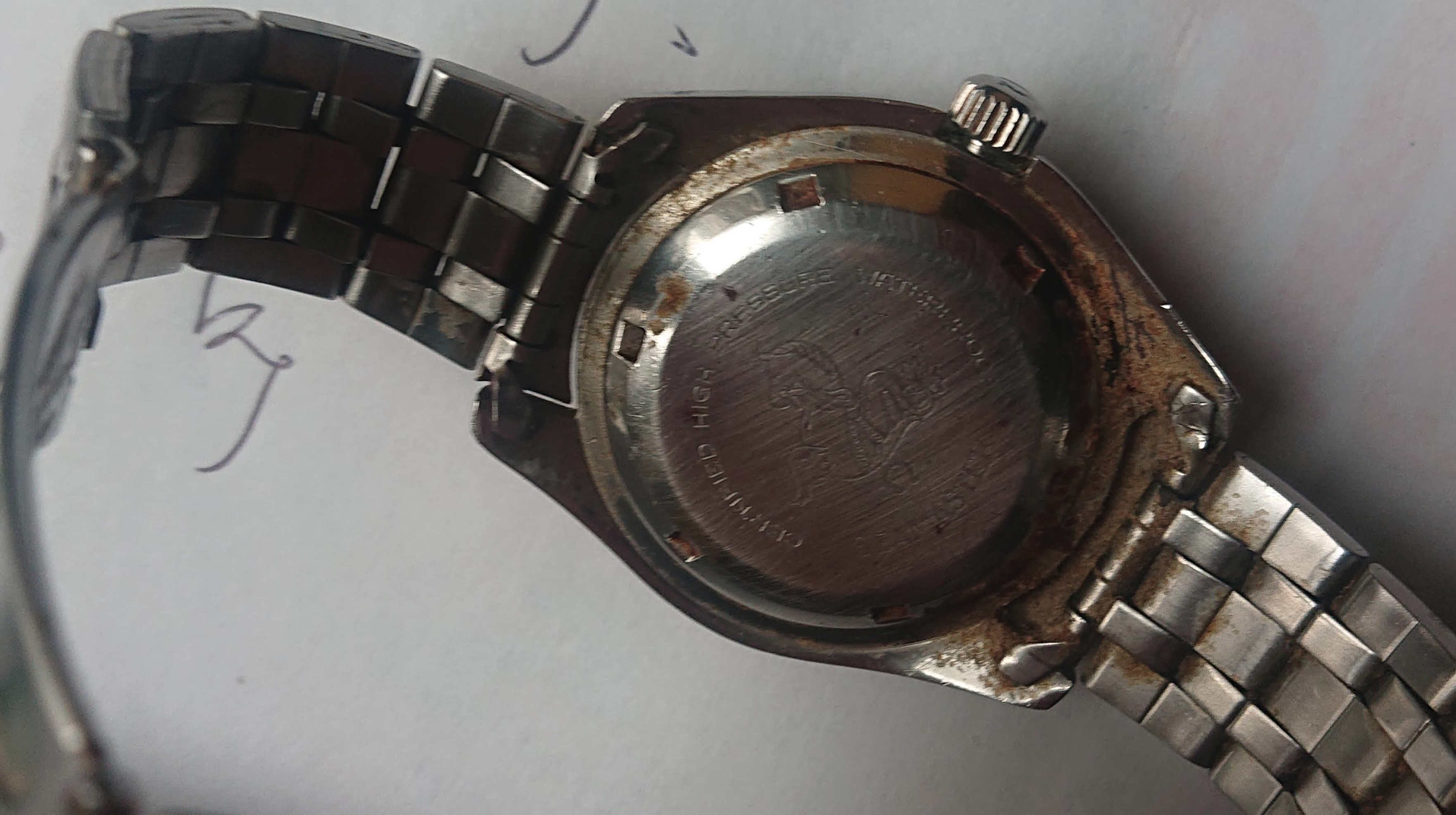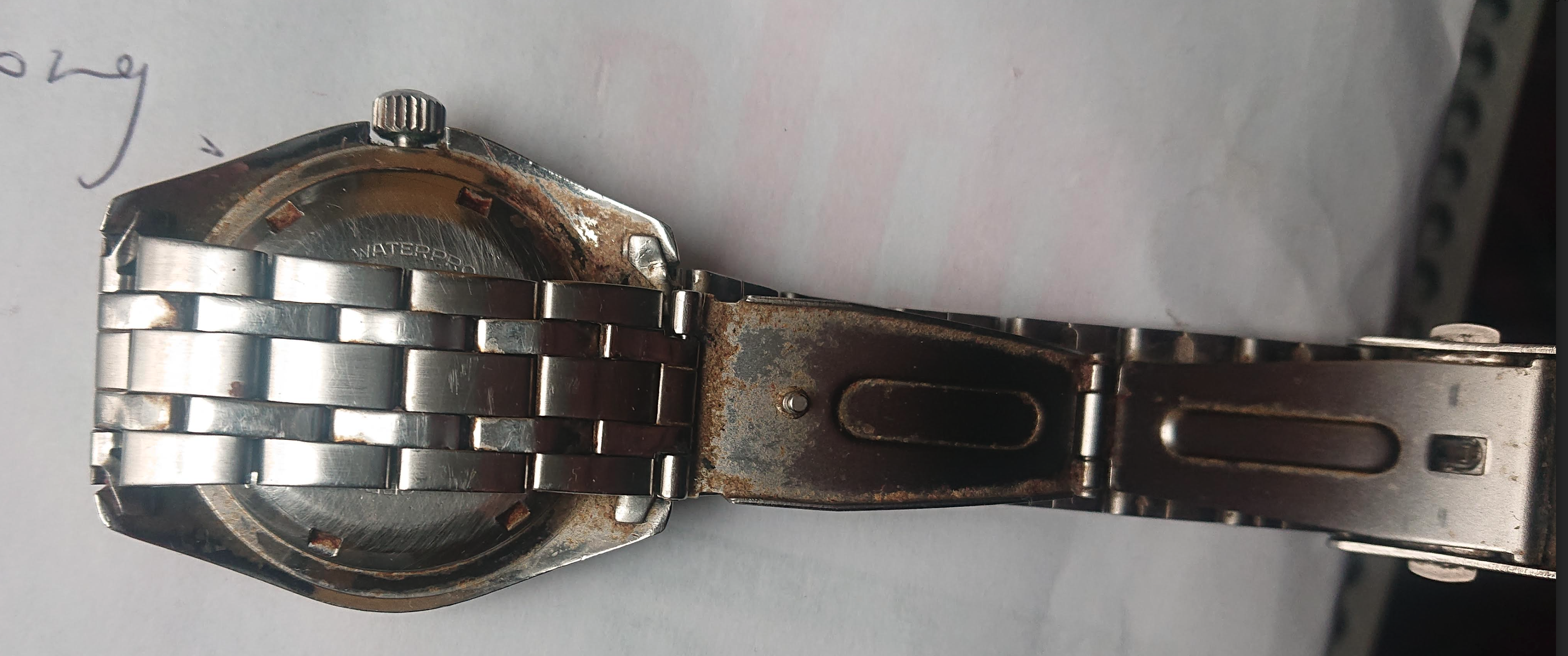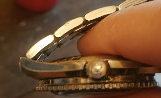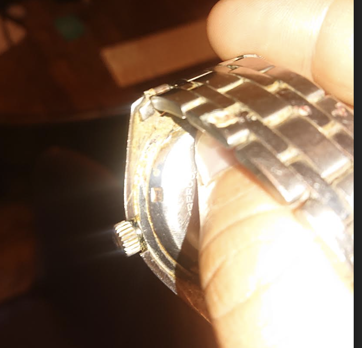Is the crown pulled out in your photo? If not, the crown might be aftermarket (not OEM) and therefore might not offer water resistance.