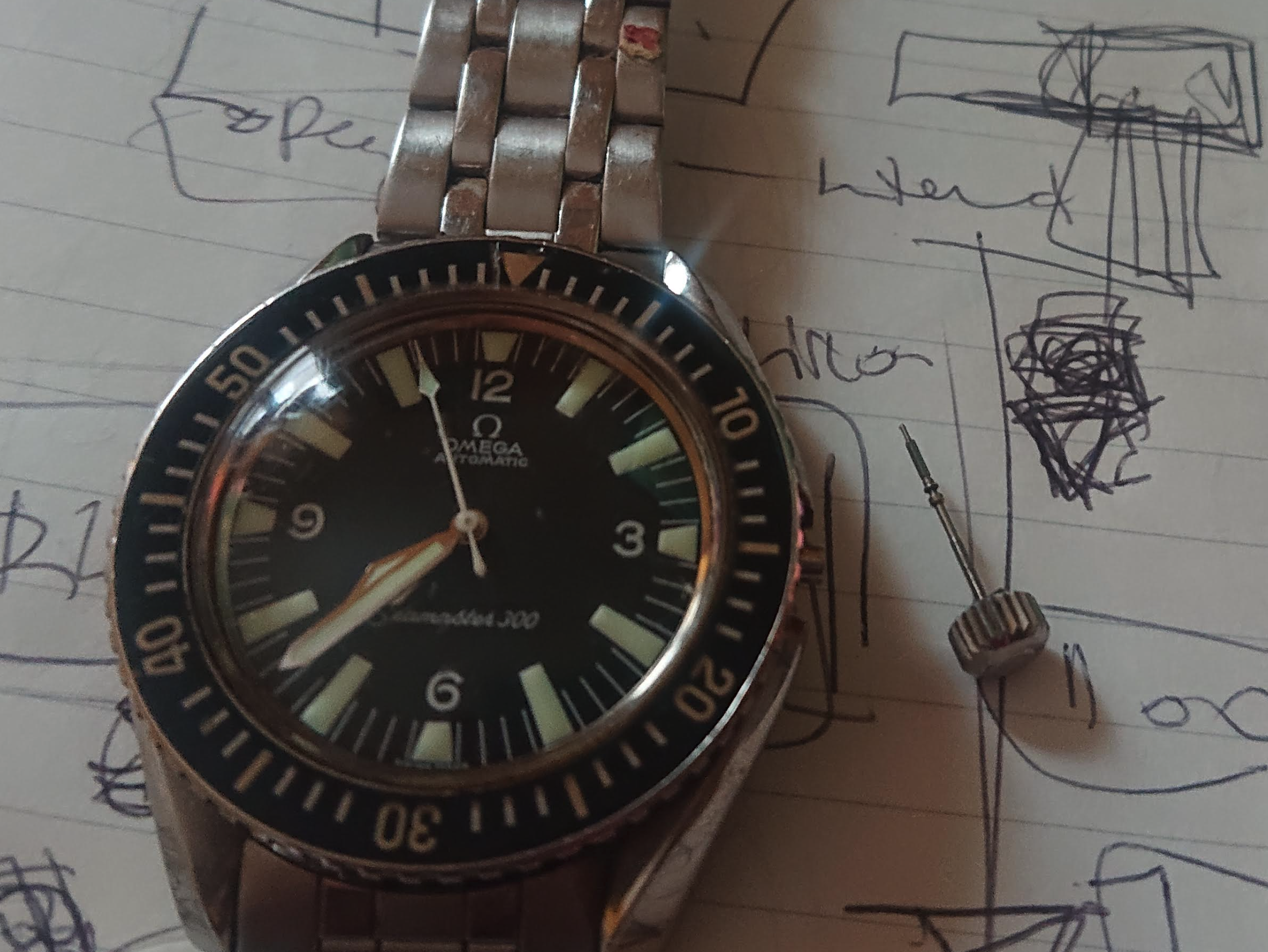 If you don't know the service history, I would assume the rubber gaskets and seals are rotted, and I would not let the watch come in contact with any water until you have all the rubber seals/gaskets replaced by a watchmaker and pressure tested. Also make sure that the crown is OEM. Does the crown have an Omega logo on the side? There were two crowns for this model -- a thin Niad crown and a later, longer screw down crown. The Omega long screw down crown was an update to this model that corrected some issues with the earlier Niad crown. The factory Omega long screw down crown for this model should still be available through Omega as a replacement part.