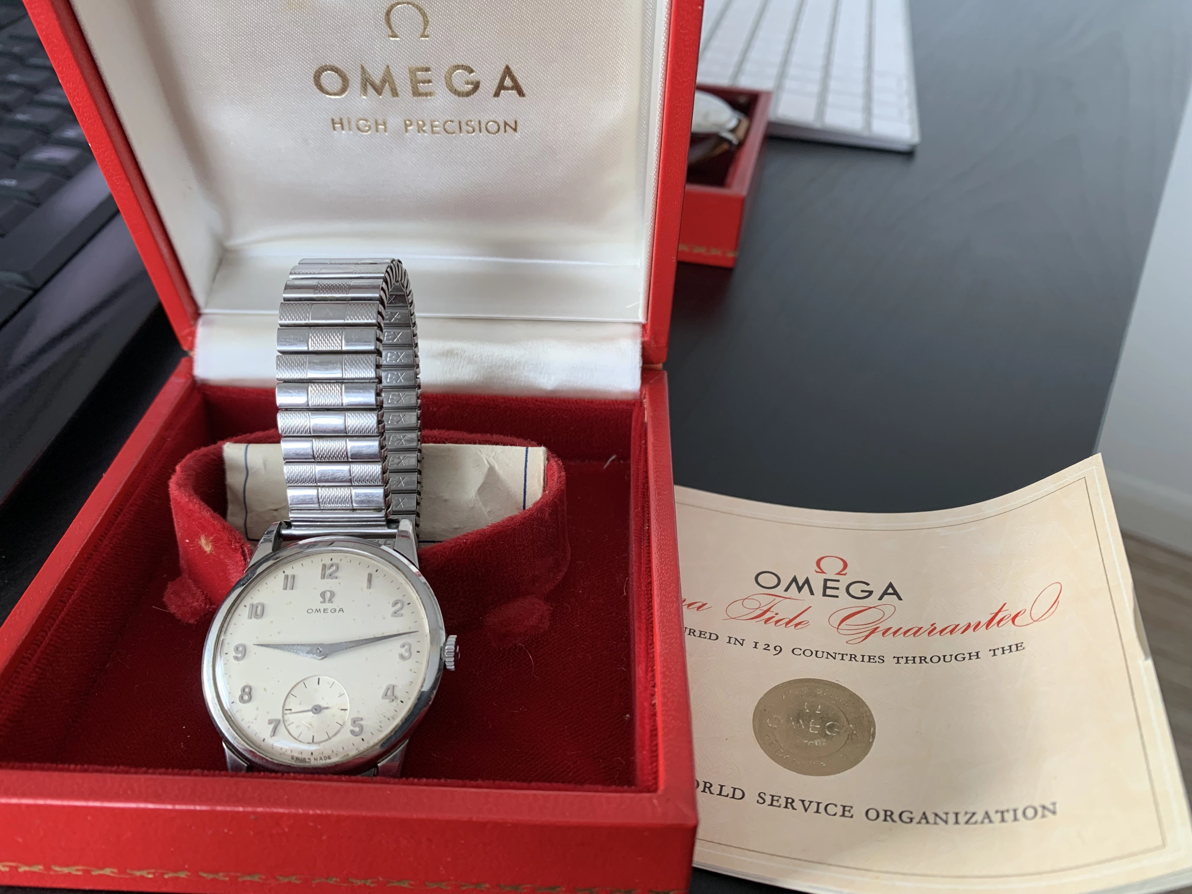 ·My father in law had 2 Omegas but he has now passed. One was his (metal strap) and was purchased in 1959, the other (leather strap) belonged to his father but I do not have the receipt or purchase date for the older watch. Any thoughts or ideas of model for both and age for the older watch please? I'd like to get a little history before I pass them on to his Grandson.