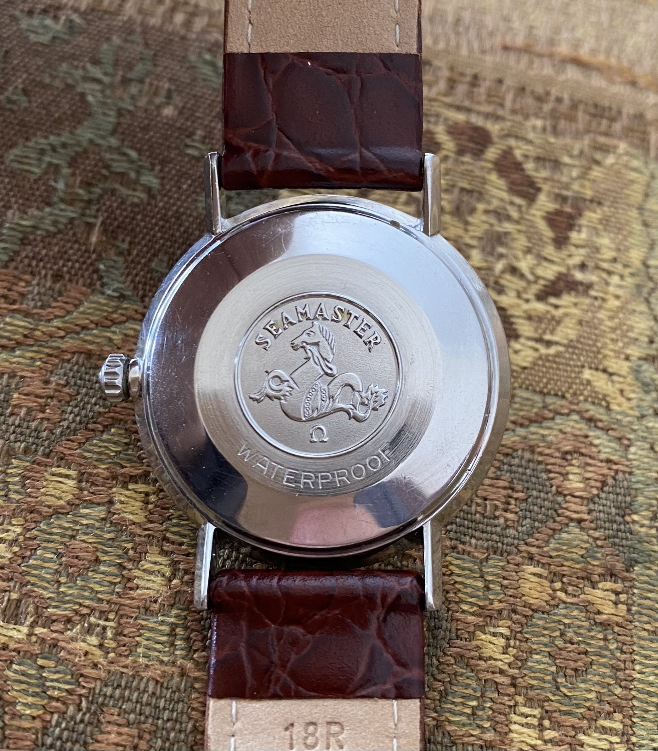 It has an omega crown (appears original), and the dial appears to be Linen.