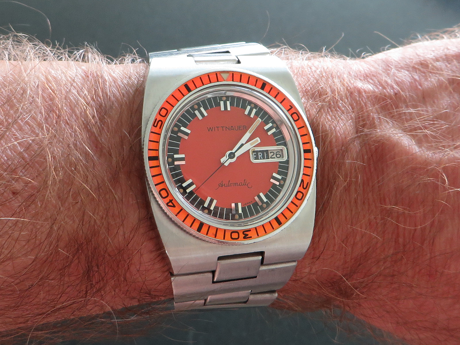 ·I came across this one on Ebay and it just sold. I think @Wlcutter sold or someone jacked his name lol. Is this red dial original? I can't find any history on the skin diver with orange/red variant. I see a couple of images online but not much. Is this watch sold original and I should look for one that matches?