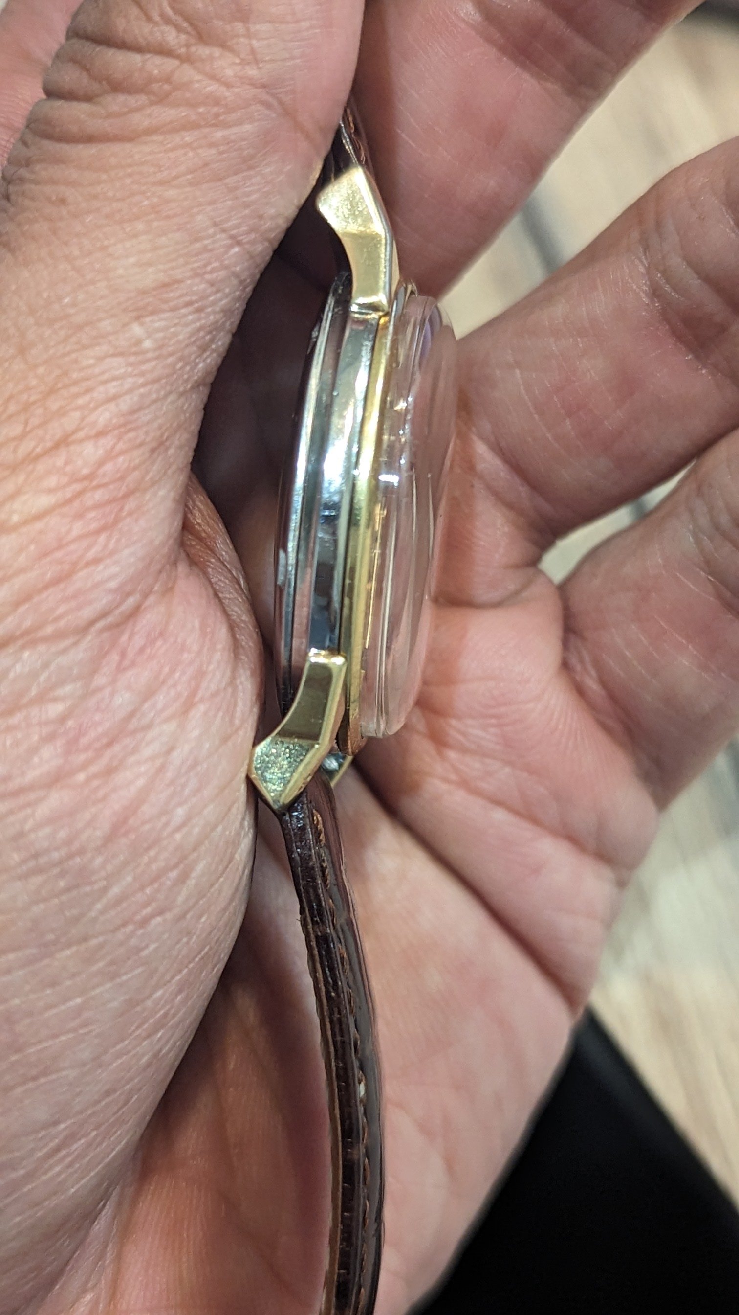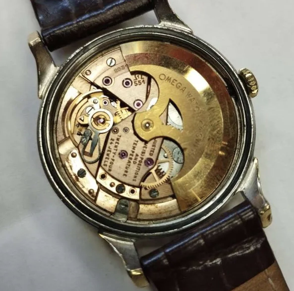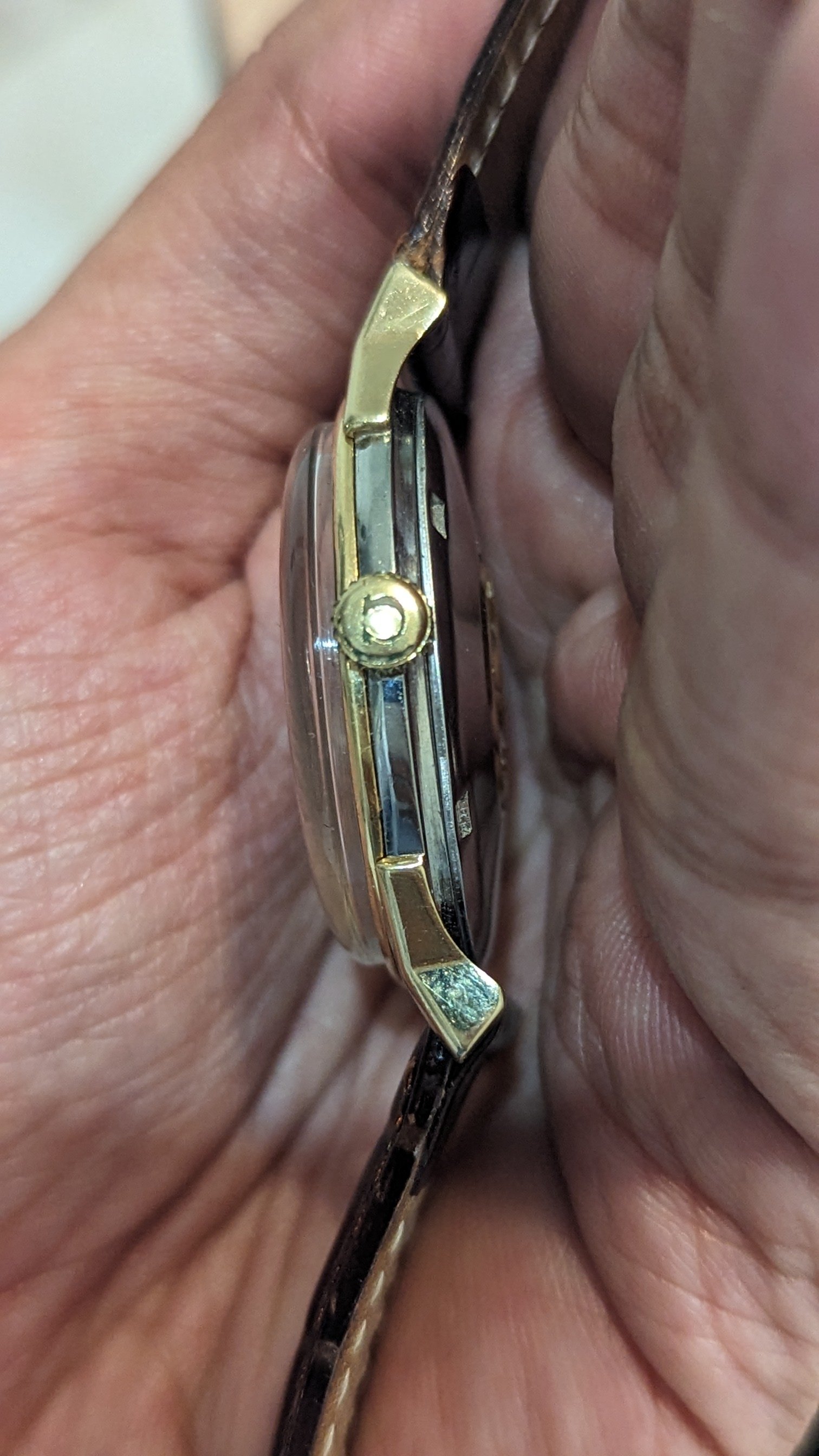 3. The crown is obviously not original and not even an omega crown, somebody carved a weird looking omega sign on it