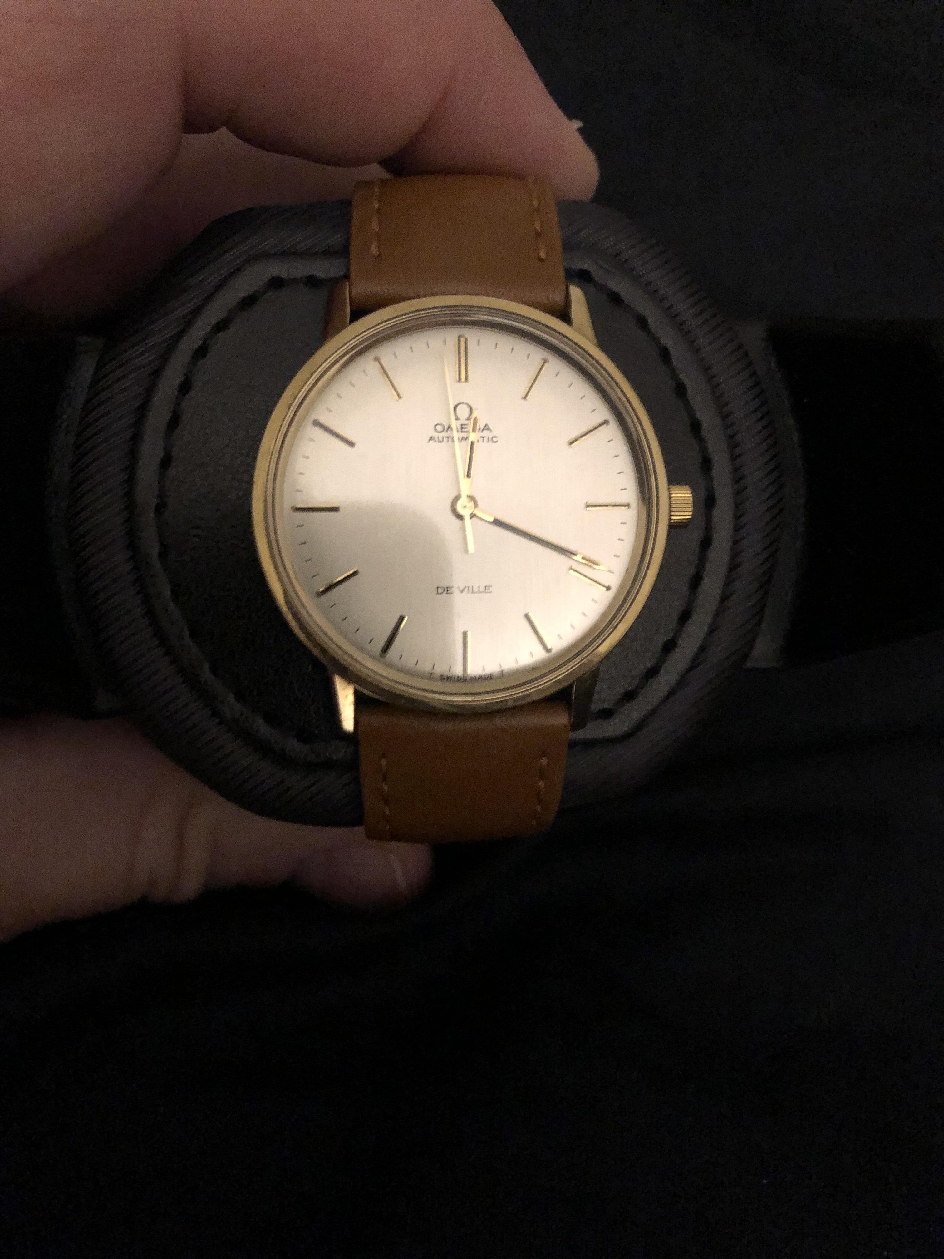 I am new to the forum and trying to find about something about my father’s watch. He gave it to me a few years ago before he died and I never got around to asking him about it. I know that it is original except for the strap, that he bought it in Switzerland circa 1968, and that it is gold filled stainless. I have been unable to find another photo of this watch that is an exact match. The word “automatic” is in all upper case letters. The few other watches I’ve seen with ref 165.008 have lower case letters and a linen dial. The dial looks more like ref 165.0033. My father thought it was a “Swiss market only” watch, but could not remember well. Any help you can give regarding it’s history/provenance would be greatly appreciated. I am not looking to value or sell the watch, but if anyone has information that would value it substantially above the 750USD that other DeVilles seem to be going for, I might need to insure it.