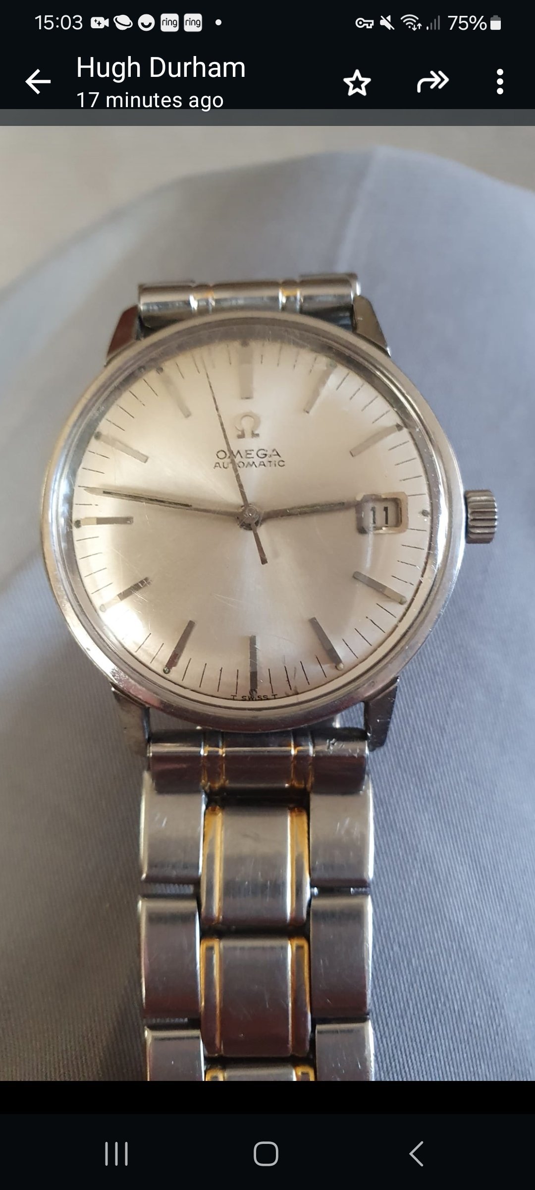 ·Hi, my Father has an Omega watch inherited from his brother in 1971 (its his daily wear watch). I have been trying to identify the model, as it has no model name on the dial, just Omega and Automatic, on a champagne-like colour face with a date box at position 3.