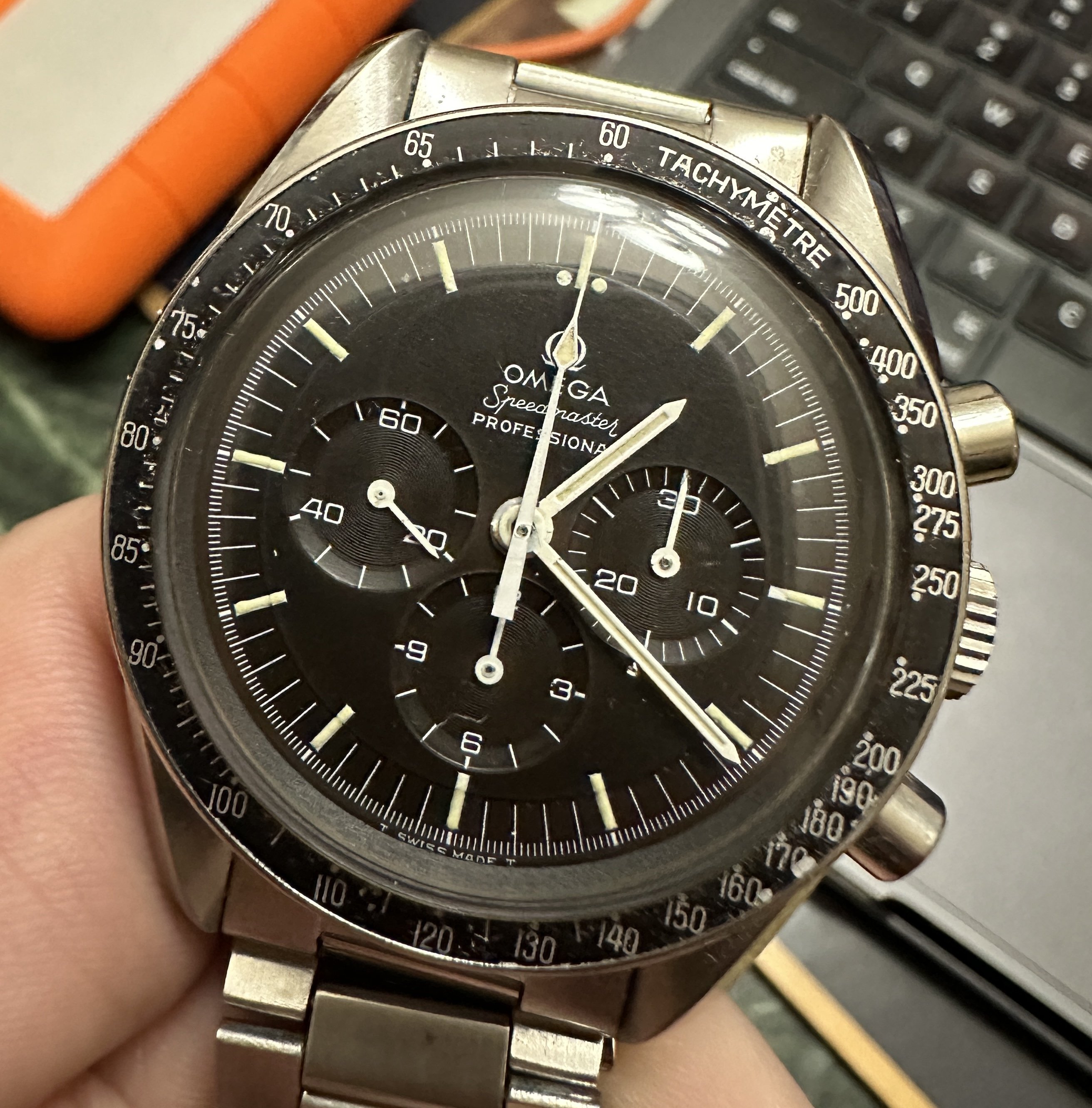 I don't have the tool to open the back (nor would I feel comfortable doing so even if I did) so I can't check the serial number. But based on the above, my somewhat novice guess from reading Speedmaster 101 is that its probably a 145.022-69 (specifically because of the DON bezel + painted logo).