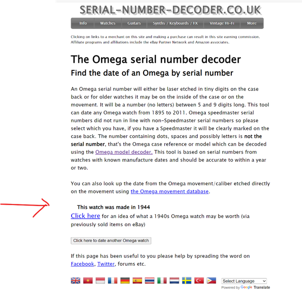 I have done a serial number check which says the watch was made in 1944.