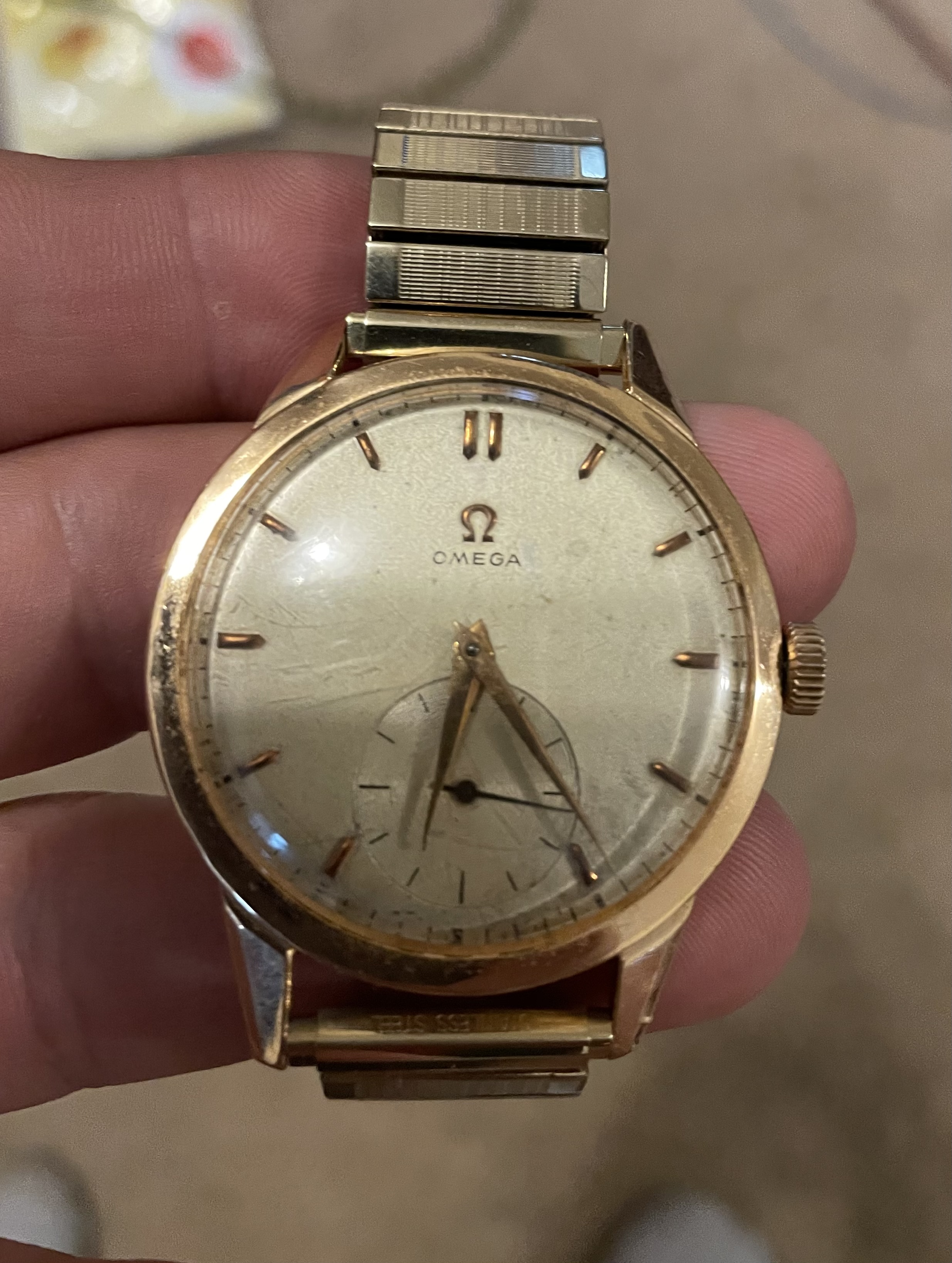 Case does nor appear to be an "Omega" case which typically has the markings on the inside of the back, so there may be no actual reference number to search by. Can we get photos of the inside of the case back and movement, these would help a lot.
