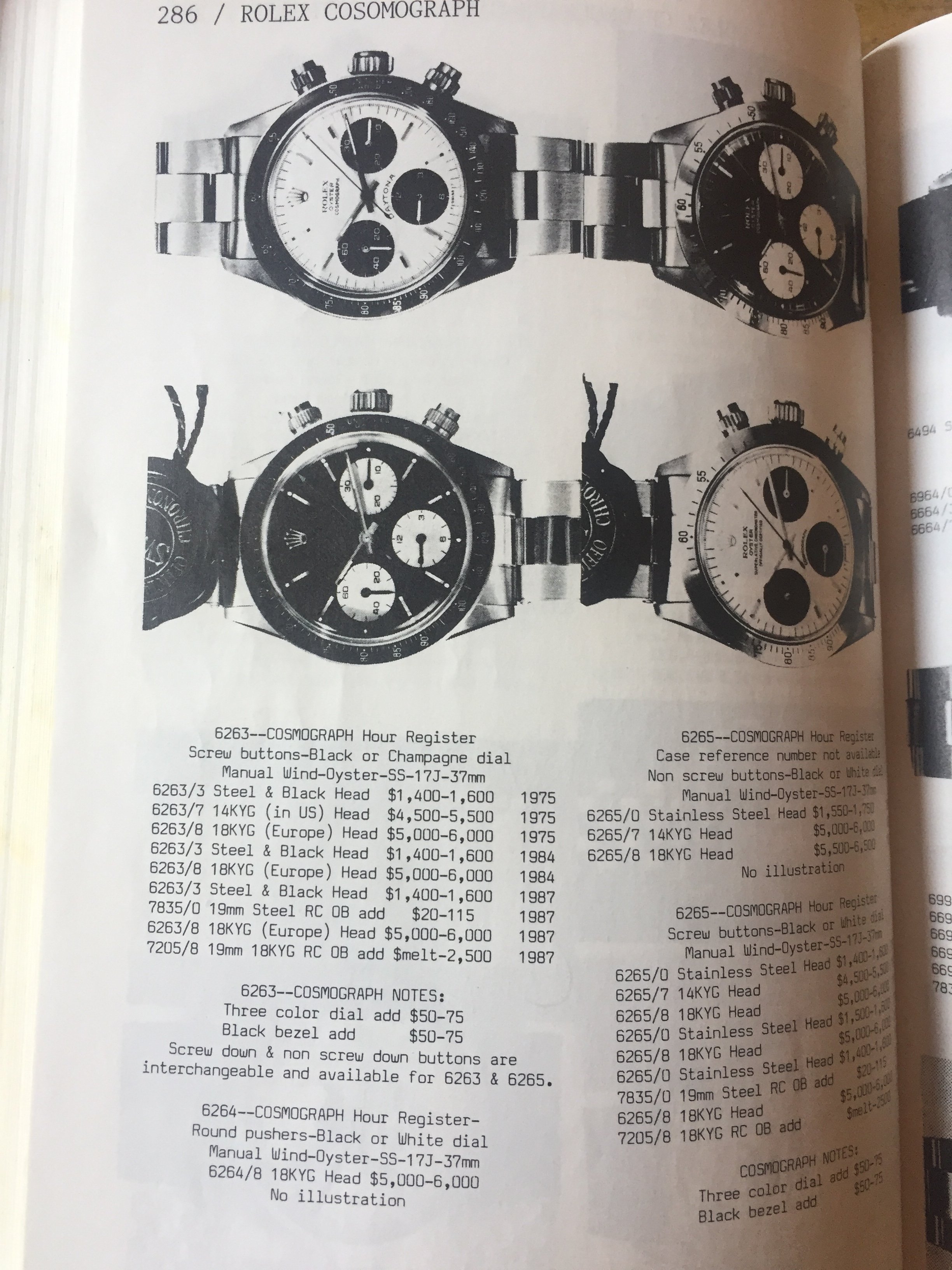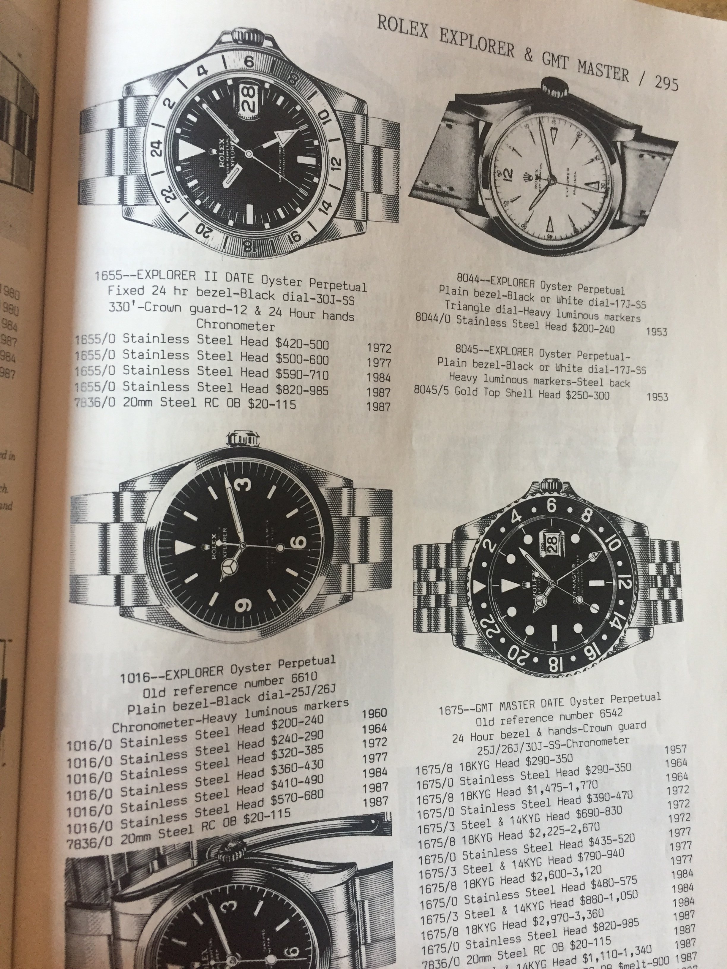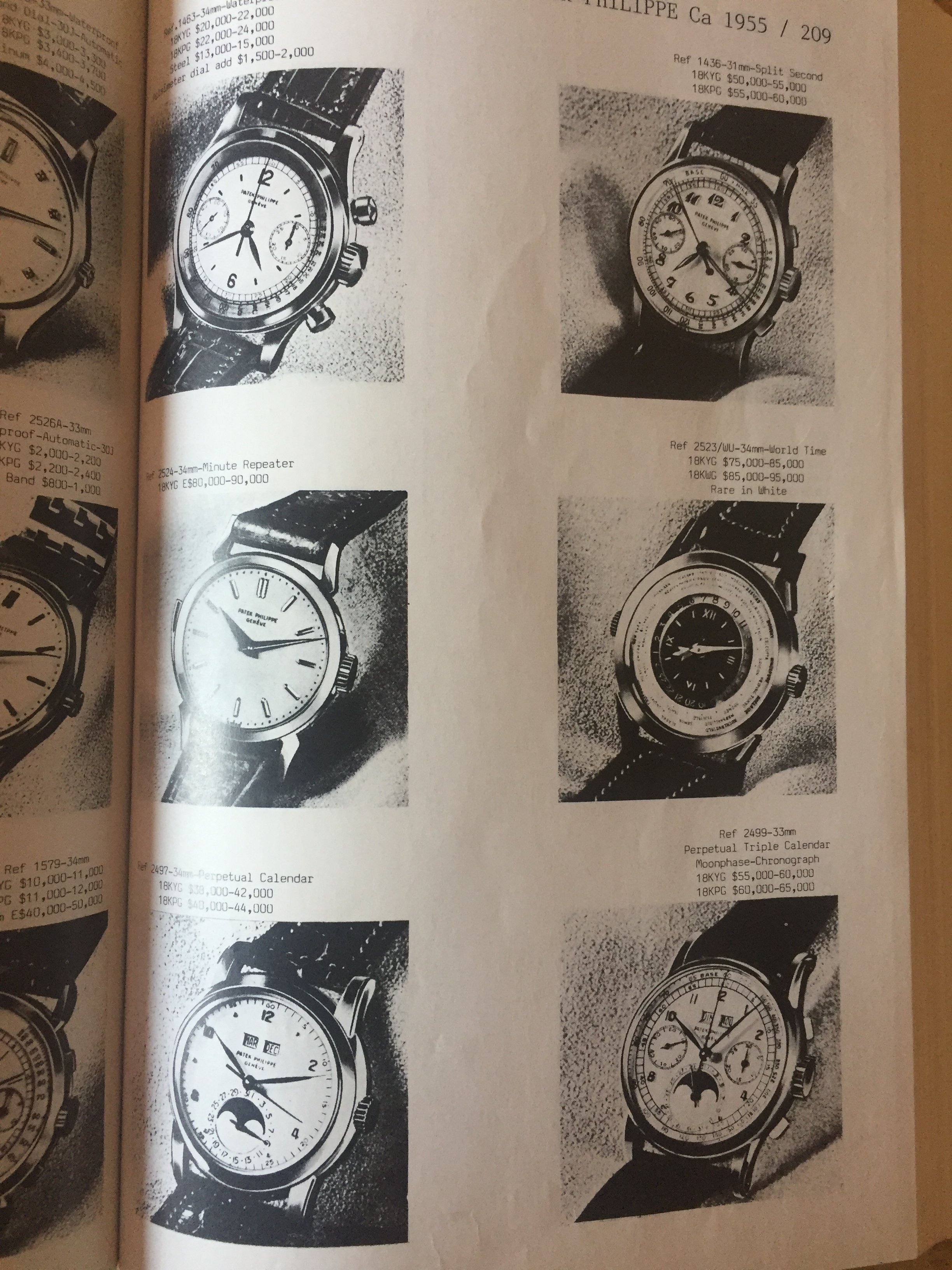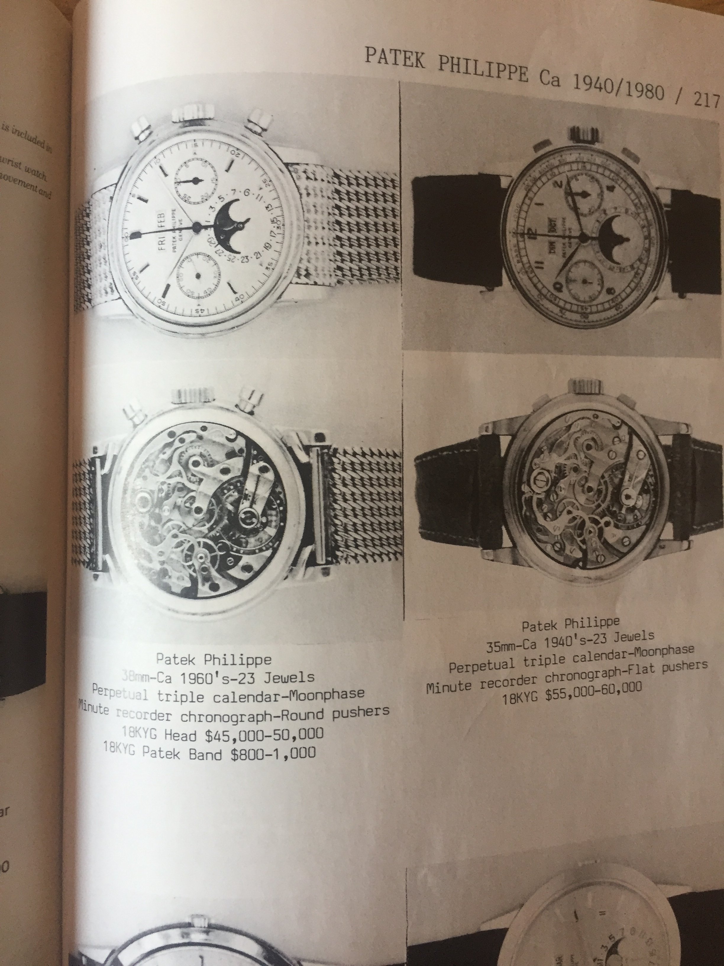 Patek Philippe watches were still very pricey, especially the complications. Rolex sport models in stainless steel were a bargain as were Omegas. The book was published before the dramatic increase in pricing for both Rolex and Omega sports models, especially Submariners, GMTs, Explorer 2s, Daytonas, and Speedmasters.