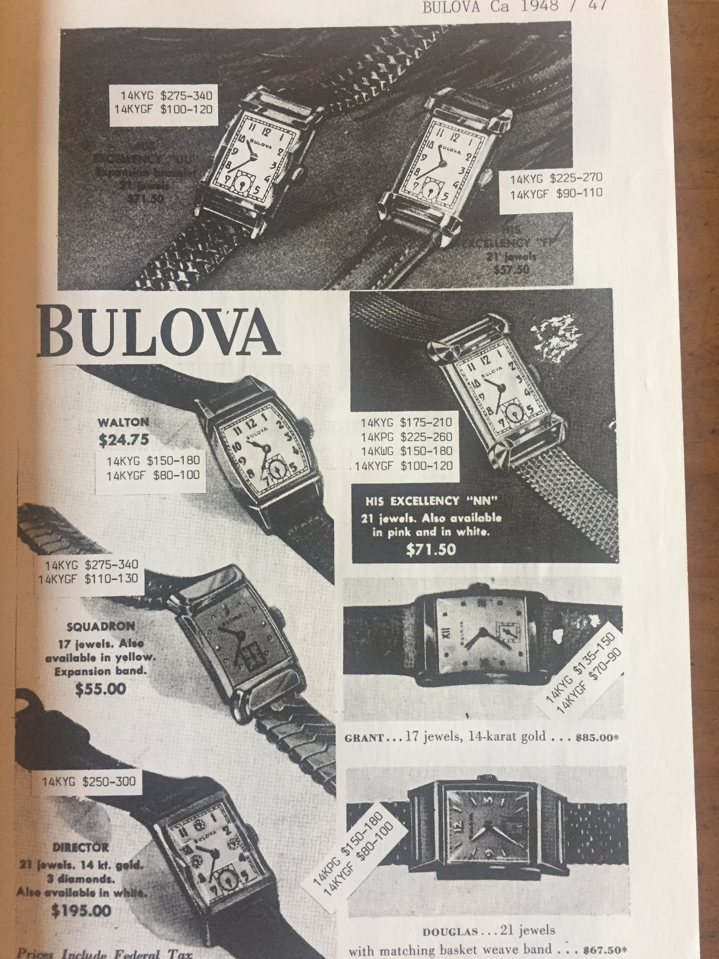 The prices you see below the watches are the recommended prices for the late 1980s to buy that particular watch, unless watches are photographed in an old advertisement then prices are in white box and original manufacturer prices are listed by description of the watch.