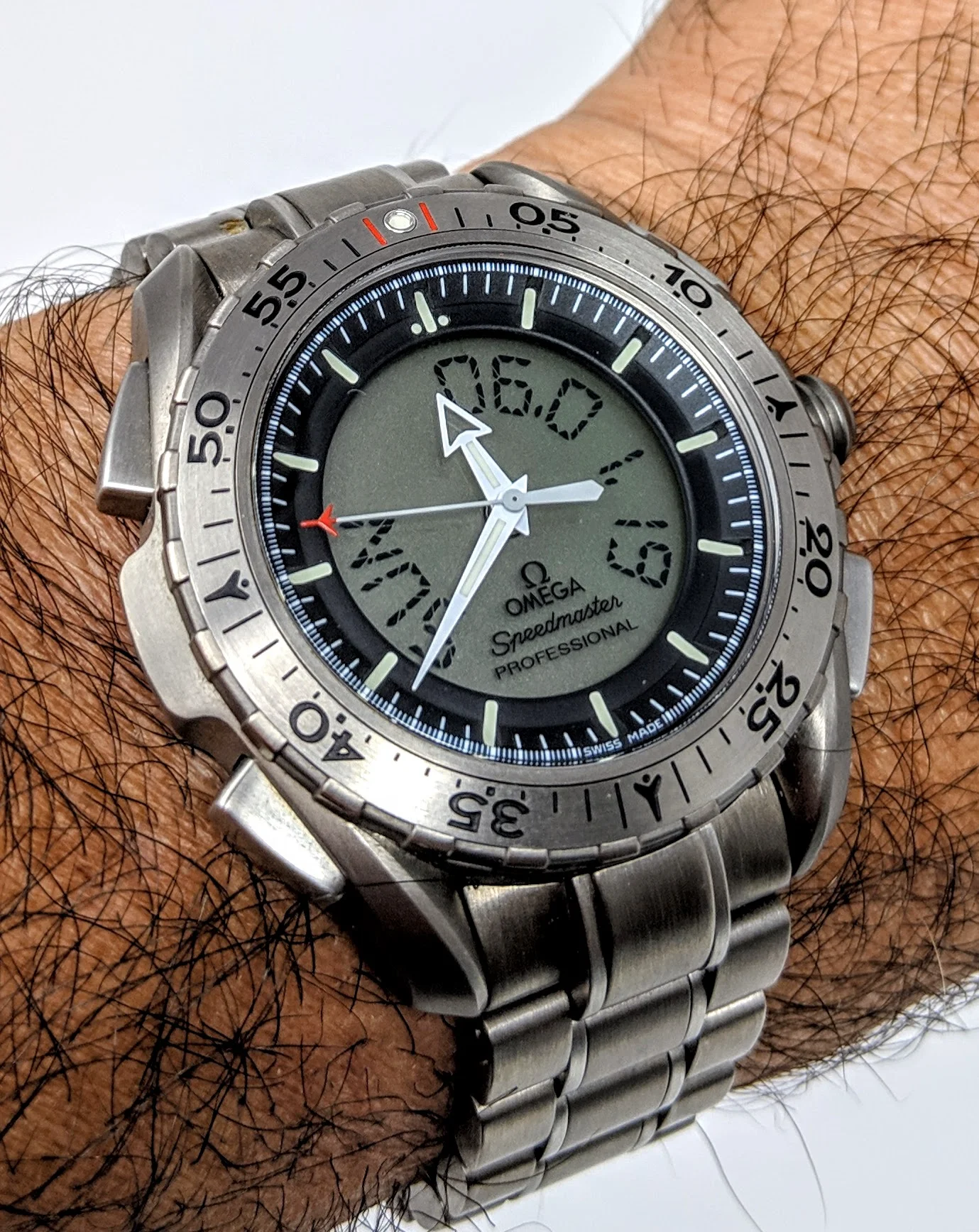 This one. This particular watch was a military purchase previously owned by a US Navy helicopter pilot. Because of this, Omega will service it free of charge for life.