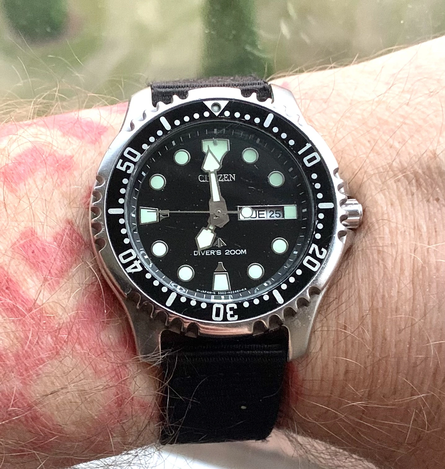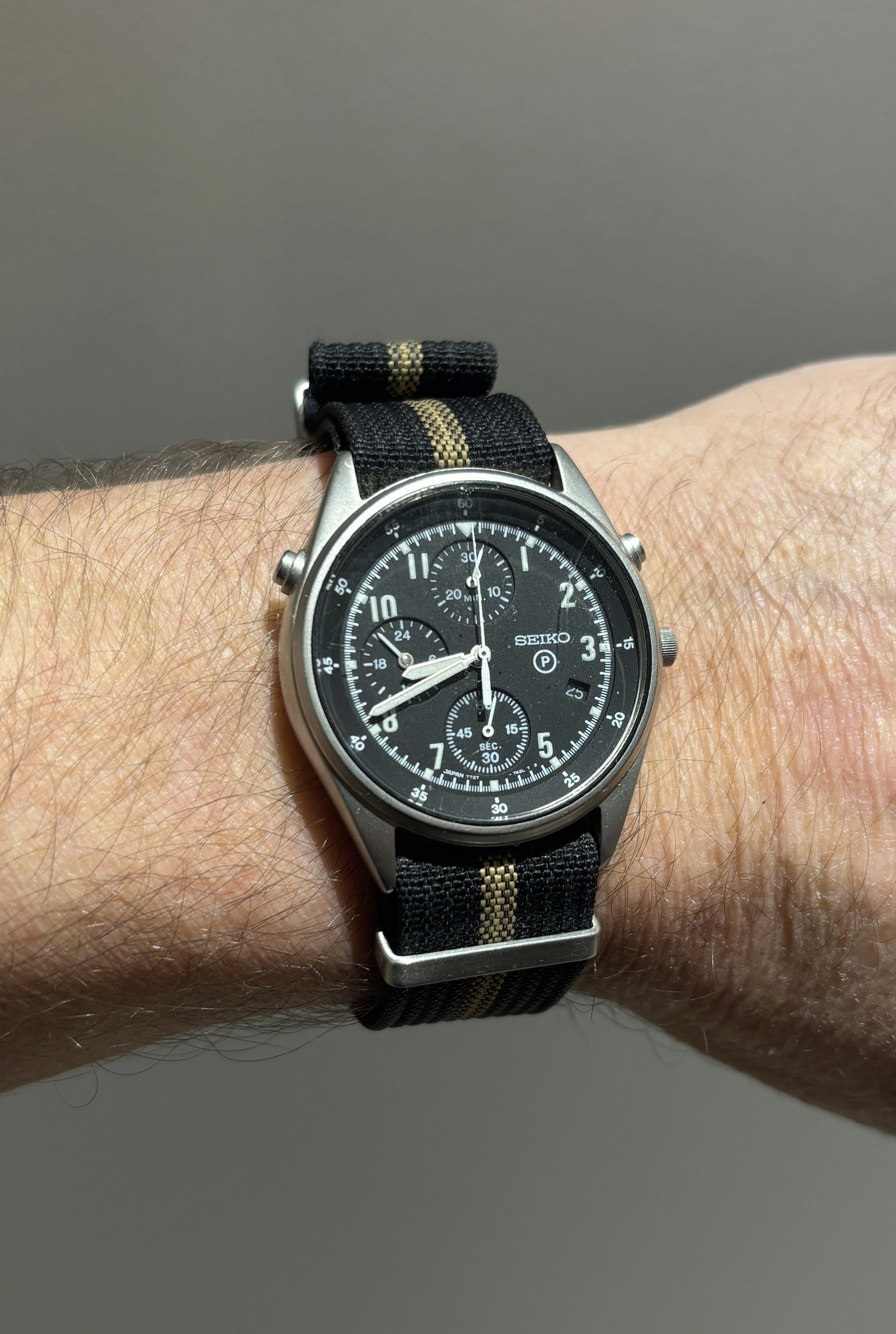 This is my one, a gift from my concerned wife who wanted me to have a "reliable watch" on a trip to the UK. A vintage watch packed up on a previous trip.