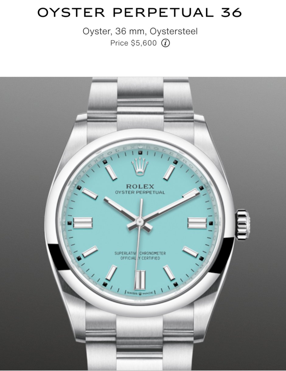 While it isn’t a Daytona or another sport model, these turquoise dialed OPs have gone a little crazy, more so than either the yellow or red dials, and are selling on the secondary market for double the list. The demand for the 41mm version is even crazier, apparently.